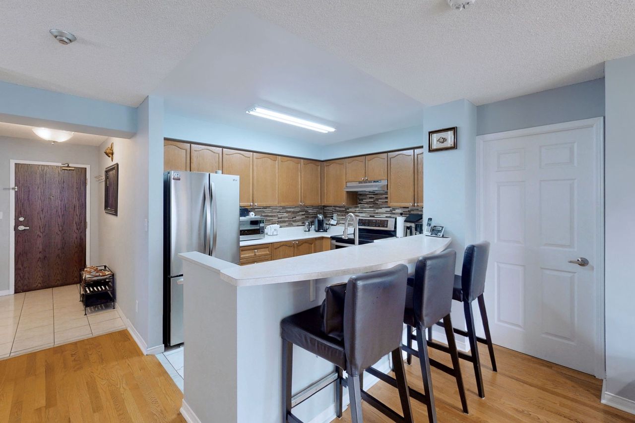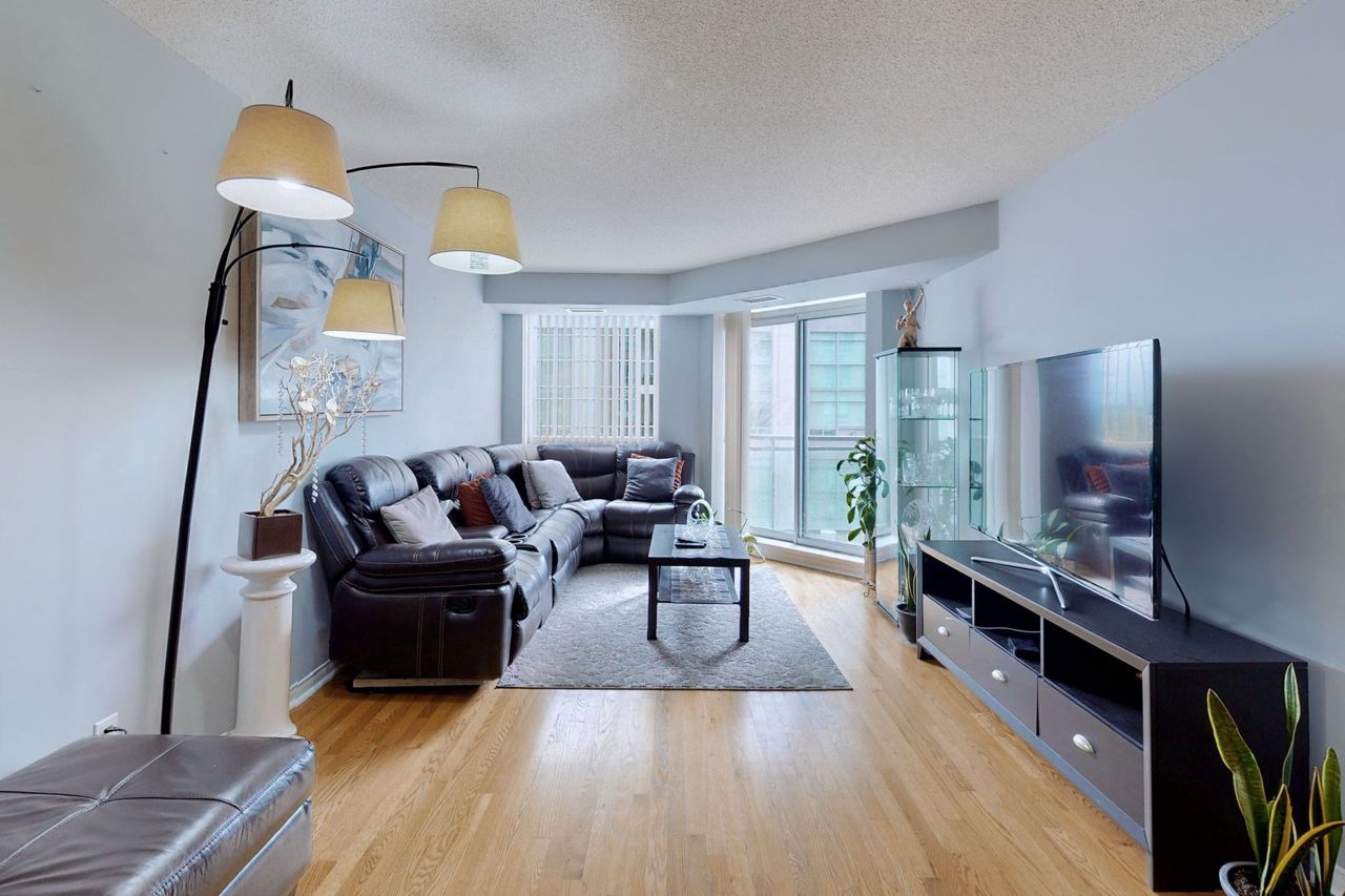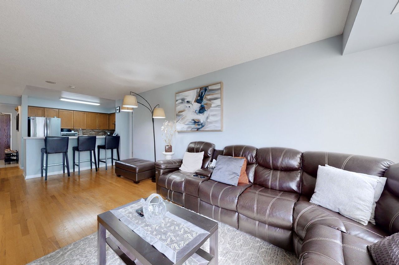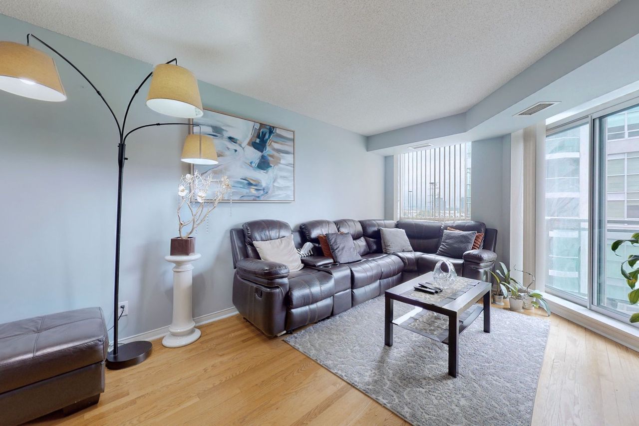 South Mimico's hottest gem will have you ending your search immediately! Be the first to see this massive 2+1 Bdr condo with Parking, Locker & Unbeatable Location. Den can be converted into 3rd Bedroom. Hardwood floors throughout. Large kitchen with full-size stainless steel appliances and loads of cabinets. Ensuite laundry for your convenience. Large presidential suite with extra Bath & Walk-in closet. Peaceful views of Green pastures & Grand Avenue Park. Located at the foot of the Gardiner, minutes from GO station. Walking distance to lakefront - Humber Bay Shores, TTC, Metro supermarket, Shoppers Drug Mart, LCBO, Schools, and shops. This impeccably kept condo leaves you with no work to do, just move in and enjoy! Book your showing today!S/S Fridge, S/S Stove, S/S Dishwasher, S/S Rangehood, Washer, Dryer, All ELFs, All Window Coverings, Parking, Locker