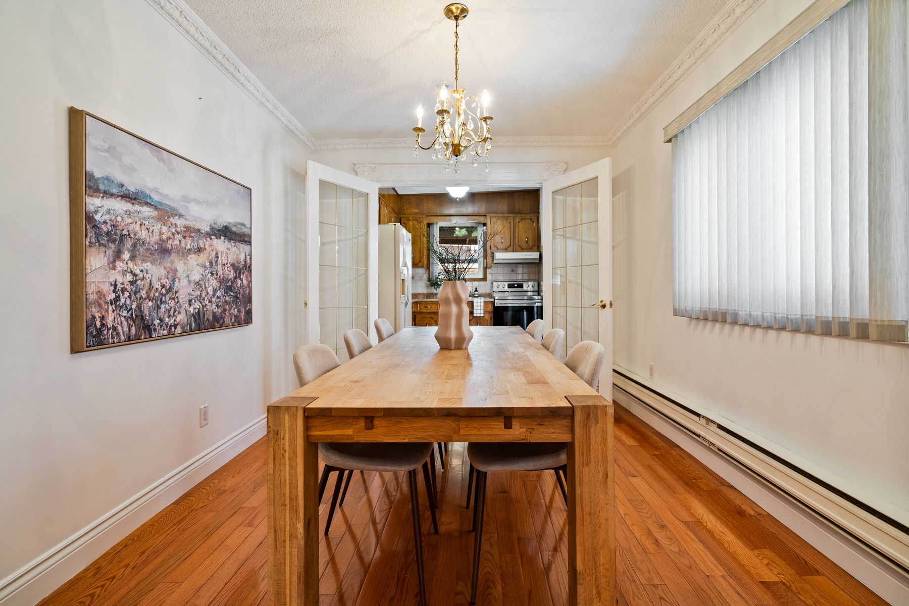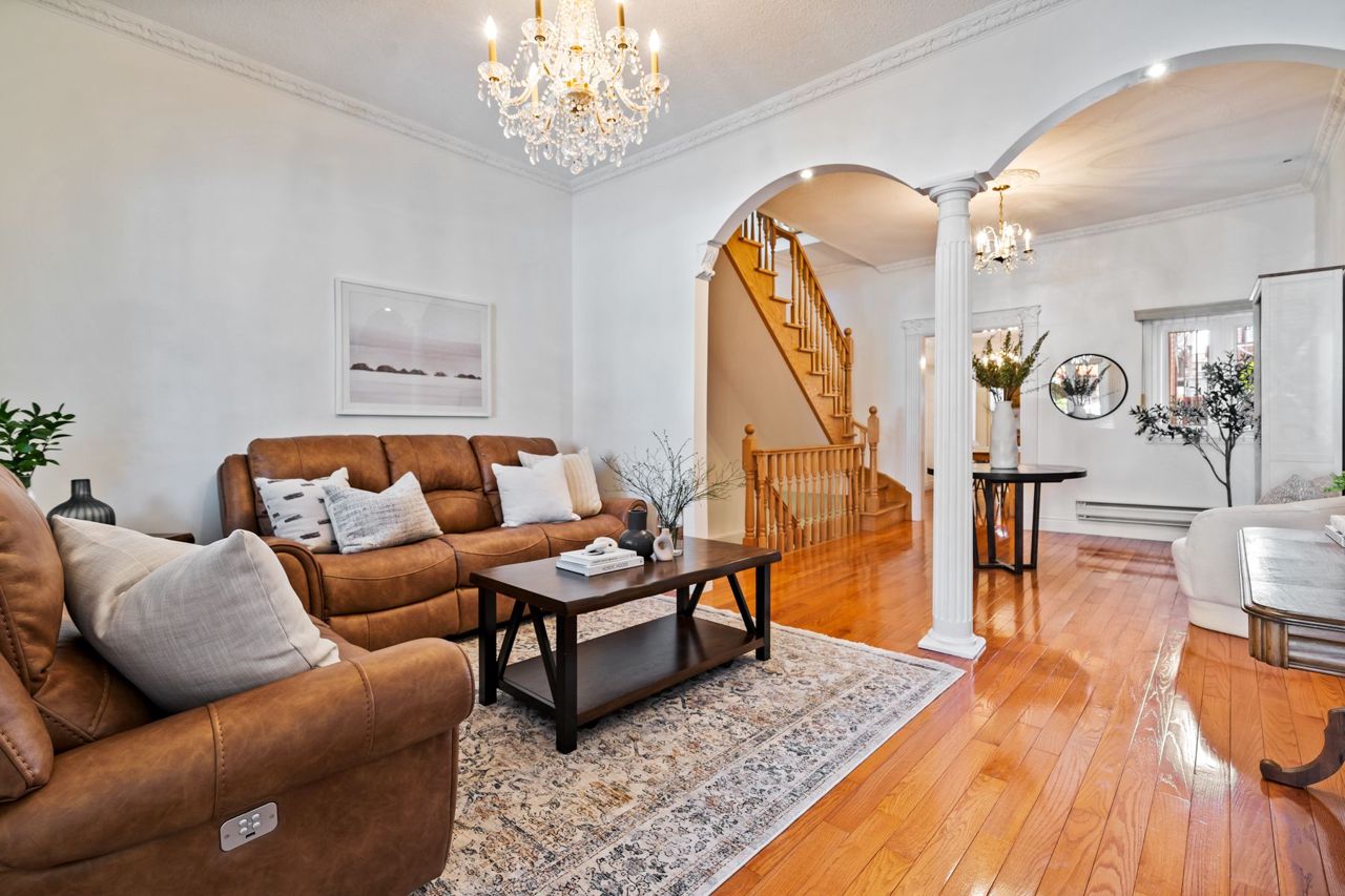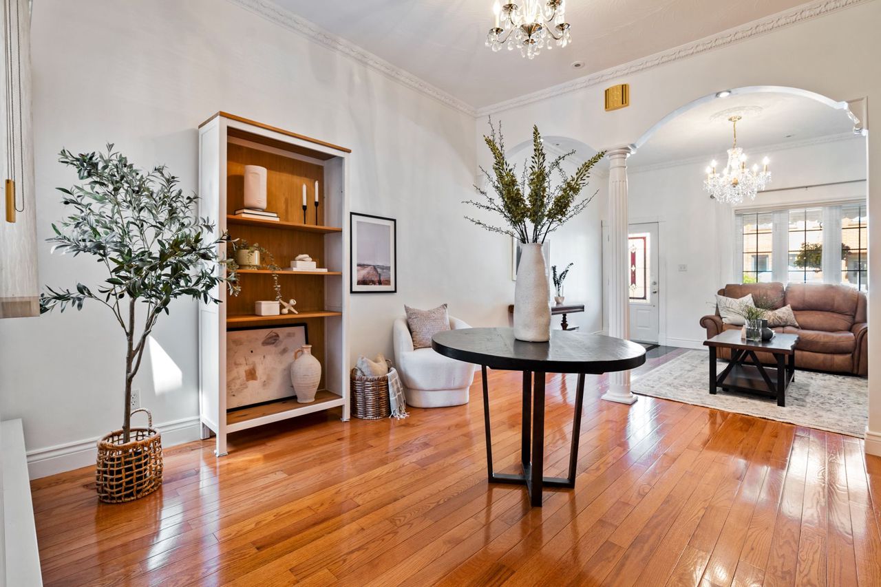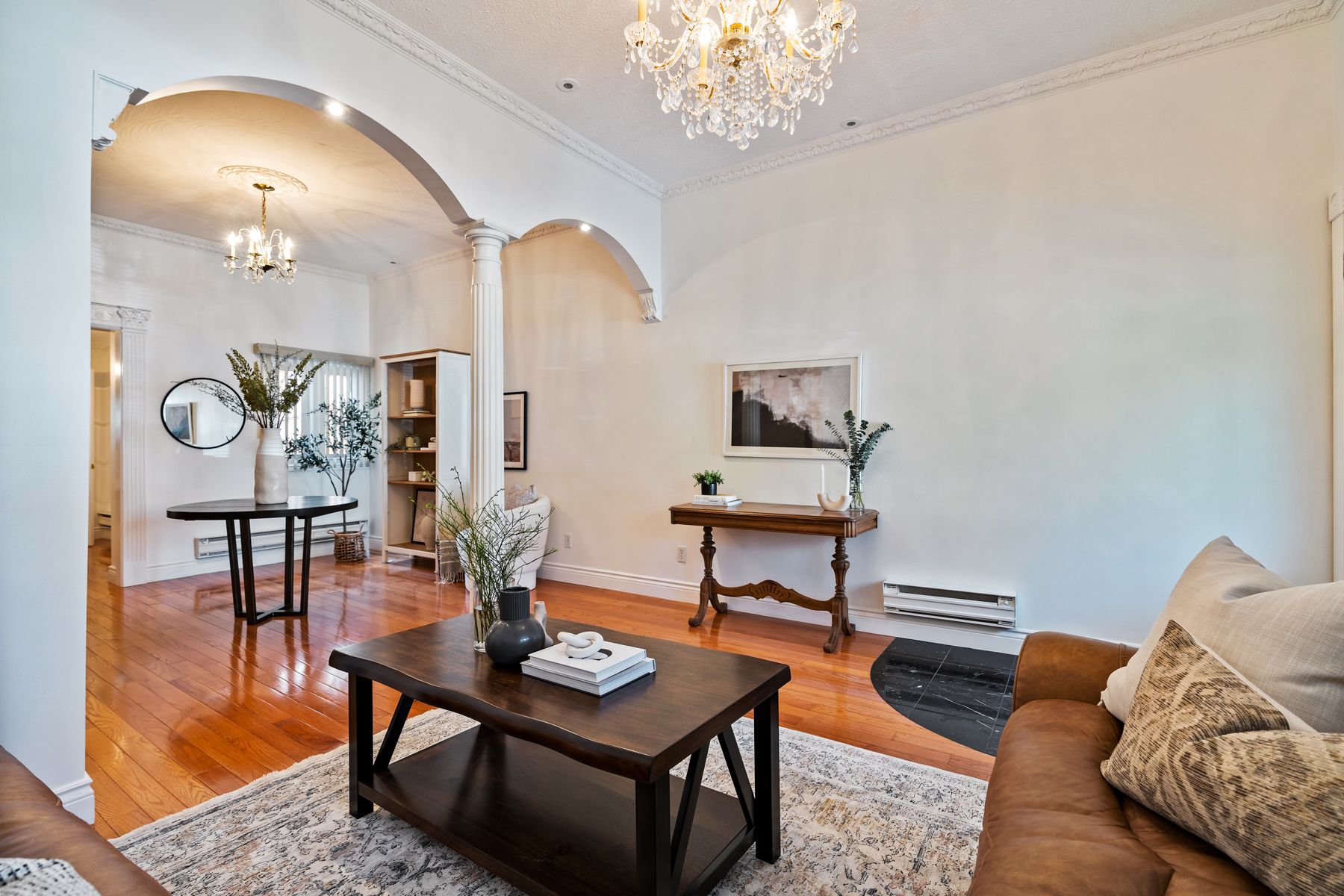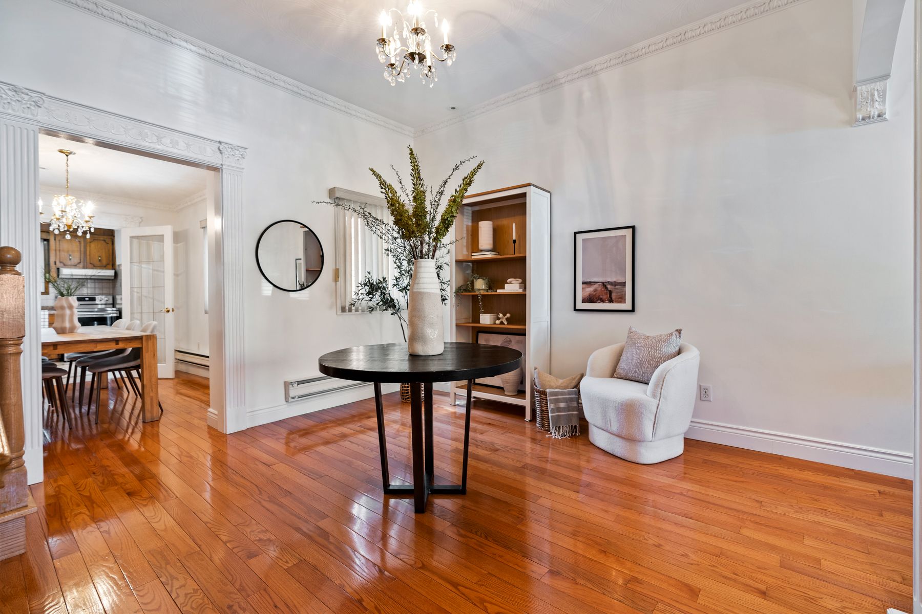 Hardwood Floor Open Concept Crown Moulding