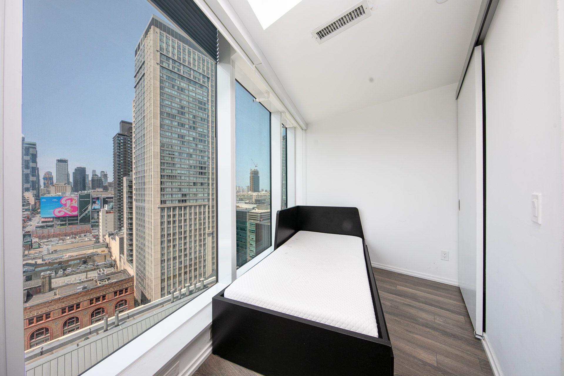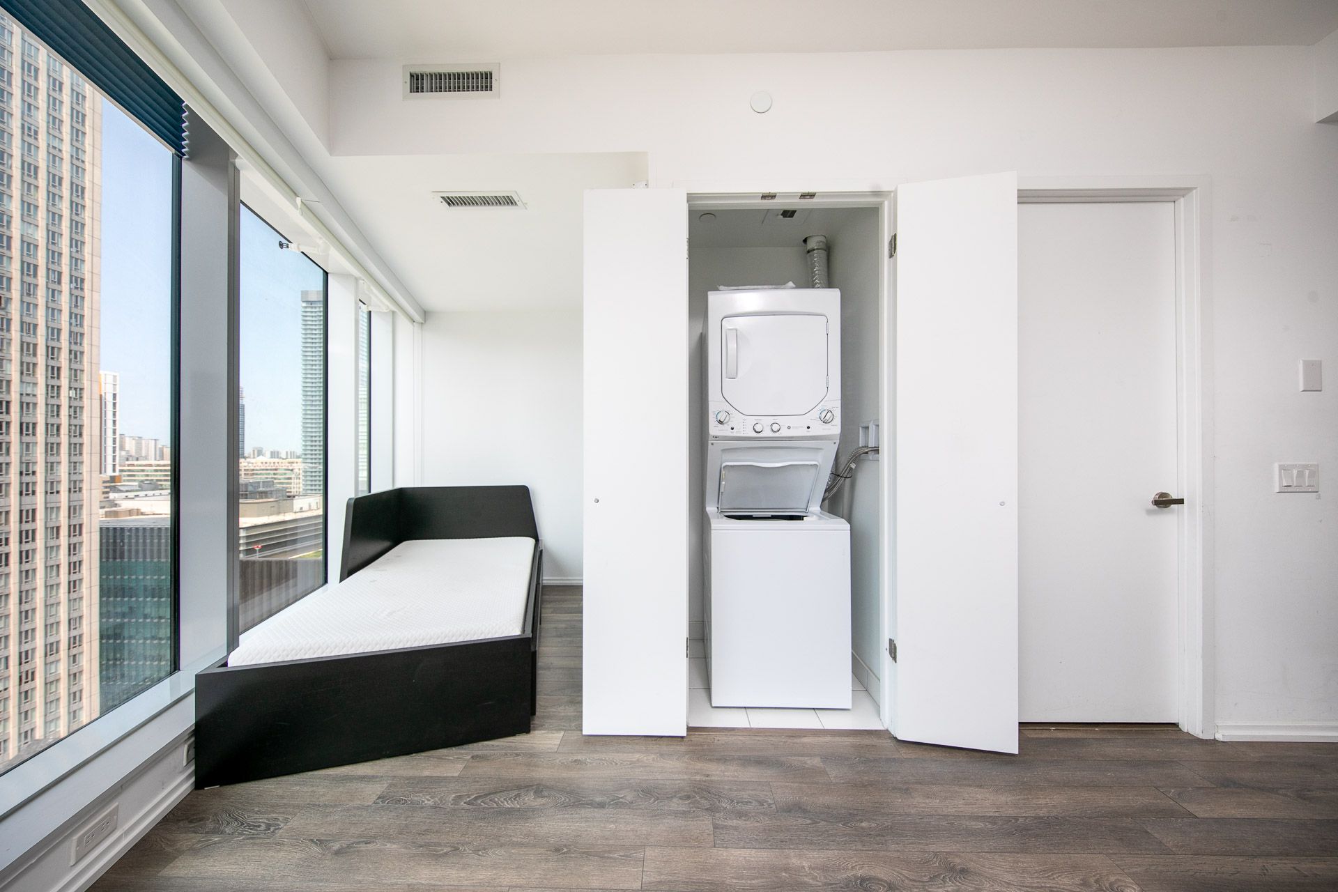 Spacious Bachelor Unit At Luxury Massey Tower. Featuring 9Ft Floor To Ceiling Large Windows, Roller Blinds. A Spacious Open Concept Layout, Sweeping North Views Of The City. Steps To Subway, Eaton Center, Ryerson University, St. Michael Hospital, Shopping, Restaurants, Financial District & Everything With Luxurious Downtown Lifestyle.** 2 Lockers(B2-21,22)**, Bed &Sofa, Two Chairs, B/I Fridge, S/S Dish Washer, Cook Top, B/I Oven, Microwave, Washer & Dryer, All Elf's And All Window Coverings.
