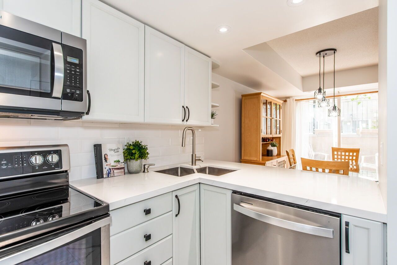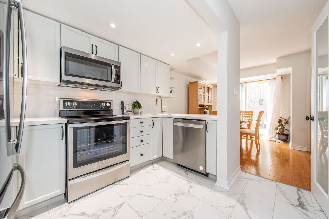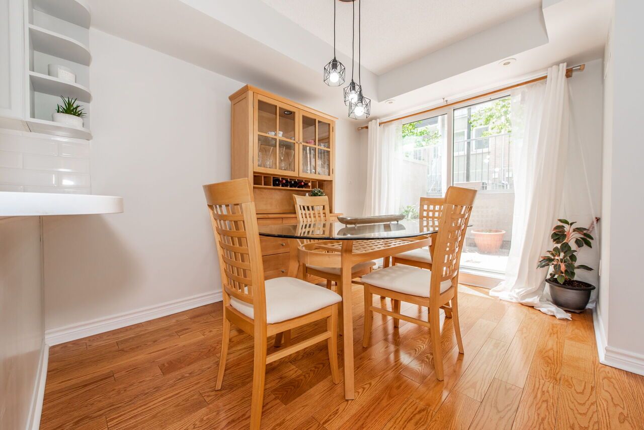 Peaceful Junction Triangle Town Home With Big City Perks. This Neighbourhood Really Has Something For Everyone. Whether It Be A Growing Family Looking For Nearby Parks And Activities, Young Professionals Wanting Great Transit Options, Or Anyone Looking To Downsize Into An Exciting Community! This 2 Bedroom, 2 Bath unit has been Renovated Throughout and Freshly Painted. Main Level Features A Living Room, Kitchen With Breakfast Bar and Walk-in Pantry, Dining Room that can accommodate a full sized Table With access to your Private Terrace, & A Powder Room. Upstairs: 2 Bedrooms Each With Walk-In Closets, Full Bathroom, & Laundry On The Upper Level. Den Was Converted To A Walk-In Closet. Dog Park, Playground, & Lots Of Visitor Parking. Quiet Enclave & Walking Distance To 2 Subway Stations, Up Express, Go & West Toronto Railpath. Unit Includes 1 Parking 1 Locker.All Existing: ELF’s , Window Coverings, New Refrigerator, New Stove And New Dishwasher (all 6 months old), Washer & Dryer. New Quartz Countertops & Backsplash, Updated Washrooms.