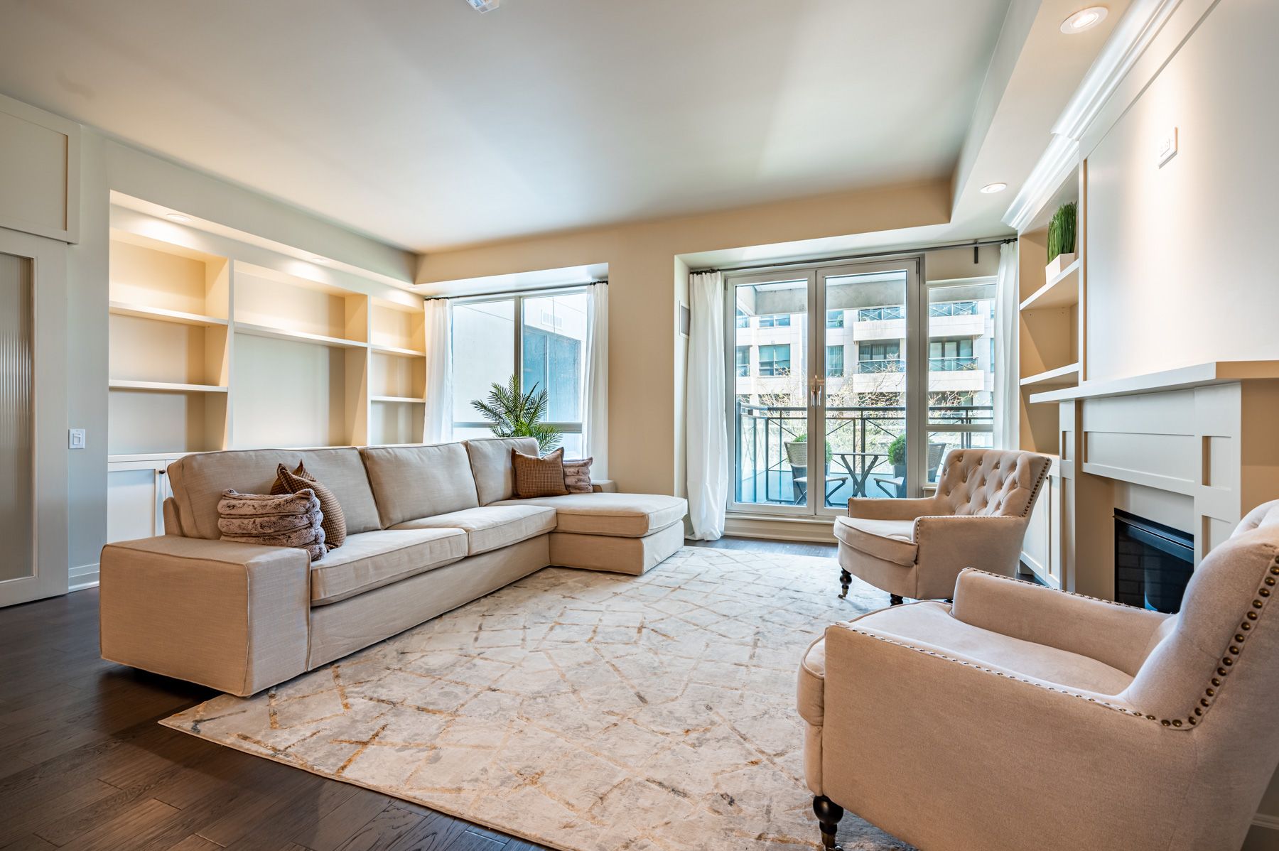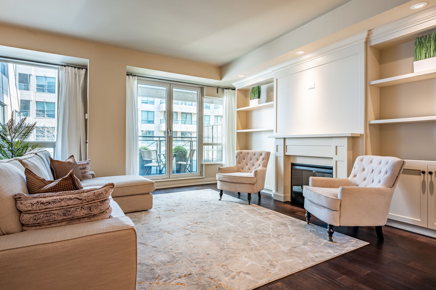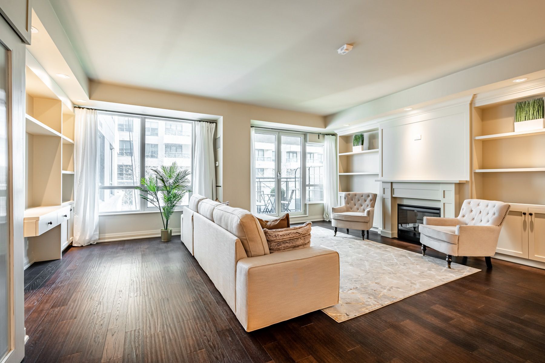 Fully Furnished; Just bring your suitcase! Stunning Oversized One Bedroom Suite. Relax By The Fireplace While Enjoying The Serene South-Facing Tree-Top View In This Wide & Spacious Oversized One Bedroom in The Heart Of Summerhill. This Newly-Reno'd Suite Feat. A Spacious Polished Marble Entry Foyer, Warm Hardwood Throughout, All New Top-End LG Appliances(Inc. Washer & Dryer), New Quartz Counters(Inc. Large Island W/Seating For 4) & Custom Cabinetry Throughout Including Built-in Office Bookshelves, Drybar & Dressing Room. Additional Features Include Custom Panelling Throughout, New Led Pot Lights, Smooth Ceiling & Custom Oversized Mirrors. Enjoy Spacious Living & Dining Areas, an Eat-In Kitchen, Master W/Room For A King, Dressing Room, Office Wall.All Elfs, Appliances.