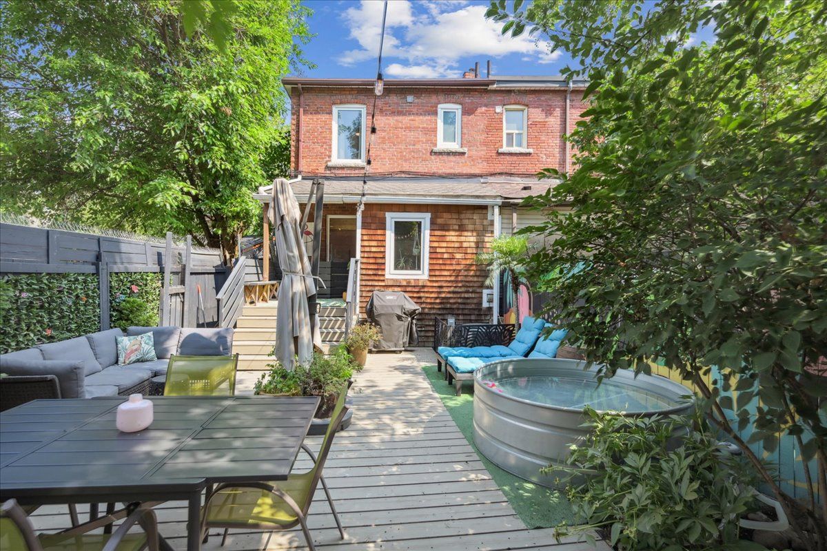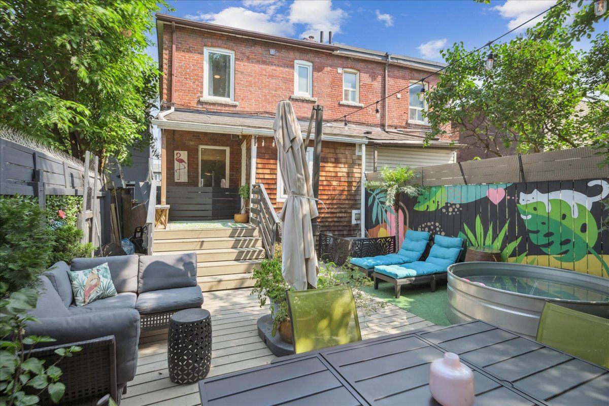 A diamond on Davenport; this stylish home is move-in ready with motivated sellers! Thoughtfully updated and meticulously maintained, this 4+1 bed, 3 bath home offers more space, style, and serenity than you'd expect. With rare legal front pad parking, you'll always have a spot. Inside it's easy to forget you're on a main road. Almost every window frames greenery instead of the city. This space is quiet and calm with side street vibes. The main floor, with exposed brick, tall ceilings, and natural hardwood features a spacious open living/dining area with plenty of room to stretch out, entertain, and grow. Whether it's a cozy night in or a big holiday dinner, this home handles it all with warmth and ease. The updated kitchen leads past a convenient main-floor powder room to a wide and deep, fully fenced backyard. With a garden shed, perennials, cool custom mural, and a large deck, this space is perfect for weekend lounging, entertaining, or letting pets roam. Upstairs, you'll find four large bedrooms plus a 4 piece family bath and lots of hallway storage. The finished lower level has a separate entrance, full bath, large bedroom, and laundry room that can be converted back to a kitchen, offering great potential for an in-law suite or potential rental income. Instead of brick walls next door, west facing windows bring in afternoon sun all year round. It truly is a hidden retreat in the city. What sets this home apart is the family-friendly community. Located in the heart of Carleton Village and the tip of Junction Triangle, you're steps from Wadsworth Park, Carleton Village Sports Academy, St. Paul VI Catholic School, and a close-knit, welcoming and safe neighbourhood. The UP Express, bike lanes, and the Railpath are nearby, with the best of St. Clair West, the Junction, and the Stockyards just around the corner. Peaceful, modern, and well cared for, this modern, timeless, & turnkey home is built for living, gathering, and putting down roots. Come see it to believe it!
