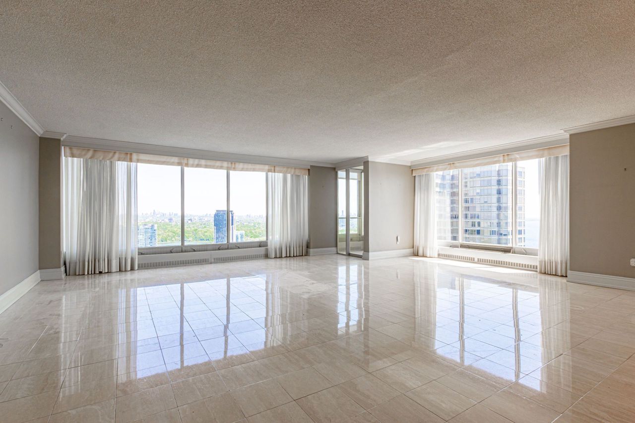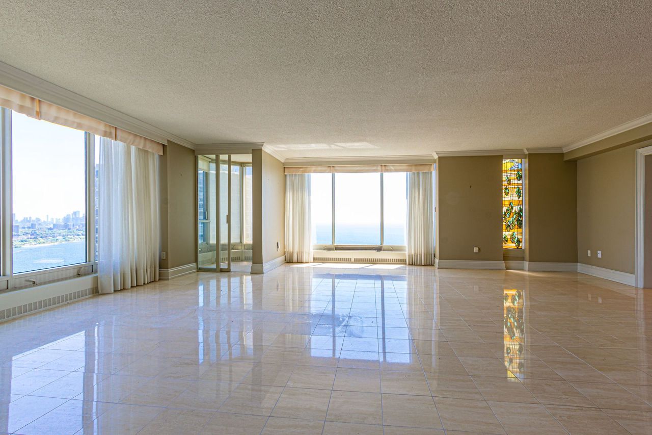 A Phenomenal Enormous Unit with Breathtaking East , West and South Views overlooking Lake Ontario! Double Door Entry to Unit! Solarium in Open Concept Living Room! B/I Appliances and Extensive Cabinetry in Large Kitchen to Inspire The Chef From Within! Large Family Size Breakfast area! Lots of Storage! Extensive Wainscoting and Crown Molding! Solarium, Walk-in Closet with Built-Ins and Spa Like Ensuite in Primary Bedroom!