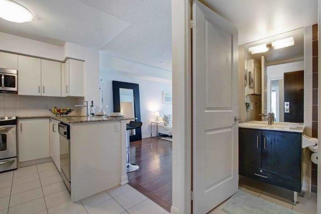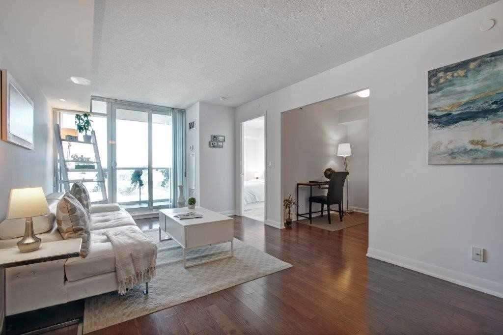 Great opportunity to live at The One Sherway Condominiums! This bright and airy 1-bedroom + den unit is situated in Tower 3 and boasts an open-concept layout with floor-to-ceiling windows, hardwood flooring, and a generous, combined living and dining area. The large kitchen features stainless steel appliances, granite countertops, and a convenient breakfast bar! The versatile den can serve as a home office or a second bedroom. Beautiful South West views from balcony and bedroom. Ensuite laundry! 1-parking spot included! Recent renovations and upgrades include: painted walls, ceiling, trims, baseboards and doors. Installed new dimmable Led light fixtures in living room, kitchen and den. New laminate floors in primary bedroom. Upgraded bathroom caulking, grouting, new showerhead and rod. Upgraded kitchen plumbing under sink and sink drains. Deep cleaning (All appliances, cupboards, washer/dryer and flooring). This high demand condo building offers resort-style amenities: indoor pool, steam room, hot tub, fully equipped gym, billiards room, party room, guest suites, ample visitor parking, and 24-hour concierge! Ideal location includes steps to Sherway Gardens shopping mall, walk to hospital/medical centres, multiple TTC bus routes, short commute to GO train, downtown, airport, and all major highways!
