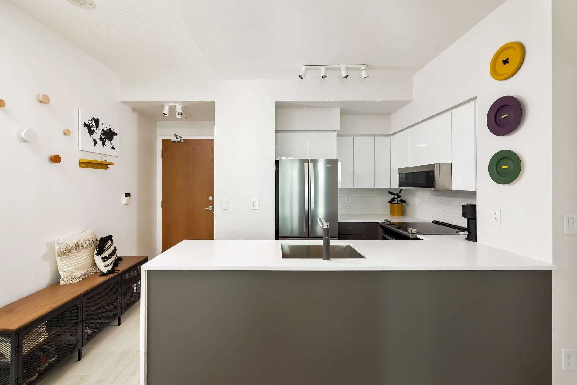 Welcome To Your Downtown Toronto Dreamland, Where This Swanky 1-Bedroom Condo Has It All: Soaring 9Ft Ceilings, Parking (Rare As A Unicorn), West-Facing Lake Views, Modern Updates And Excellent Building Amenities. Fully Renovated (2019) With A New Kitchen, Appliances, Laminate Flooring And Light Fixtures. Bright, Open Concept Living Area Is Great For Entertaining And The Sunset Views From The Spacious Balcony Will Have Your Friends Saying "Ooh-La-La!" With A 24-Hour Concierge, Indoor Pool, Hot Tub, Sauna, Gym, Fitness Room, Rooftop Bbq Area, And Party Room, You'll Feel Like Royalty Without The Pesky Responsibilities. Zip Around Town With Ease, Thanks To Primo Access To The Gardiner Expressway And Ttc/Go Transit Options. Experience Downtown Toronto Living Without Being In The Concrete Jungle. Explore The Surrounding Parks And Waterfront Trails Along Lake Ontario. Steps To Shopping, Groceries, Lcbo, Dining And Summer Concerts At The Budweiser Stage!