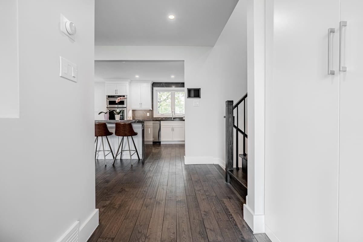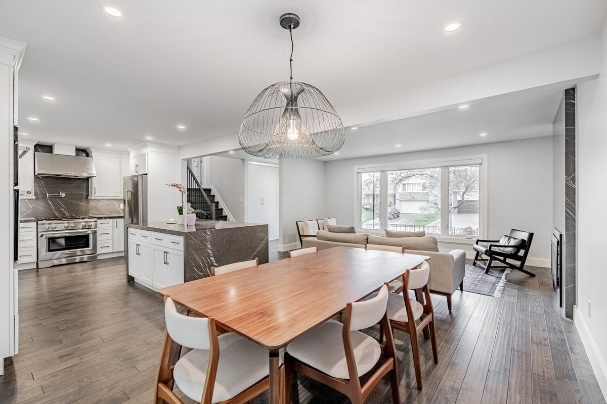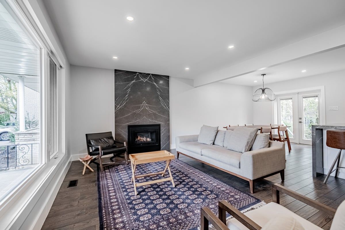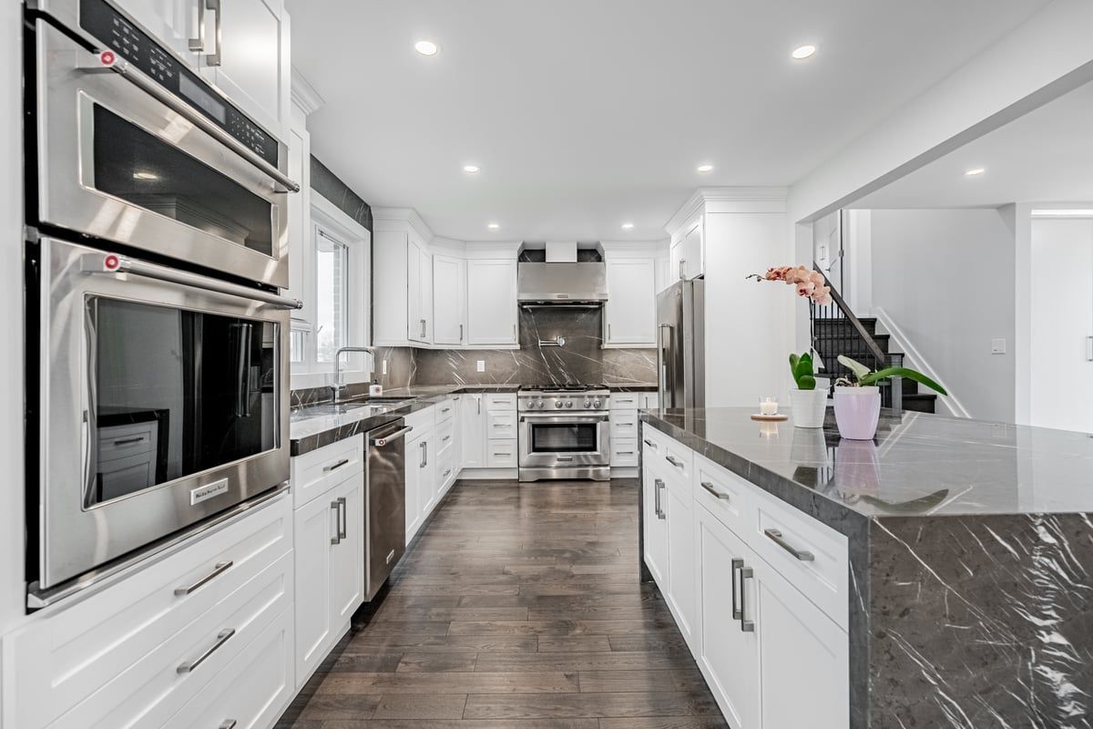 & backsplash. Built-in Oven, Built-in Microwave, Heavy duty range hood & 6 Burner Stove with oven. Open Concept Living room with Gas Fireplace. Open Concept Dining with W/O to Backyard. Custom built-in closets in all bedrooms & main/upper hallway. Smart Switches, pot lights & Nest thermostat. Double car garage with wifi/remote garage door opener.Stainless Steel Appliances, Washer and Dryer. Few steps to park. Mins to Airport.