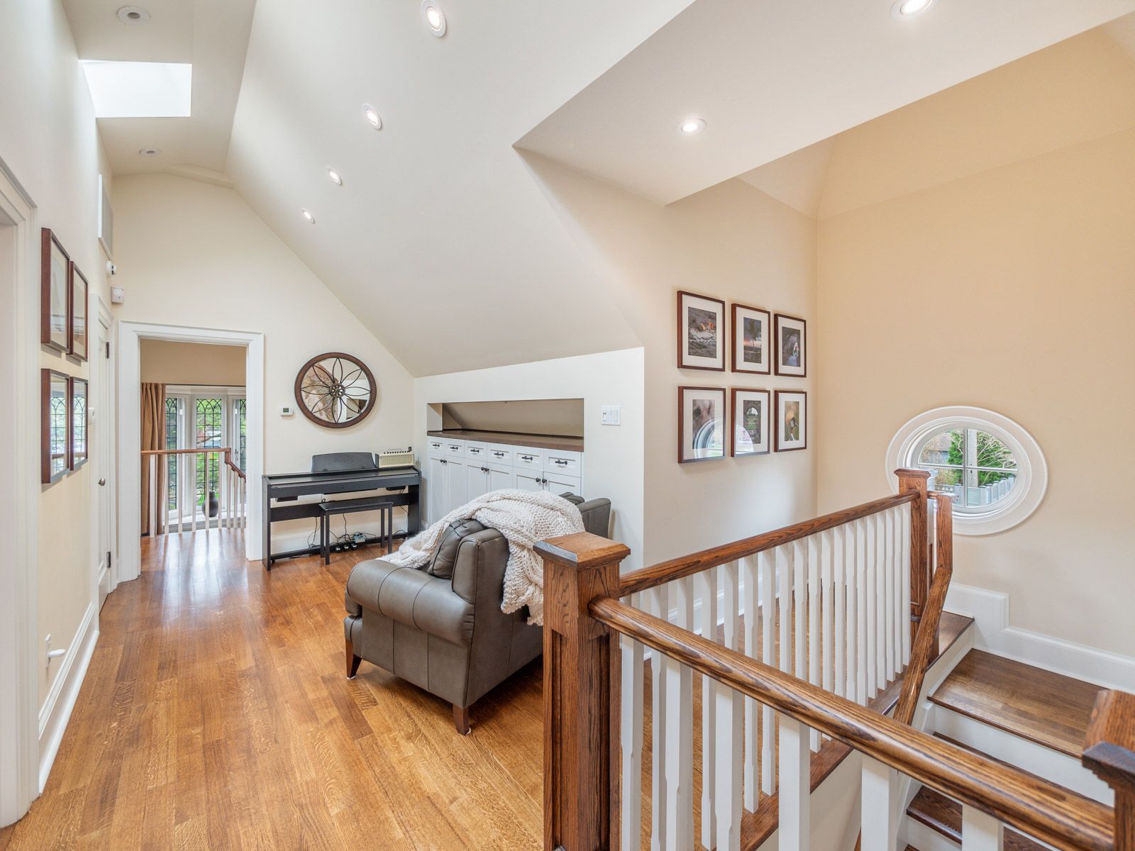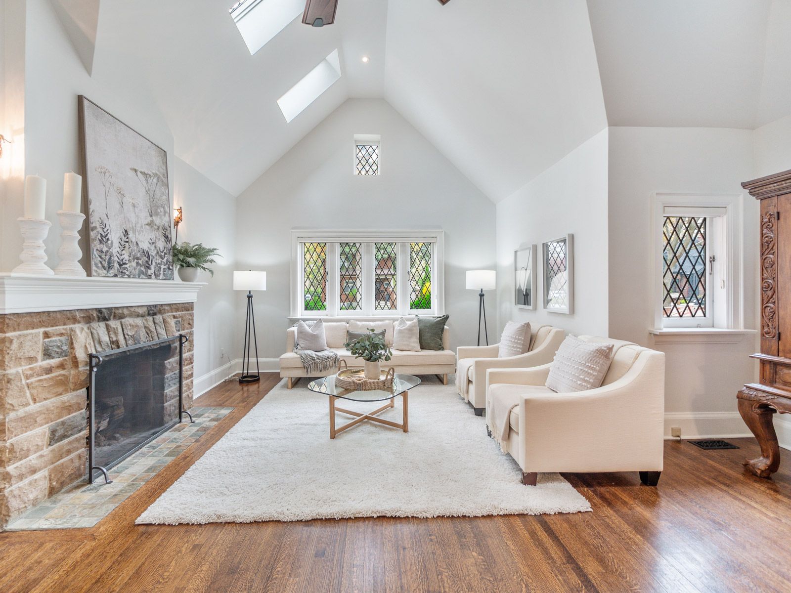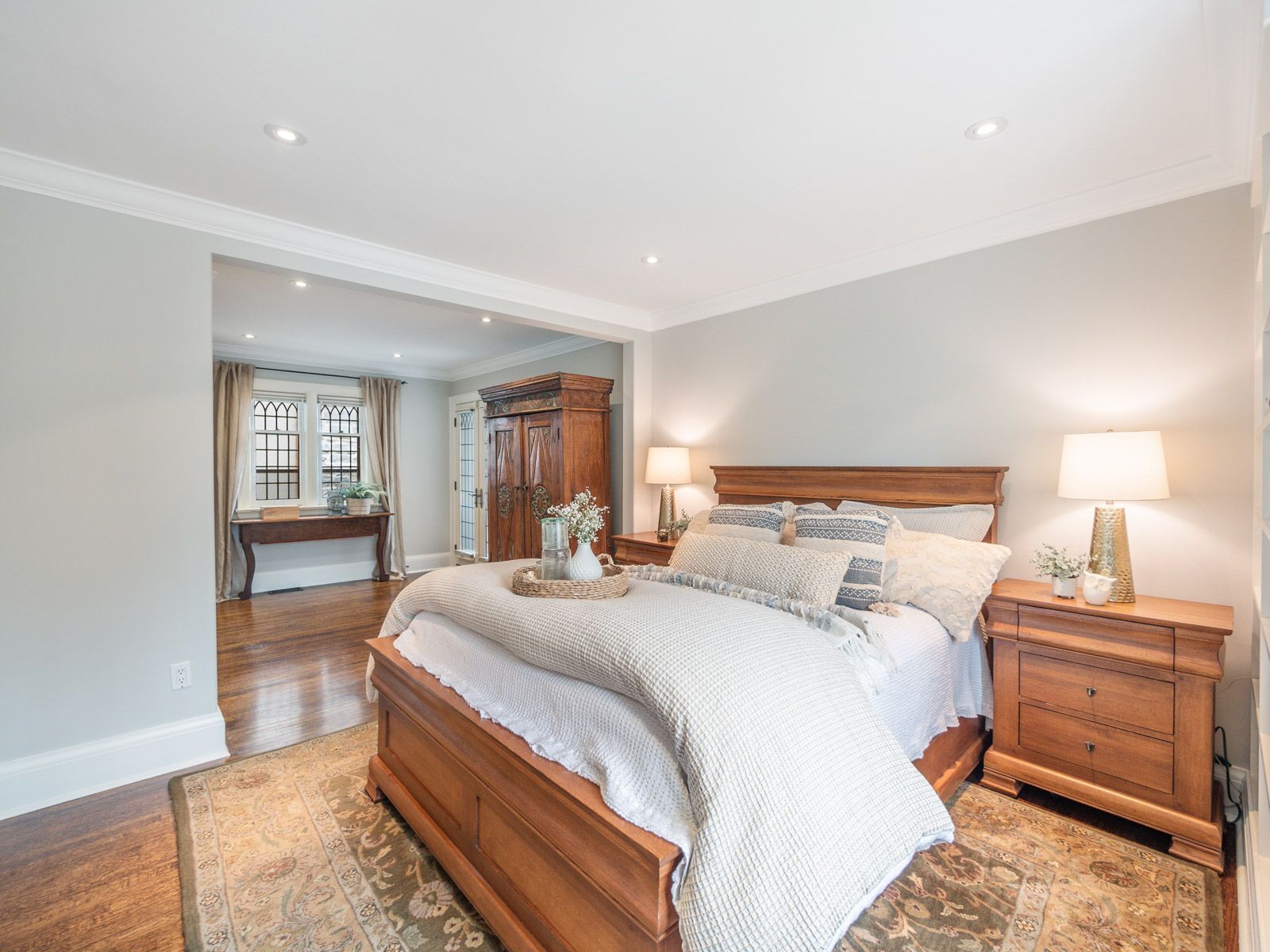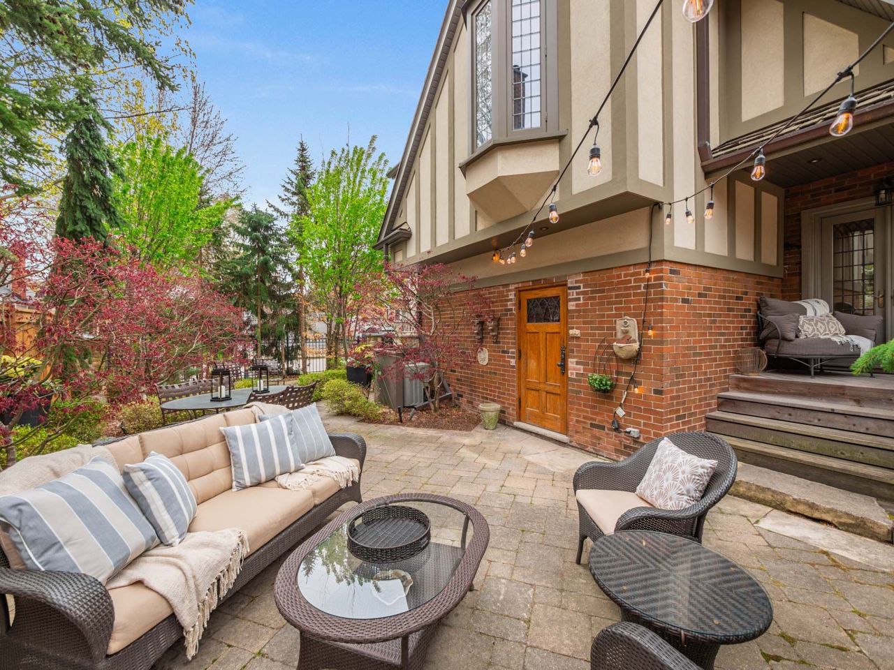 One-Of-A-Kind Restoration Of An English Cottage Style Home In Toronto’s esteemed Sunnylea neighbourhood, with a second story addition by renowned architect Peter Marzynski of PhD Design Inc. The tale of this classic home is complete with a beautifully aged stone exterior, stained & leaded glass windows, soaring ceilings, oak hardwood flooring, and endless character details that collectively define the essence of this quintessential Kingsway/Sunnylea home. An open concept, light-filled living & dining area complete with vaulted ceilings, custom cabinetry, romantic stone fireplace surround with slate hearth and mood-setting 1930’s mica wall-sconce lighting, all help to create an elegant & warm feeling of pure tranquility. A thoughtful floor plan places the primary bedroom, with 3-piece ensuite and wall-to-ceiling custom cabinets, on the main floor along with French door access to the professionally landscaped private garden & patio with gorgeous stone gas fireplace.Turnkey living at its best. Just steps to Bloor St. W., Royal York/Grenview subway, Kingsway shops & restaurants, some of the best green spaces the city has to offer and a short drive to the downtown core, airports and golf courses.