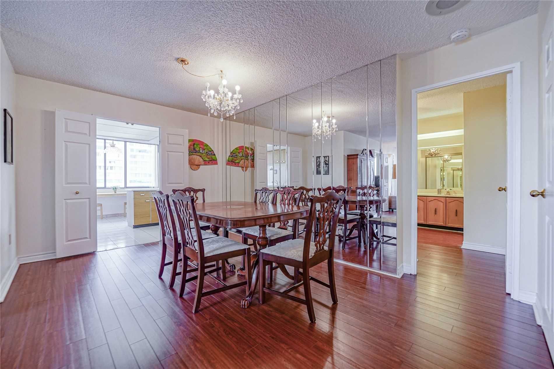 Welcome To Sky Garden Condos. Rarely Offered, Bright And Spacious Corner Unit. Large Open Main Bedroom With 2-W/I Closets. Massive Den W/Sunny Solarium, Can Be Used As A 2nd Bedroom. 1530 Sq.Ft W/Huge Living Space And Full-Size Dining Room. First Class Amenities, Updated Rec Cntr, Gym, Library, Resort Like Gdns W/Walking Areas, Squash, Ping Pong, Golf Range, Sauna And Jacuzzi, Party Room, Wood Shop, Tennis, Indoor/O/Door Pools, 24Hr Gated Security, Steps To Shops. Parking Located Next To Entrance.Included: Fridge, Stove, Hood Fan, Built In Dishwasher, Washer & Dryer, All Window Coverings & Electrical Light Fixtures.