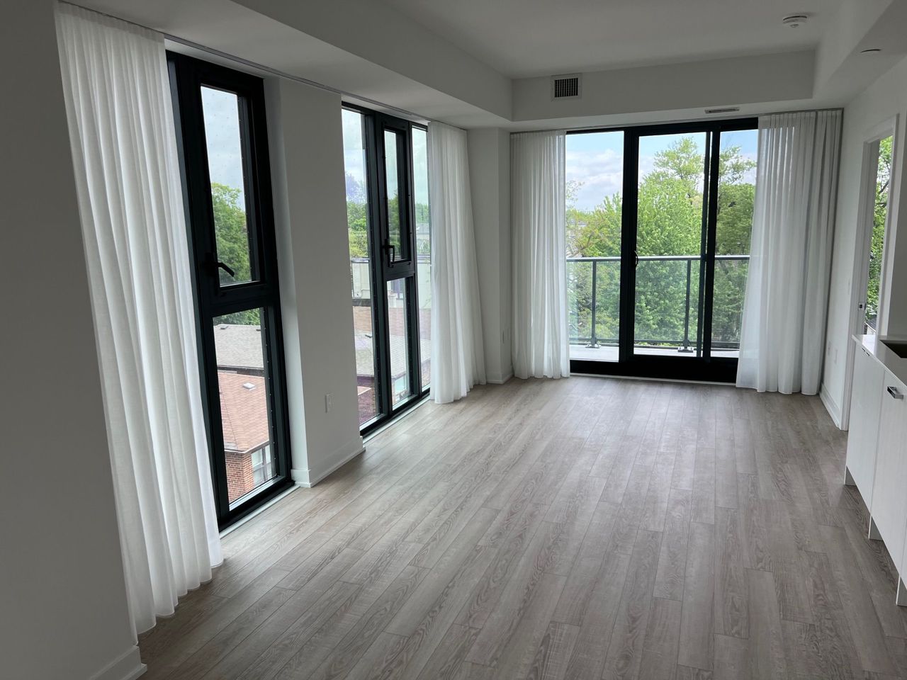 Stunning 2-bedroom corner suite in the new luxury condominium by Graywood at Lawrence and Avenue Road. 921 sq. ft. plus 52 sq. ft. balcony. Beautiful and quiet North-East exposure. Desirable split bedroom floor plan. Gorgeous kitchen and baths! 9-foot ceilings! Floor to ceiling windows! Den has been removed to allow for expansive living/dining room. Includes one parking space. Locker on same level as suite. Quality blinds and curtains!, Steps to TTC, public and private schools, parks, fine restaurants and shops.16-hour concierge (7am to 11pm), fitness studio, co-working lounge, rooftop lounge with terrace and BBQs.