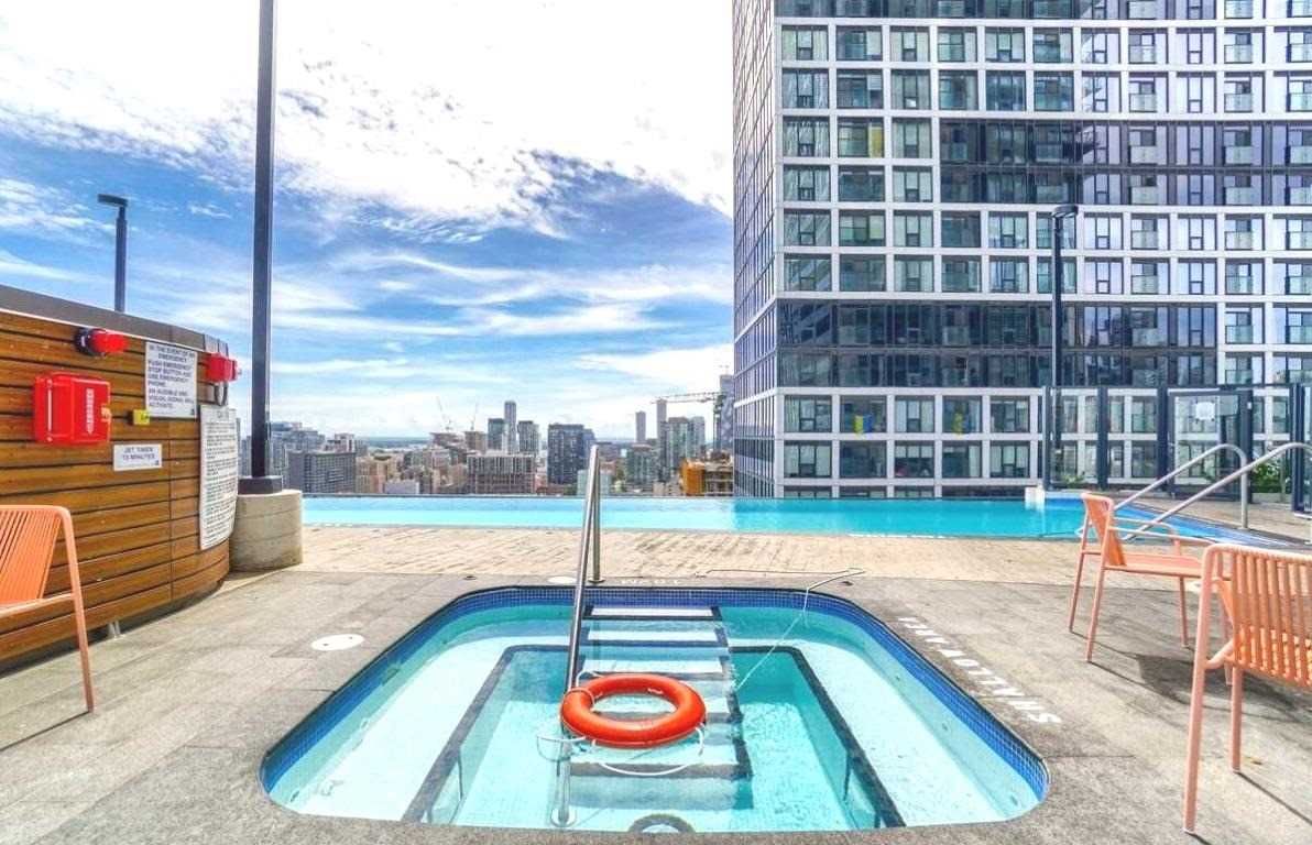 Steps to Ryerson University, Eaton Centre, Dundas Subway station, Yonge Dundas square. Centrally located at Dundas and Jarvis Garden District. 1 + Den (Den can be used as 2nd bedroom), with 1 washroom. Floor to Ceiling Windows, 96sqft balcony. Great space perfect for 1st time owners or as an investment suite. Amenities include Private Sky Lobby, Outdoor pool, Bar, Fitness, Rooftop Terrace Gardens, Party Room, Rooftop Terrace 1 parking & 1 locker.
