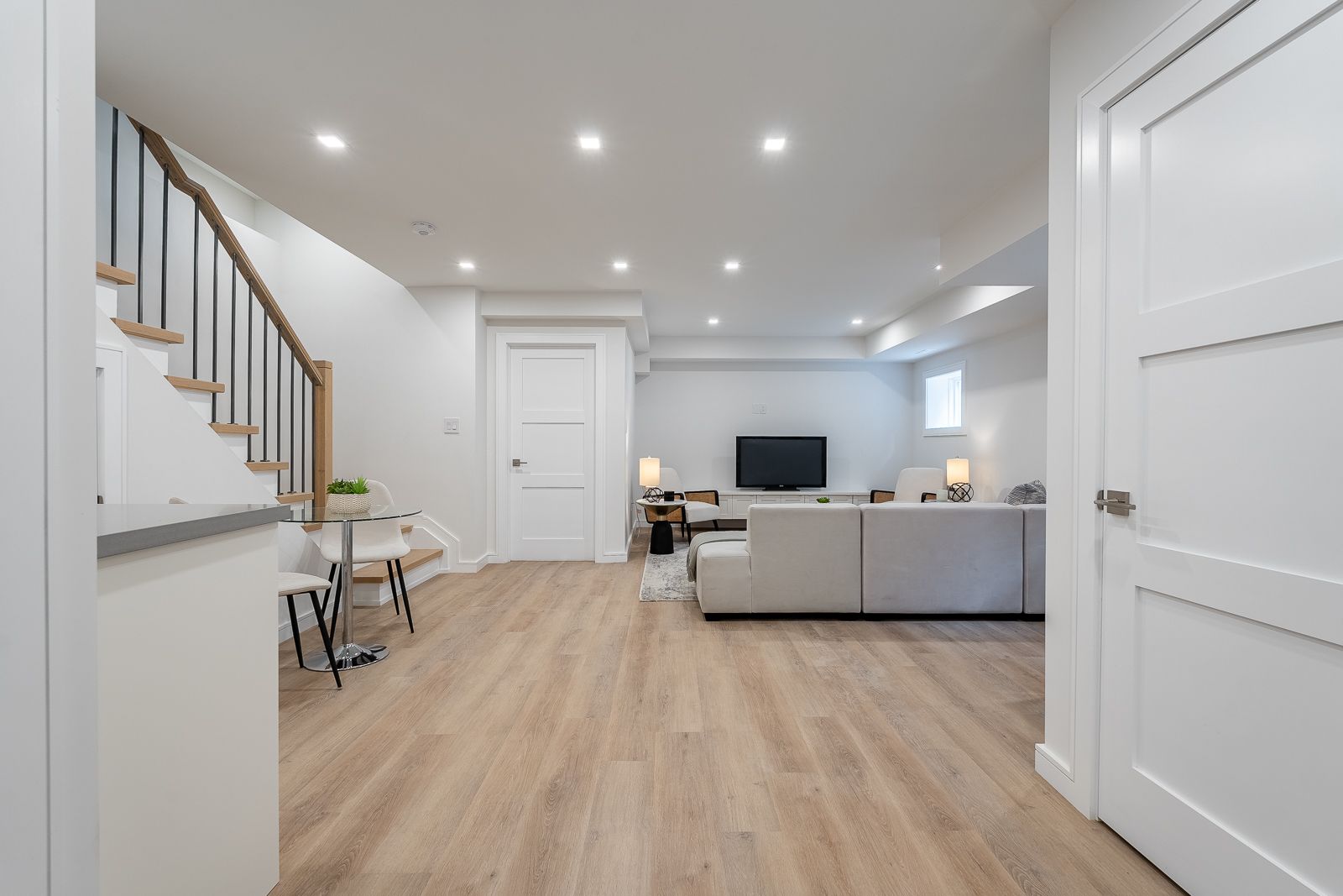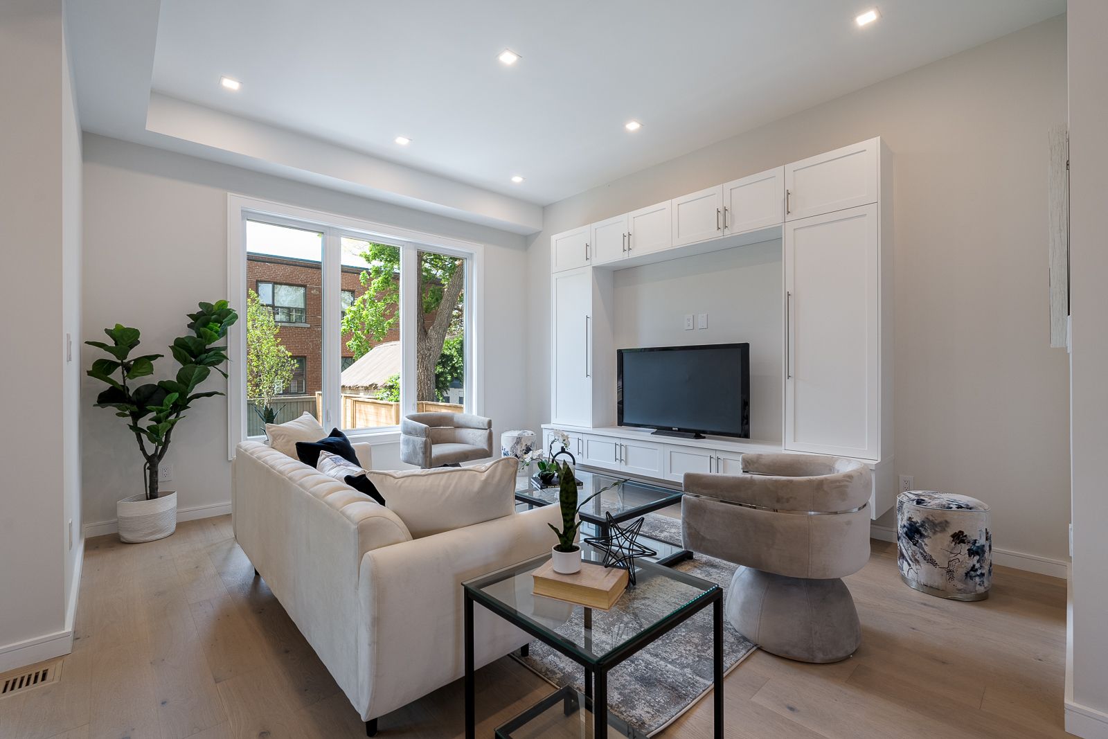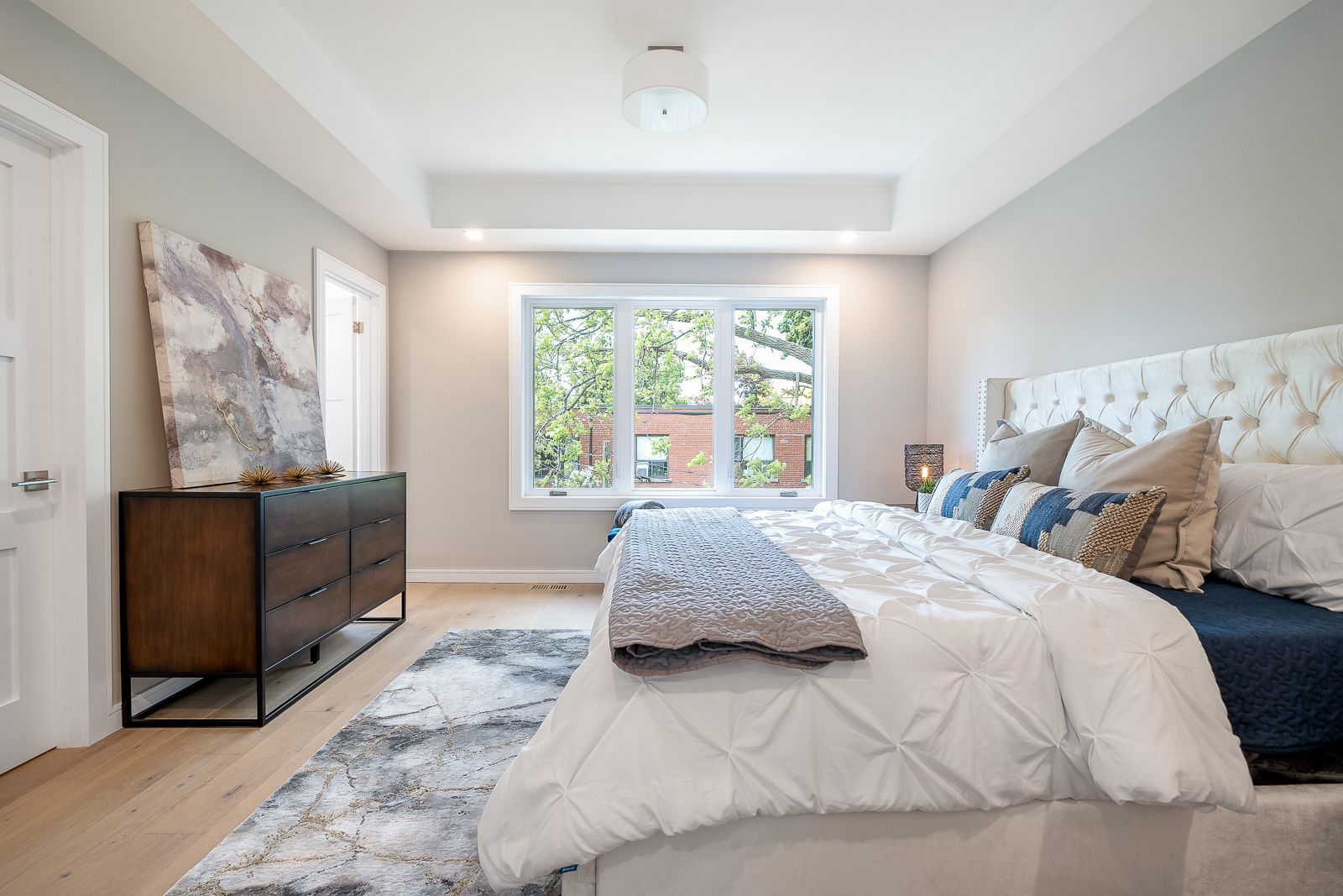 Newly built roughly 3100 square feet of living space. This luxury home has 4 plus 1 bedrooms, 4 bathrooms and a private drive in Birch Cliff neighbourhood of Toronto. Open concept main floor has a bright and functional layout with large windows, 10 foot ceilings and natural hardwood flooring throughout, includes a custom built in entertainment unit in the living room. Expansive chef’s kitchen featuring a large kitchen island, quartz countertops, upgraded stainless steel appliances, a wine fridge and ample cabinetry. 4 large airy bedrooms with custom built-in closets and 9 foot ceilings with a 4 piece bathroom in the hall. the Master bedroom includes a walk-in closet with built in organizers and a spa like 5-piece bathroom with shower room and a gorgeous soaker tub. All the bathrooms of the house are equipped with heated floors. Fully finished basement includes a sitting room complete with built in wet bar gorgeous 4 piece bathroom, additional bedroom and a full sized laundry room.Fridge, Range, Stove, Dishwasher, Washer Dryer, microwave, wine fridge, electrical fixtures, built in cabinets