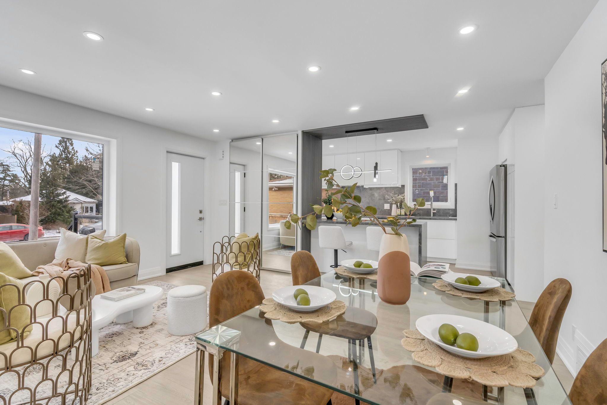 A Unique Opportunity to Own a Luxurious high end top to bottom renovated 3+4 Bed & 4 washroom house. Situated on a 50x201 ft lot with double driveway 12 car parking! This is a one-of-a-kind, unmatched modern property on Scarborough!A highly functional layout house. Main Floor shares a Stunning Open-Concept Space which is integrated with Fluted Panels With Built-In Wall Unit With LED Lighting. Seamlessly transitioning into a spacious, modern kitchen that offers abundant storage with countertop breakfast area, and upgraded stainless steel kitchen appliances. The main floor includes a laundry, 3 generously-sized bedrooms, and a master suite with a 3-piece ensuite. Main bathroom boasts a floating vanity, and LED mirrors and multi spray Standing shower. Main floor features modern doors, engineered hardwood flooring.The basement, with a separate entrance and high ceilings, includes four additional large bedrooms with closets, vinyl flooring, above-grade windows, two kitchens with brand-new stainless-steel appliances, two 3-piece bathrooms with a basement laundry. This space offers the potential for significant rental income of 0ver $4,000/month. New house roof, New 240 sqft large covered deck for the utmost enjoyment. Extra long Backyard is an oasis for the entertainment. A very much possible 1400 sqft garden suit. Detached garage including a new garage door and opener. New extended front entrance stairs with glass rail & interlocking, new sod on the front yard. Skylight on the separate entrance. Minutes away to HWY 401, to all Amenities, Go station, Shopping, Worships, Schools, Public Transit, Parks. Perfect quite Family Friendly Neighborhood. House wasnt spared any details. **See the Feature Sheet for many more.