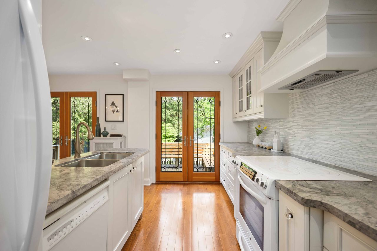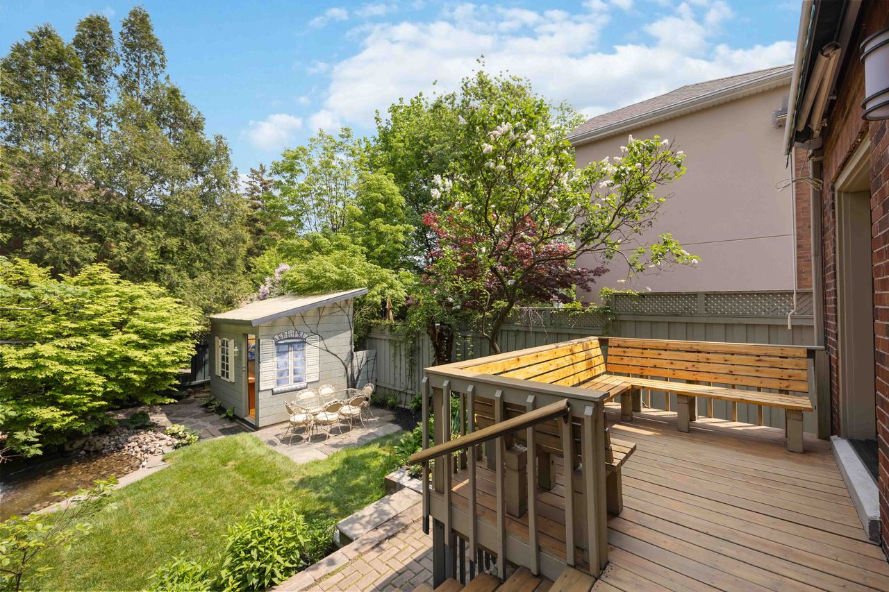 Priced to sell! Wake up to absolute bliss. Just steps from transit, shops, dining, parks, and some of the best schools in Toronto. This completely stunning South Leaside home has landscaping in the front and back that will make you forget you are so close to the heart of the city. Professionally landscaped 3-car interlocking driveway with retaining walls and pond. Finished garage/yoga/art studio with French doors at front and back. Backyard has a stunning large pond, sauna, insulated storage shed, deck with built-in bench and tons of greenery. Beautifully renovated main level by award-winning kitchen designer, dual French doors at back, open concept kitchen/dining with recessed beam and granite countertops. Newly replaced windows on main and top floor with spacious bedrooms. Side entrance to a separate inlaw/nanny 1-bedroom suite. You need to see this home in person! Offers anytime!