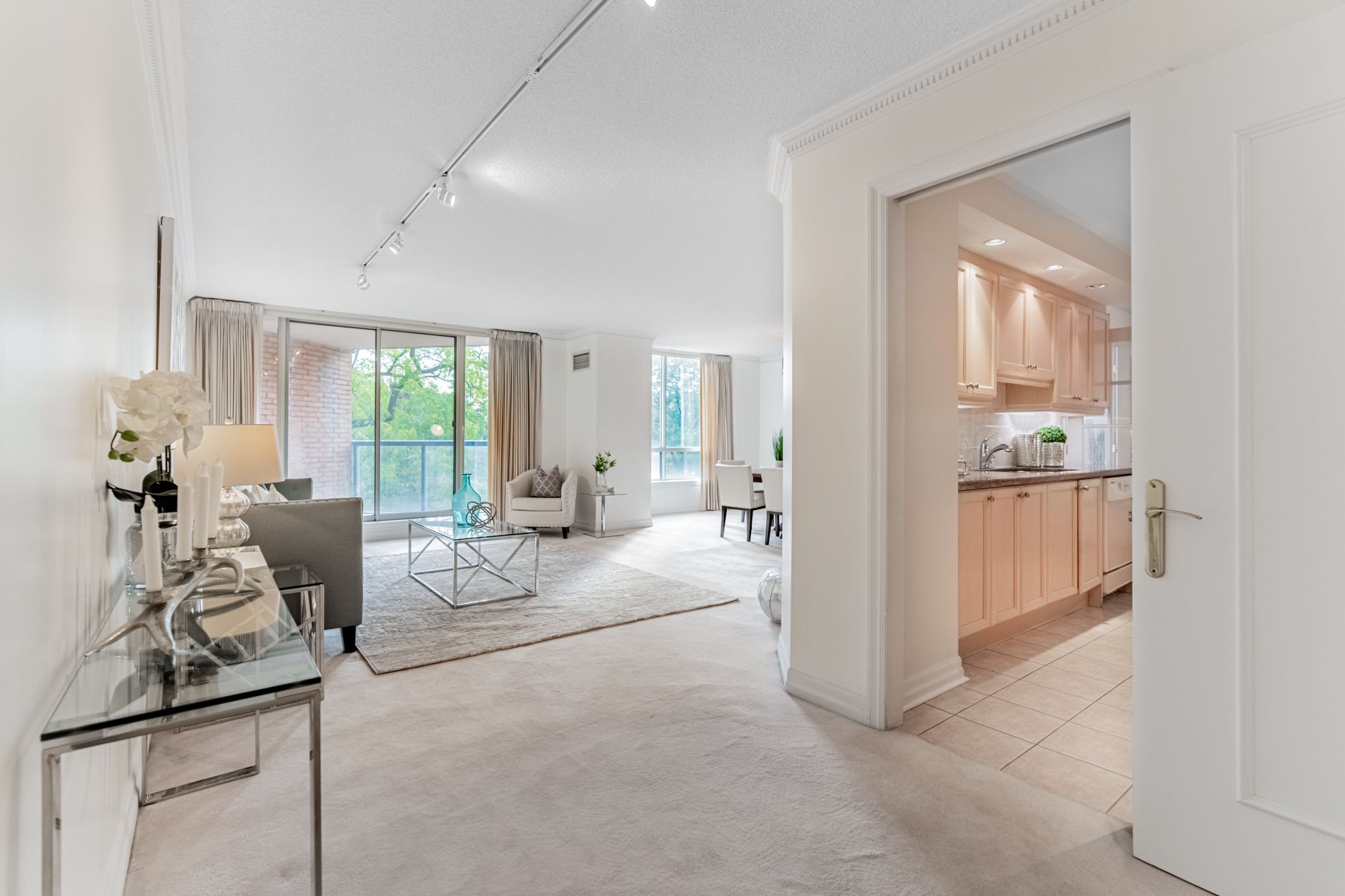 Step away from busy Yonge Street into the light filled tranquility of The Residence of Lawrence Park. This quiet, friendly & elegant building will welcome you to your new home. Enjoy this unique apartment with large windows overlooking treed east views and city views from the south facing second balcony. Spacious 2 bedroom condo boast an eat-in kitchen, discreet washer/dryer & abundance of entertaining space. Balcony #1 - 133 sq ft - Balcony #2 - 79 sq ftWell managed, impecably maintained, mid-rise building with: 24/7 Concierge, Pool & Sauna, Gym, Library, Card Room, Penthouse Party Room, Rooftop Terrace with BBQ & herb garden, ample Visitors parking and a Guest Suite.