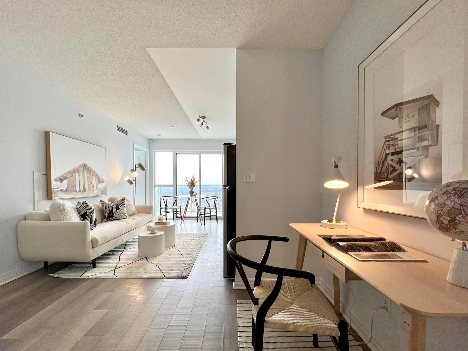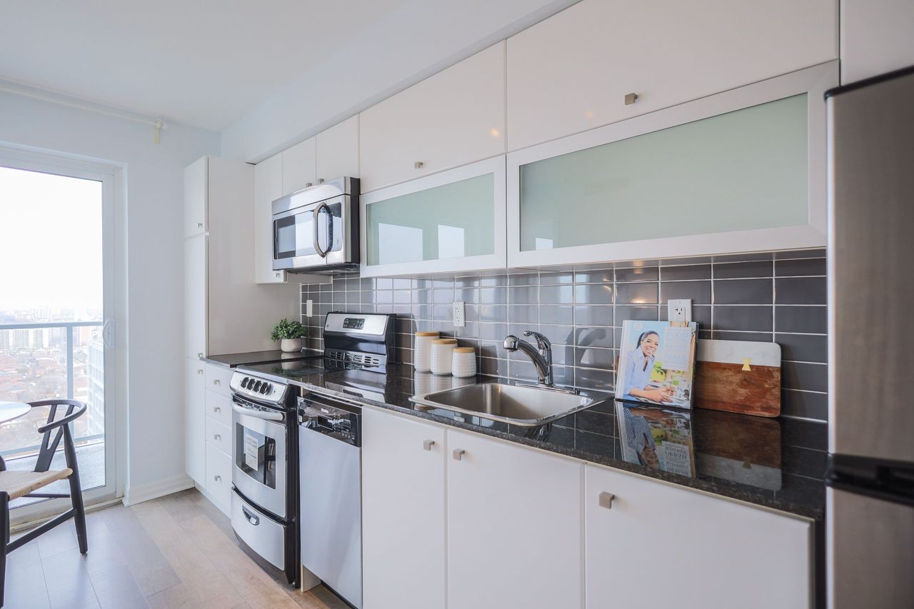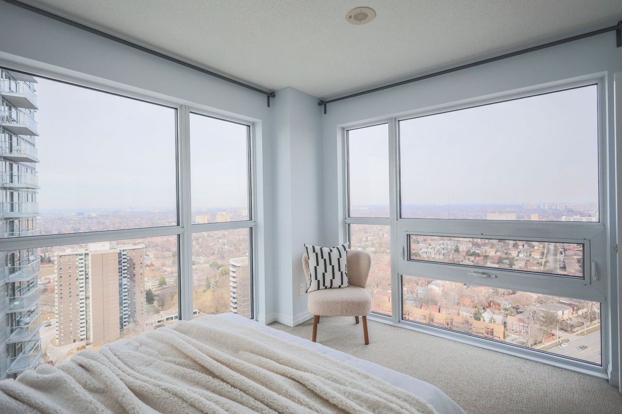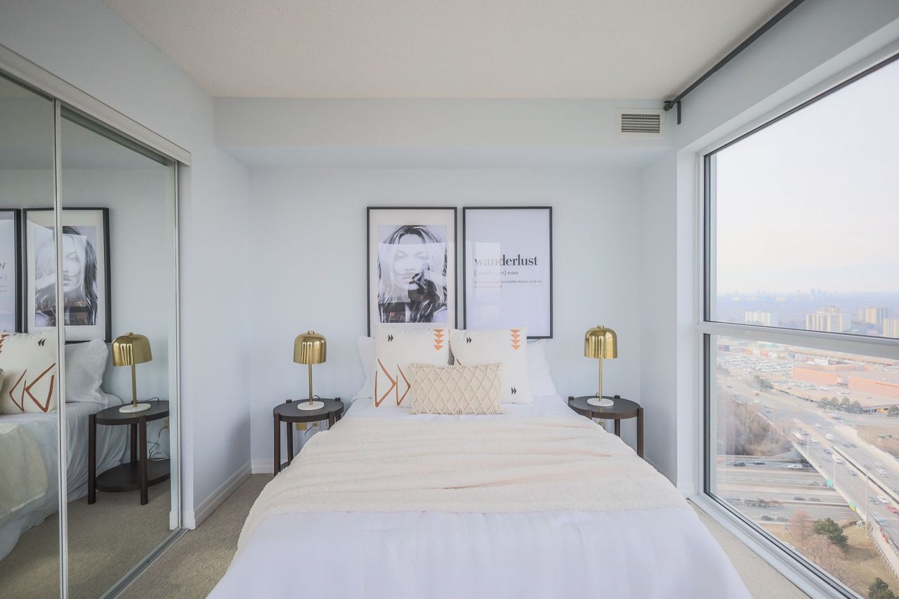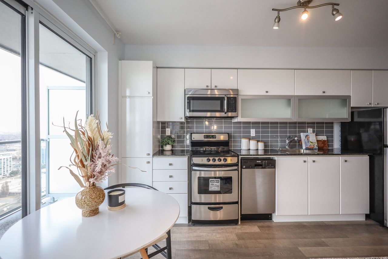 Envision yourself waking up to beautiful corner views from the 32nd floor! Enjoy a coffee looking out to unobstructed, breathtaking views, work comfortably from your home office space or prepare a home cooked meal after a quick local grocery run at T&T supermarket. Walk across the street for a movie date at Cineplex or spend a day full of entertainment at the soon-to-be opened 20,000 sqft Playdium complex. With TTC subway access, steps from Fairview Mall, and highway access in every direction, this starter condo offers unparalleled convenience and excitement! Welcome to your urban oasis.Fridge, Stove, B/I Dishwasher, Microwave, Combo Washer/Dryer, All Elfs, One Locker & Parking Spot included