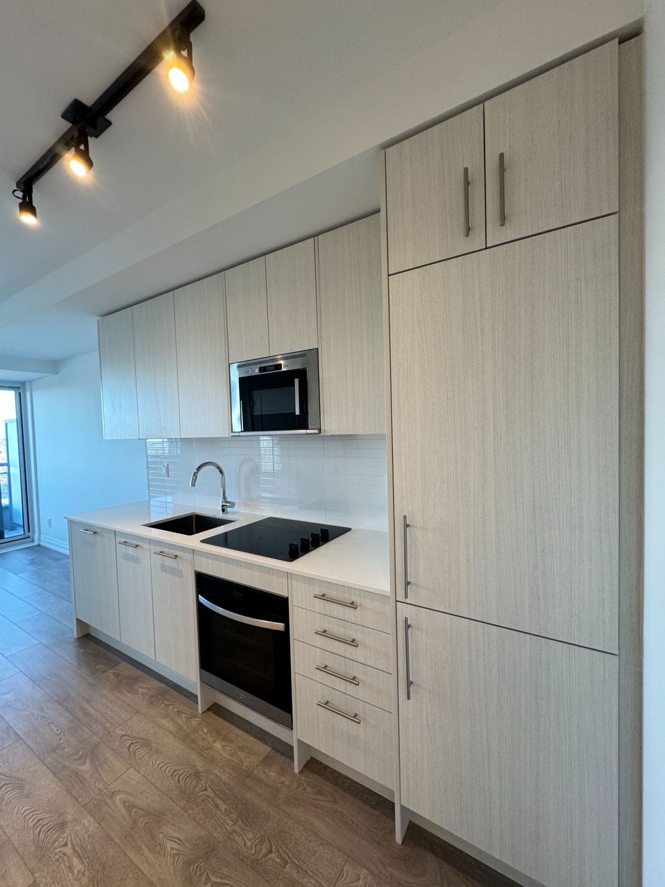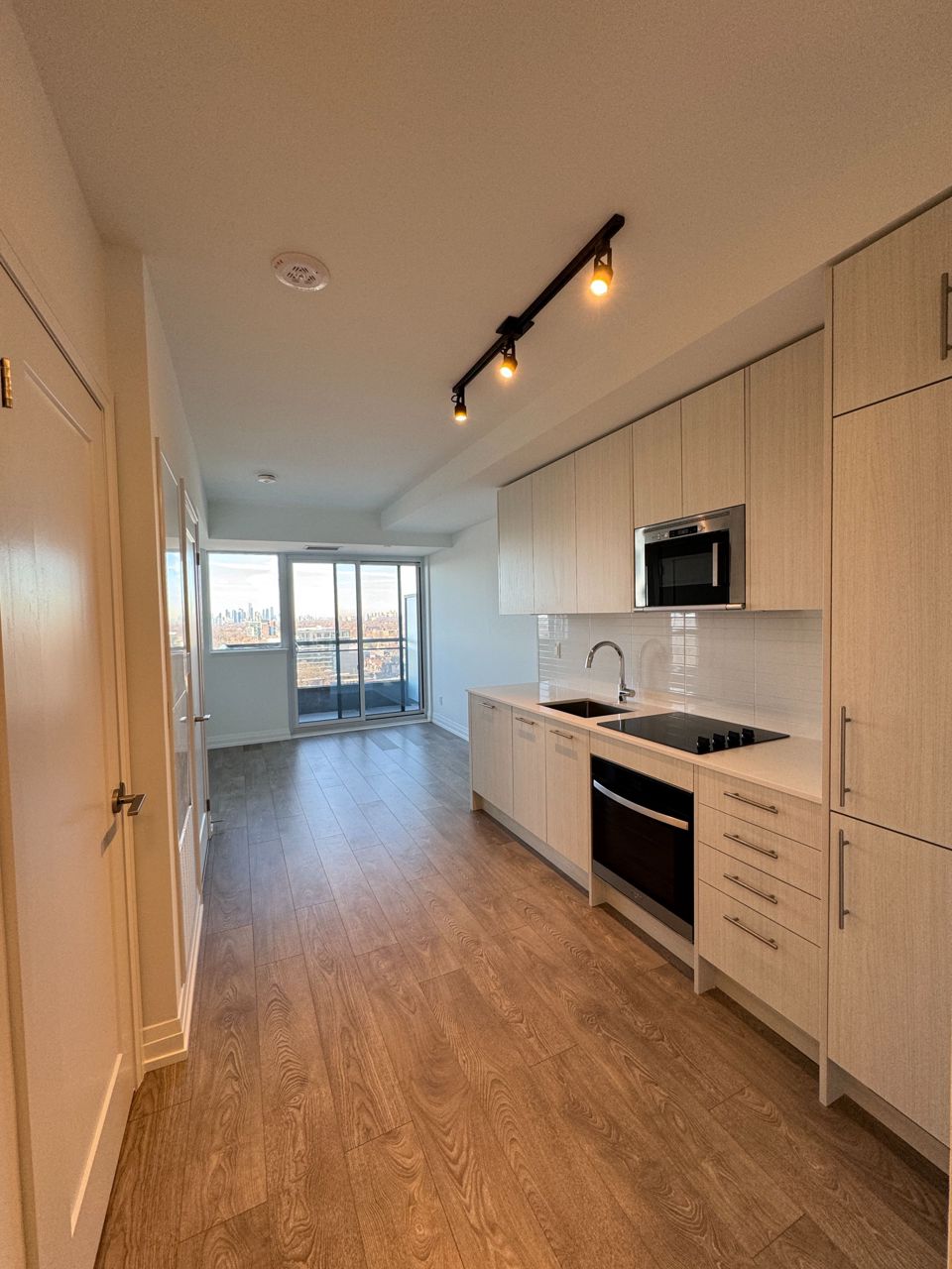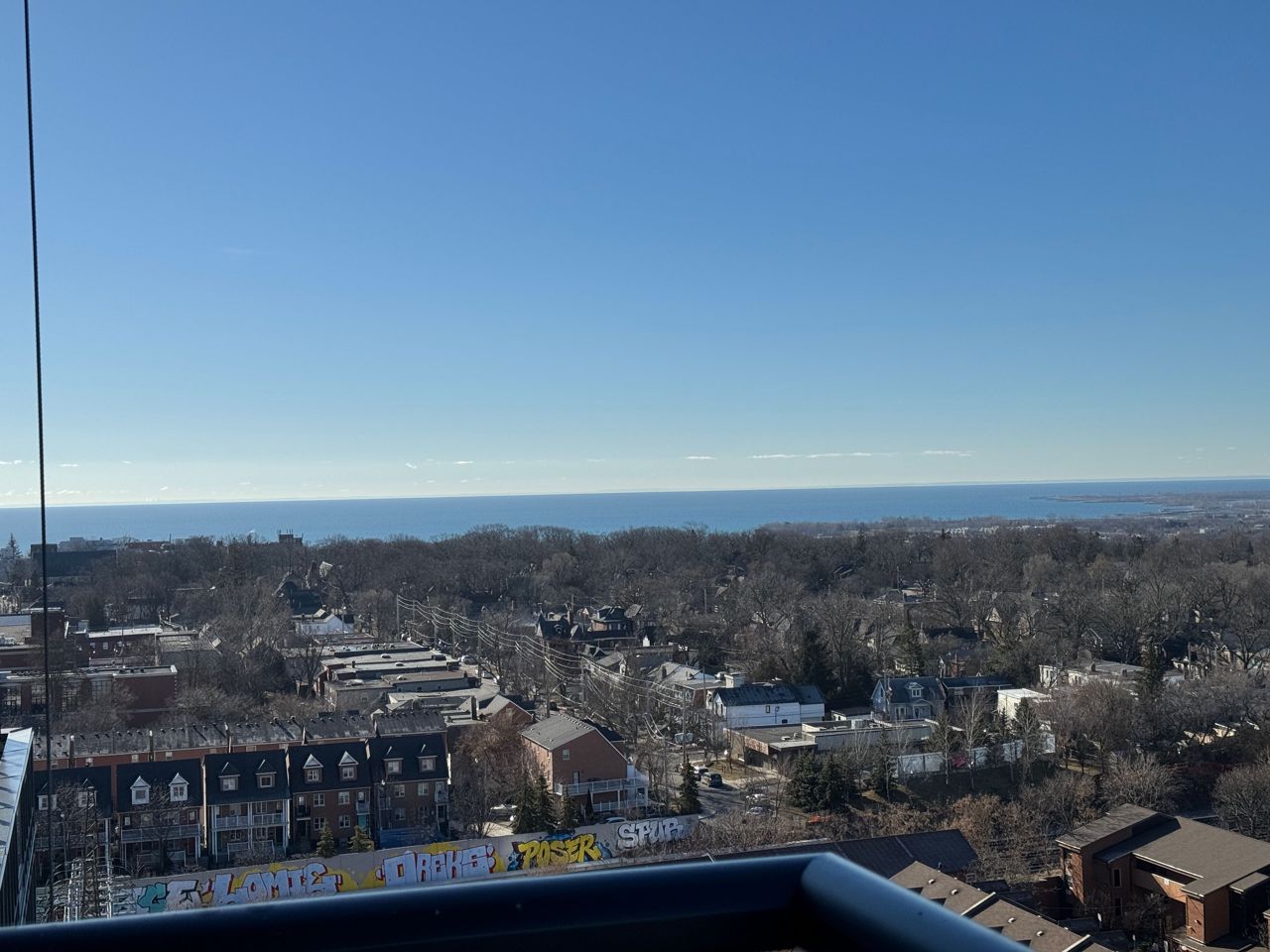 Fantastic West, South & North Views of the City & Lake Ontario. No Car Needed Here. With the TTC bus, Streetcars, train and Danforth Go Transit @ door or just steps away. Enjoy Sunset views & the vibrant Danforth neighbourhood w/endless resturant choices, unique shops. Centrally located. Kick your feet up in this chic interior featuring a desired open concept layout w/9ft ceilings (approx.) flr-to-ceilings windows; huge west facing balcony, modern kitchen w/intergrated appliances, quartz counters, Large primary bdrm, unit door w/smart FOB/app access; amenities include: 24 hr concerige; fully equipped fitness facility w/weight, cardio, & yoga/stretch rooms; children's playroom; huge outdoor terrace w/dining areas & BBQ's; state-of-the-art party lounge w/Bar, dining room, & catering...Paid parking on site.S/S appliances include over & glass cooktop; microwave with exhuast fan; intergrated microwave and fridge/freezer.