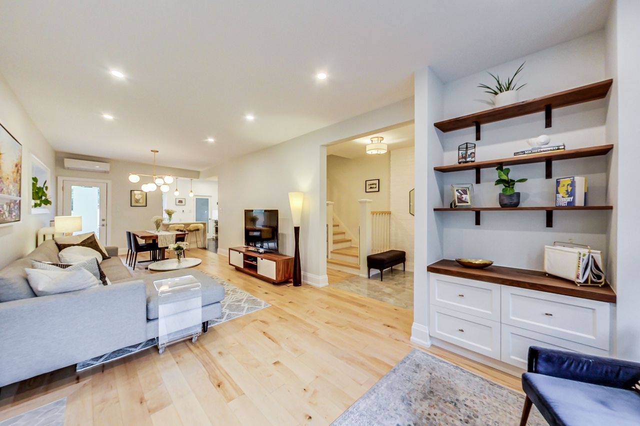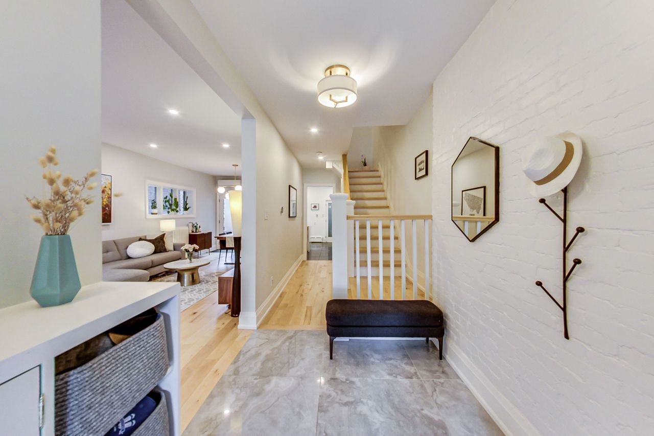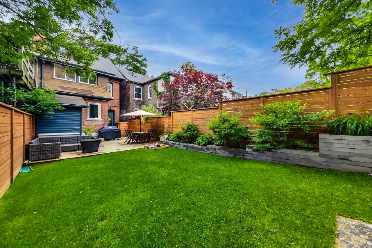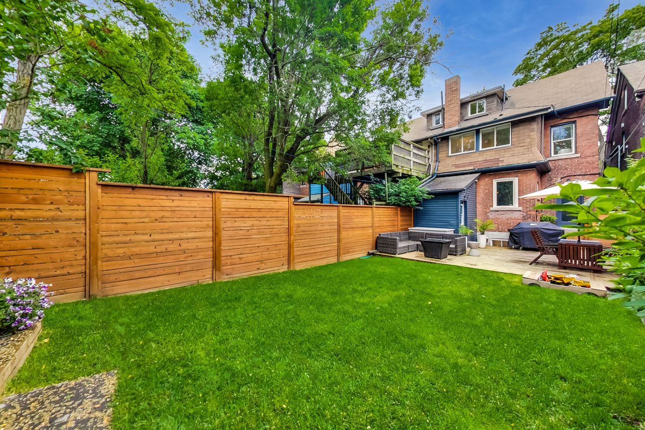 Charming fully-furnished semi-detached home in a very desirable area in High Park/Ronscesvalles. This fully renovated home boasts tons of natural light, new open concept kitchen with high end appliances, Quartzite counters, heated floors, and main floor powder room. The upper levels feature a luxurious 5 piece bathroom with heated floors, new stacked washer/dryer, 4 bedrooms with lots of closet space, and gas fireplace. Walk out to large deck, 12x10 ft shed and lots of green space in the fully fenced backyard, perfect for entertaining! Enjoy nature and the peacefulness of the outdoors while being in the heart of the city.