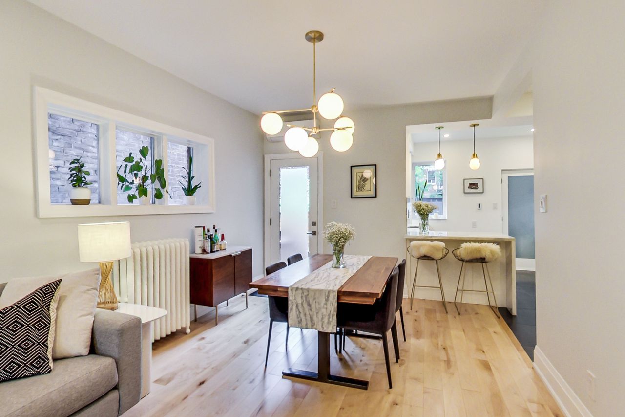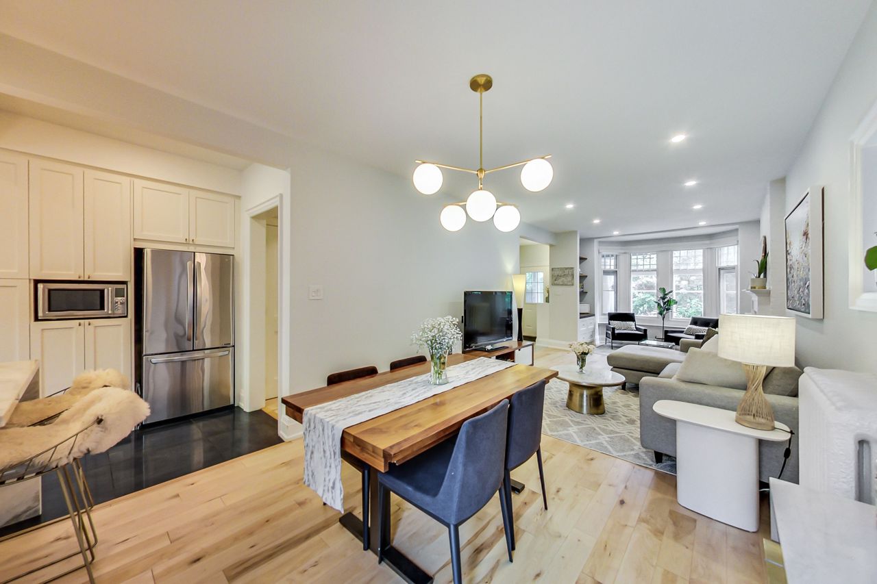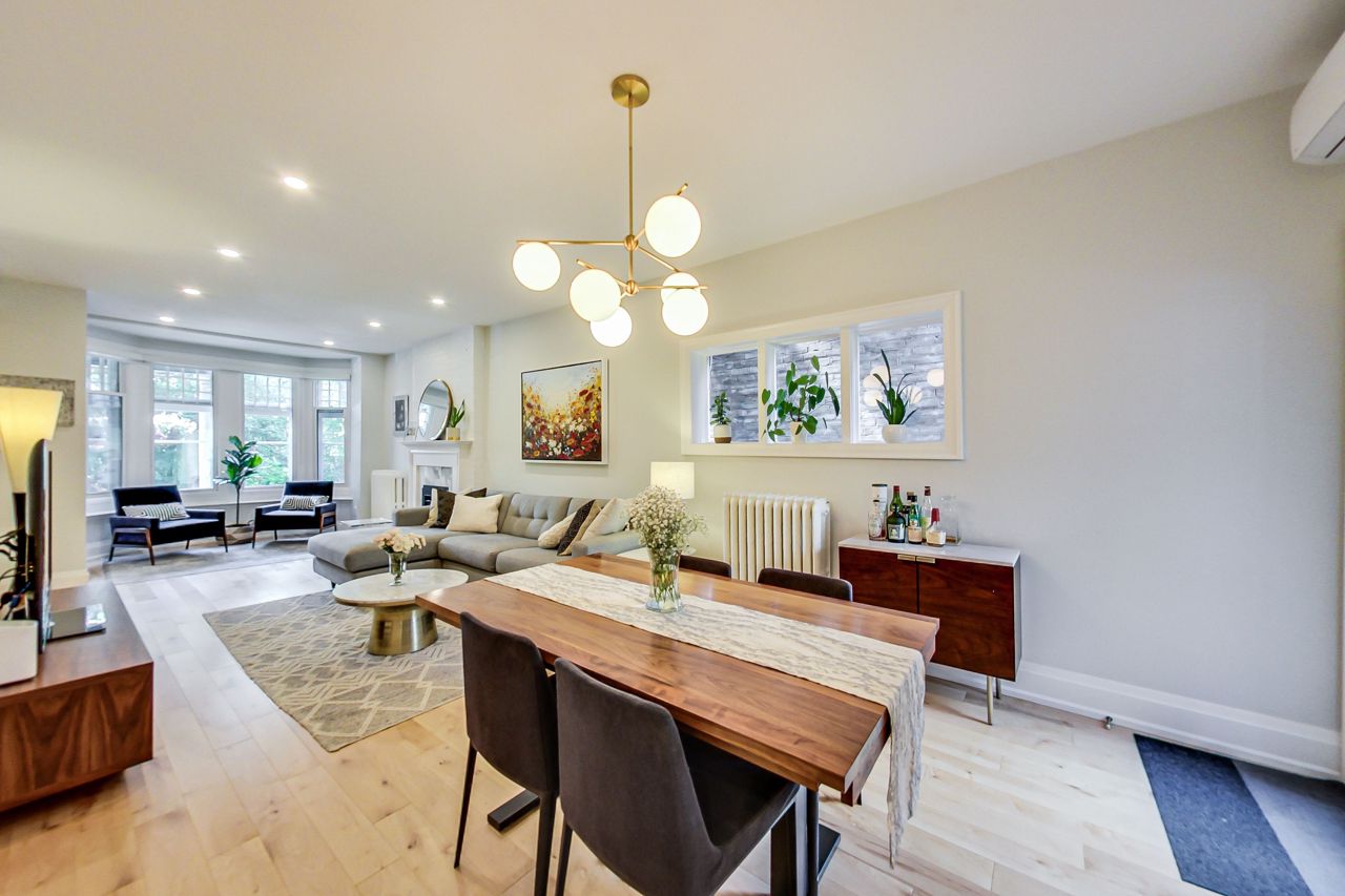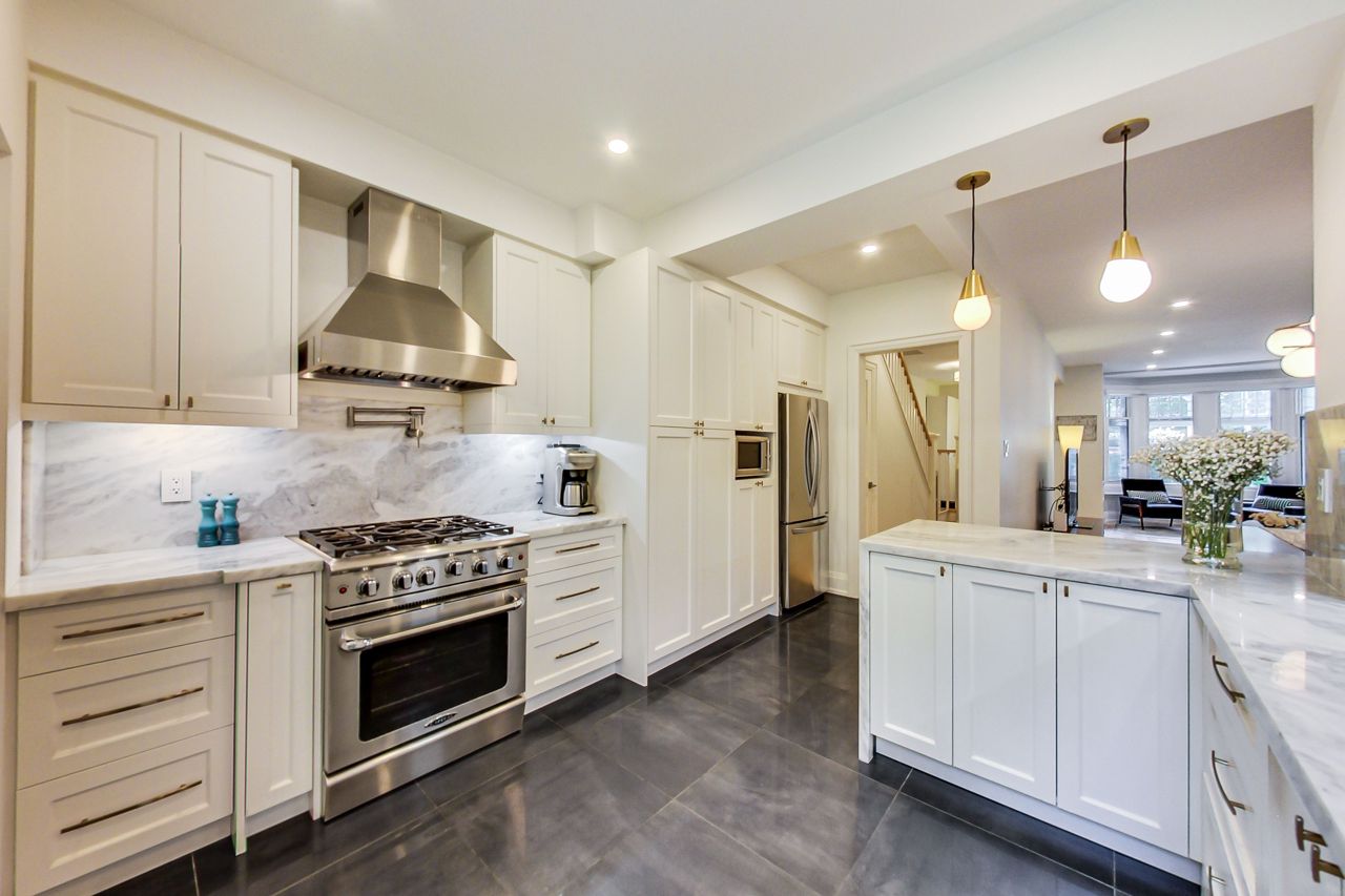 Charming fully-furnished semi-detached home in a very desirable area in High Park/Ronscesvalles. This fully renovated home boasts tons of natural light, new open concept kitchen with high end appliances, Quartzite counters, heated floors, and main floor powder room. The upper levels feature a luxurious 5 piece bathroom with heated floors, new stacked washer/dryer, 4 bedrooms with lots of closet space, and gas fireplace. Walk out to large deck, 12x10 ft shed and lots of green space in the fully fenced backyard, perfect for entertaining! Enjoy nature and the peacefulness of the outdoors while being in the heart of the city.