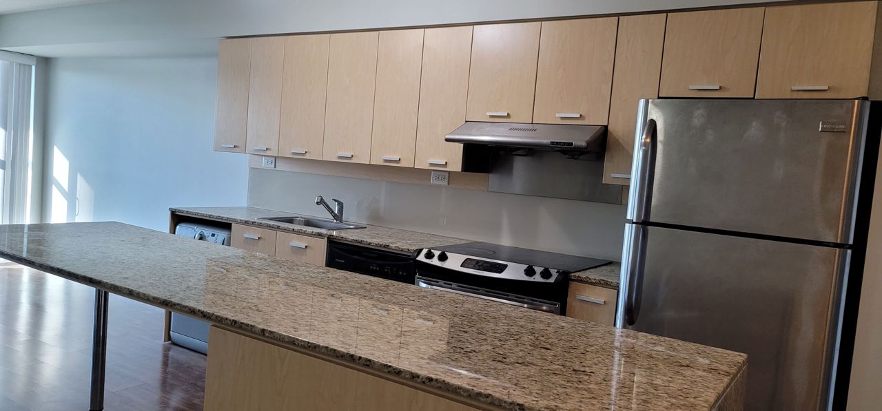A Luxury 1 Bedroom + Den Condo Is In A Prime North York, Leslie/Sheppard Area. Modern Kitchen With Granite Counter Top And Island. Den Could Be Used As A 2nd Bedroom. One Parking Is Included. Many Amenities Like 24 Hrs Concierge, Indoor Pool, Gym, Steps To Subway, Ttc, Shopping. Easy Access To Hwy 401, 404, Etc.S/S Stove, S/S Fridge, S/S Dishwasher, 2 In 1 Washer/Dryer, All Electric Light Fixtures, All Window Coverings