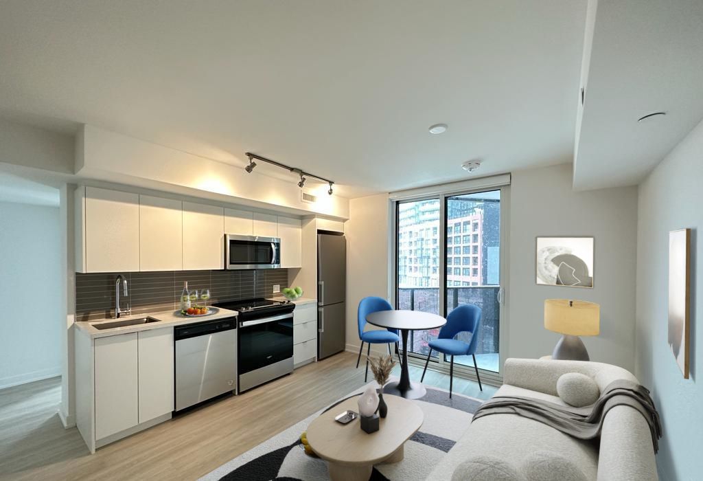 Welcome to this beautiful 2-bedroom, 2-bathroom condo, offering a spacious 593 sq ft of living area. This unit includes upgraded features like a quartz kitchen backsplash, under-cabinet lighting, and built-in appliances for a sleek, modern look. The master bedroom has a handheld shower, with easy-to-use switch blinds throughout all rooms. Building perks include a concierge, gym, party/meeting room, recreation room, rooftop deck/garden, and visitor parking. Located just minutes from Wilson Subway Station, Hwy 401, Allen Rd, Yorkdale Mall, Costco, and many other amenities, this condo provides both comfort and convenience in one of the city's most desirable areas. Don't miss this great chance to own a spacious condo in a top location!Virtual Staging
