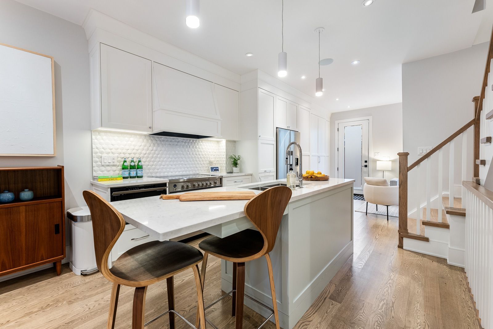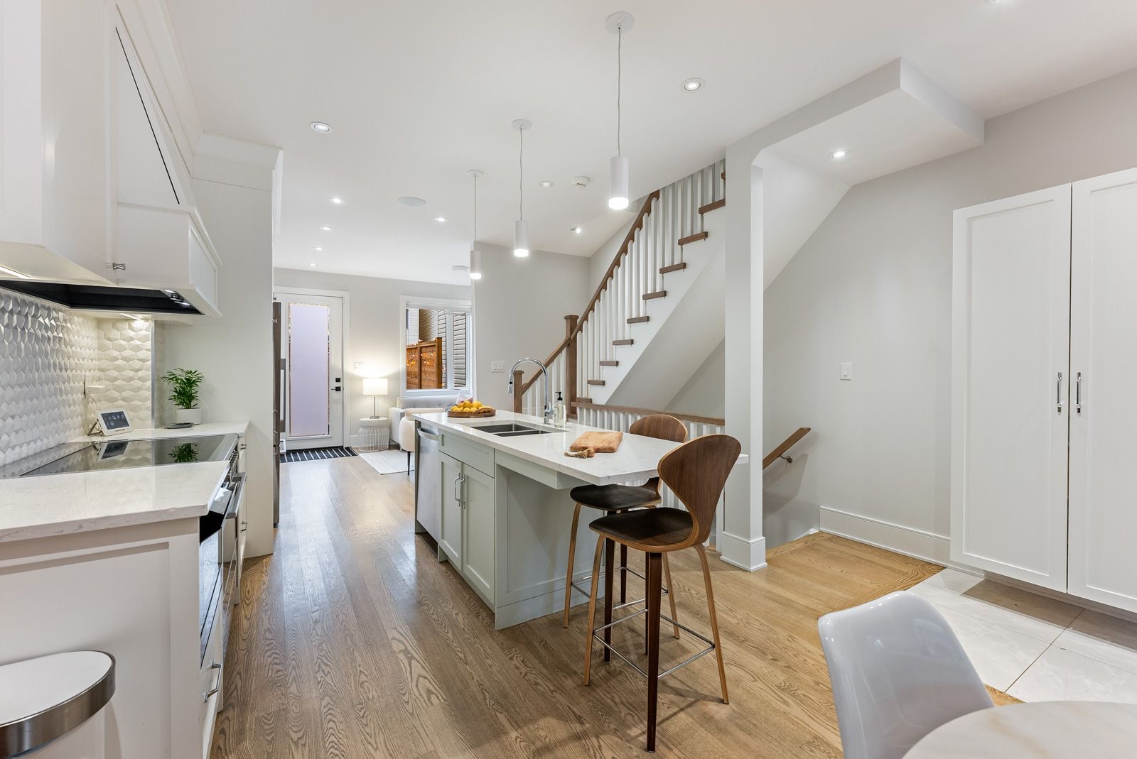 Prime Leslieville! Gorgeous Semi Detached family home with $250K spent on stunning reno top to bottom! Chef's kitchen features Fisher & Paykel luxury appliances, custom millwork, large centre island with quartz counters - perfect for entertaining. Wide-plank oak floors, open concept dining room and serene living room with walkout to gorgeous new deck. The 2nd floor is the KidZone with fabulous-sized bedrooms, ample storage and a sleek Jack 'n Jill bathroom. The 3rd floor belongs all to the grown ups with a true primary retreat; Beautiful 3 pc ensuite, gas FP, sitting room and walkout to private deck. The basement offers even more space with a large family room for movie nights & WFH Space. Walkers paradise as you're at the very heart of Queen & Logan. Hop to Starbucks, Brick St Bakery, Ed's Ice Cream, restaurants, cafes and transit at your door. Wonderful neighbours! No need for a car but if you got one - it has parking too! This is Leslieville living at its' absolute best.Reno 2020, Deck 2023, Roof 2016, Sump Pump 2023. Jimmy Simpson Park & Rec Centre with swimming pool & tennis courts 1 min walk. B/I Kitchen Speakers, Torlys cork floors. Kids play in the lane & adults meet for wine - such a special pocket!