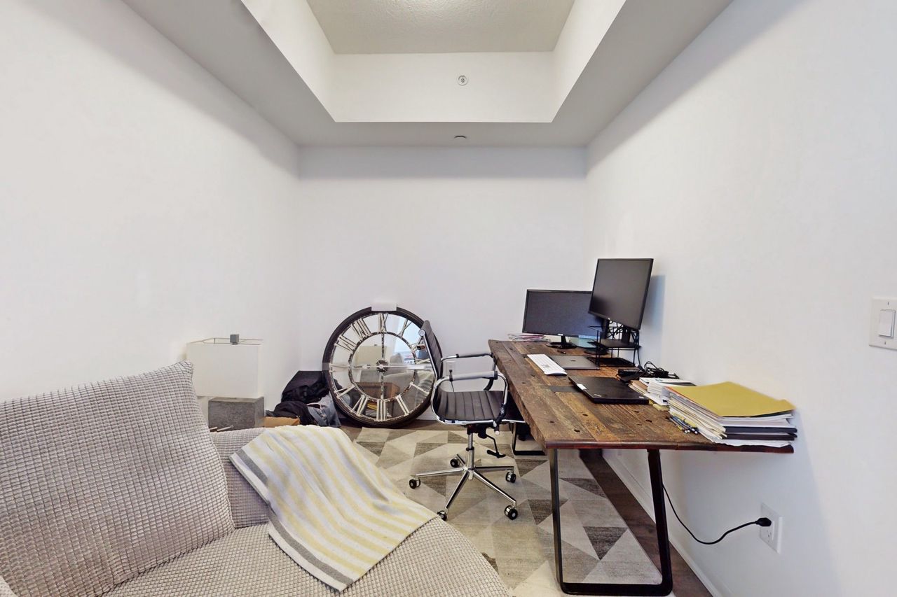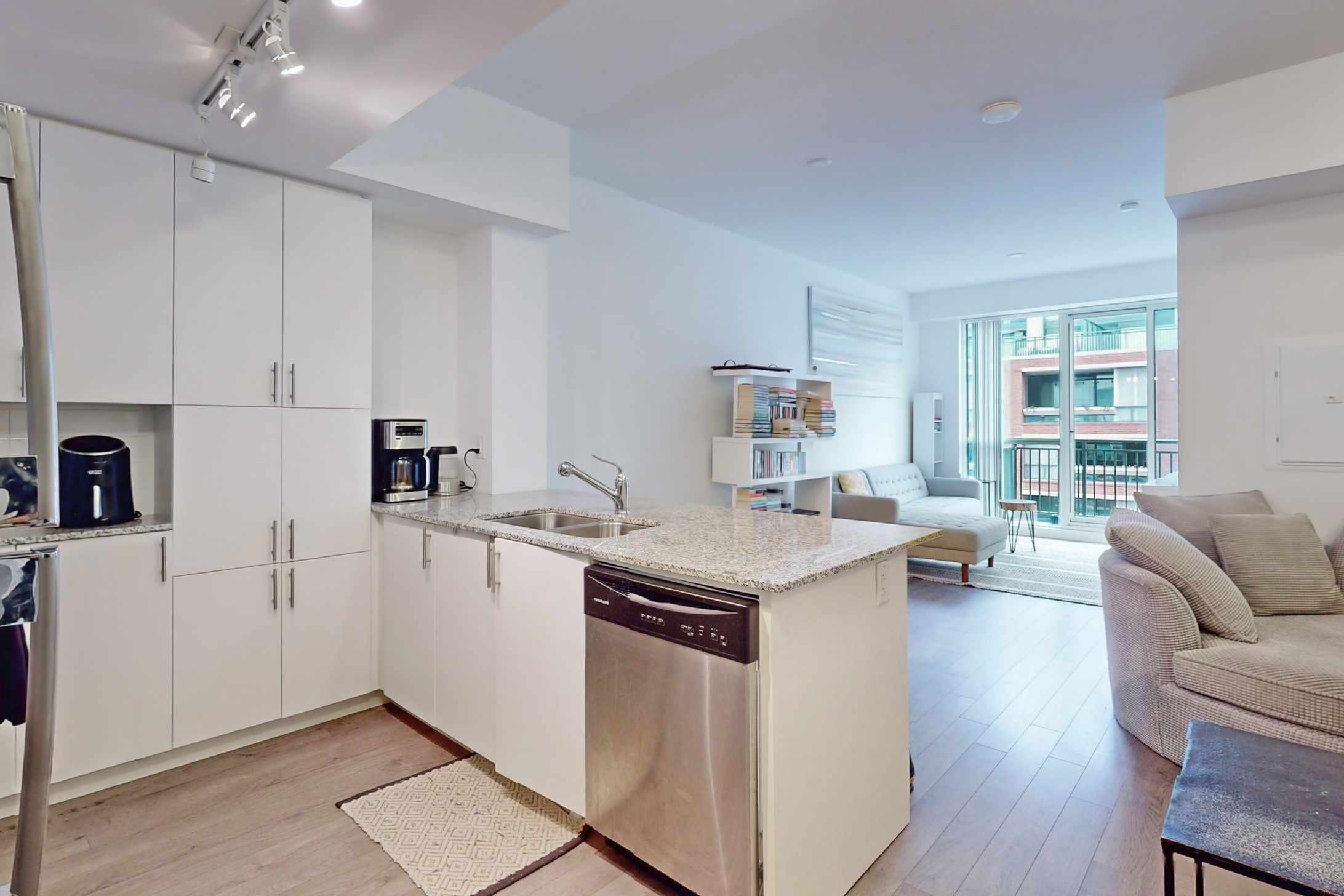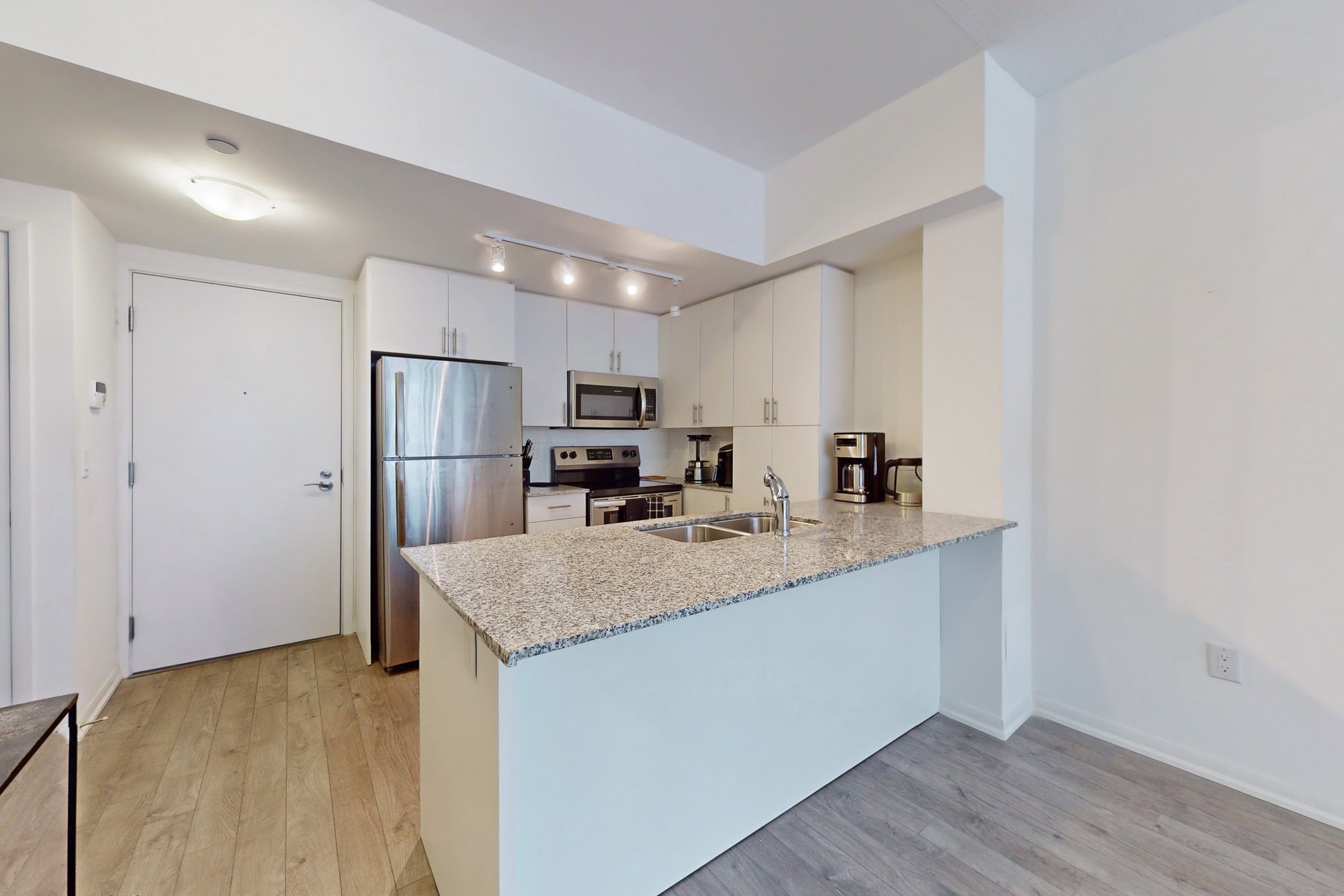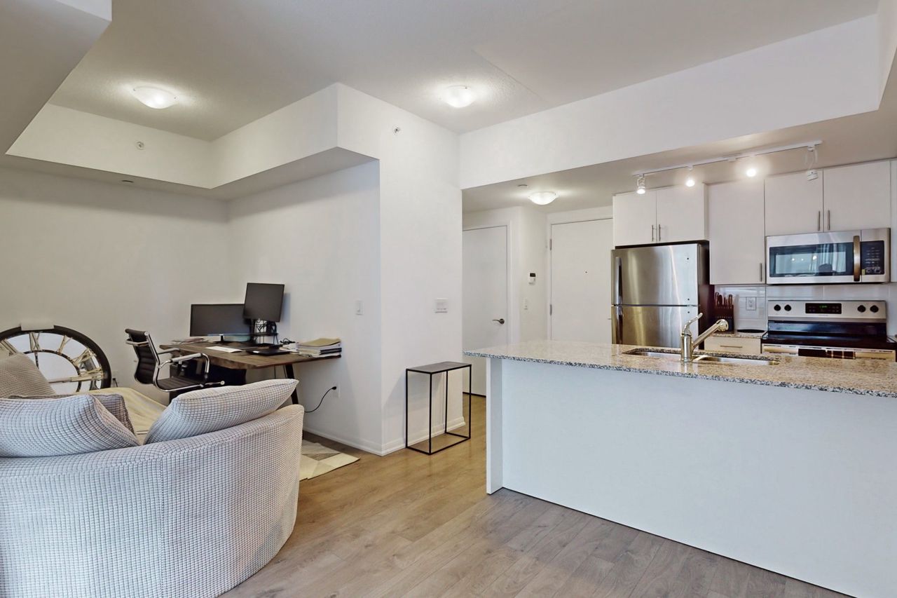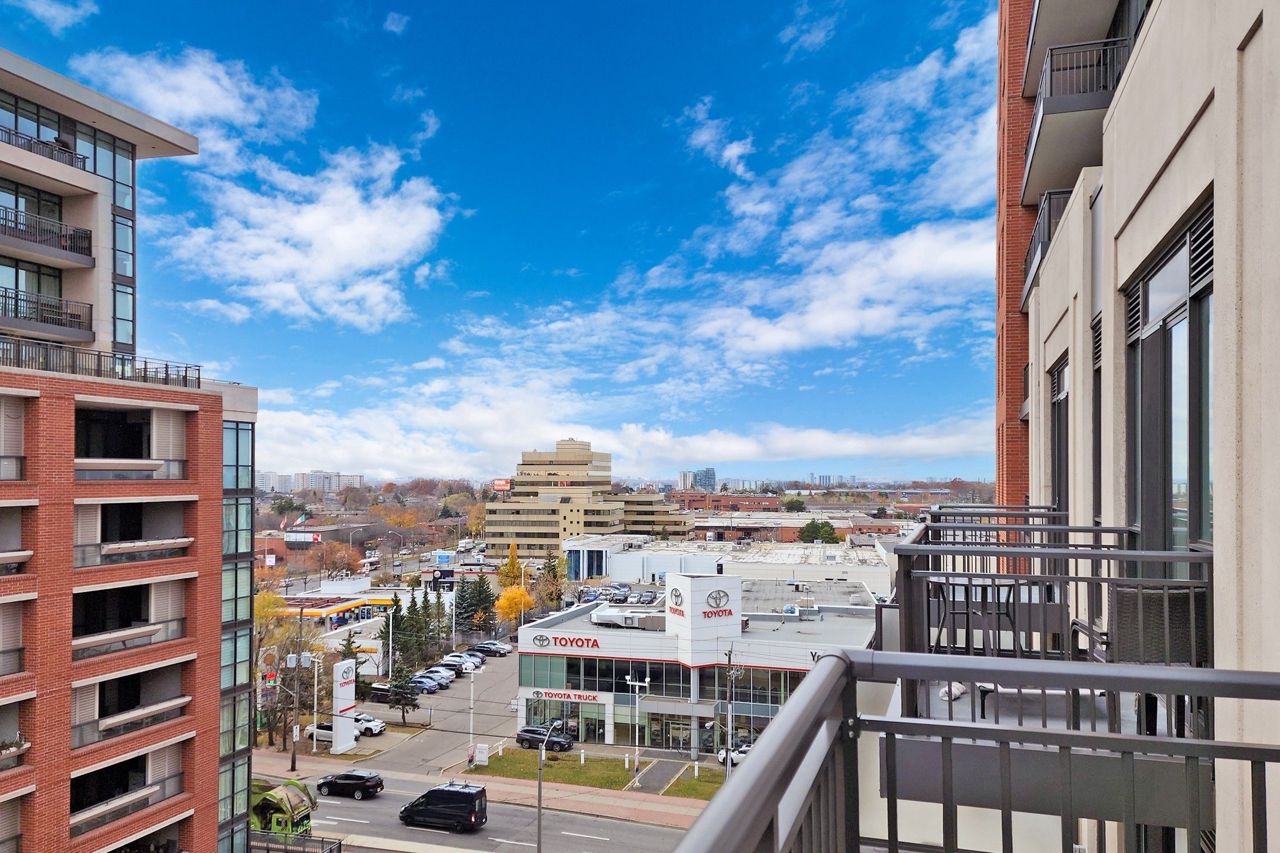 Experience vibrant midtown living! In the heart of North York, this exceptional 624 Sq Ft 1 bedroom + den unit offers a rare and well laid out floorplan. This sun-filled home features 9 feet ceilings, stylish laminate flooring, a modern kitchen with stainless steel appliances, breakfast bar and granite countertops. The open concept living and dining is truly impressive with its bright space boasting floor-to-ceiling windows, a generously sized primary bedroom, and access to a quiet & large walkout balcony. The spacious den is perfect for a home office or nursery. Hotel style amenities - gym, visitor's parking, rooftop terrace & outdoor pool, party room, guest suites & more. Unit includes a parking and a locker. Must see video tour!With an excellent transit and a walker's score, it is just steps away from 401, TTC, Yorkdale Mall, Allen Rd, Costco, shops, parks, and more!