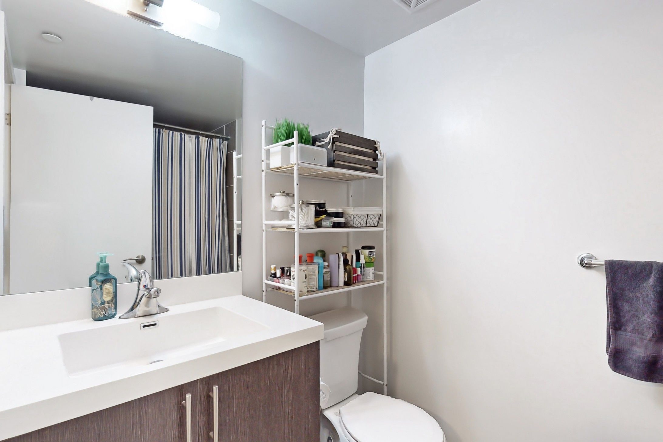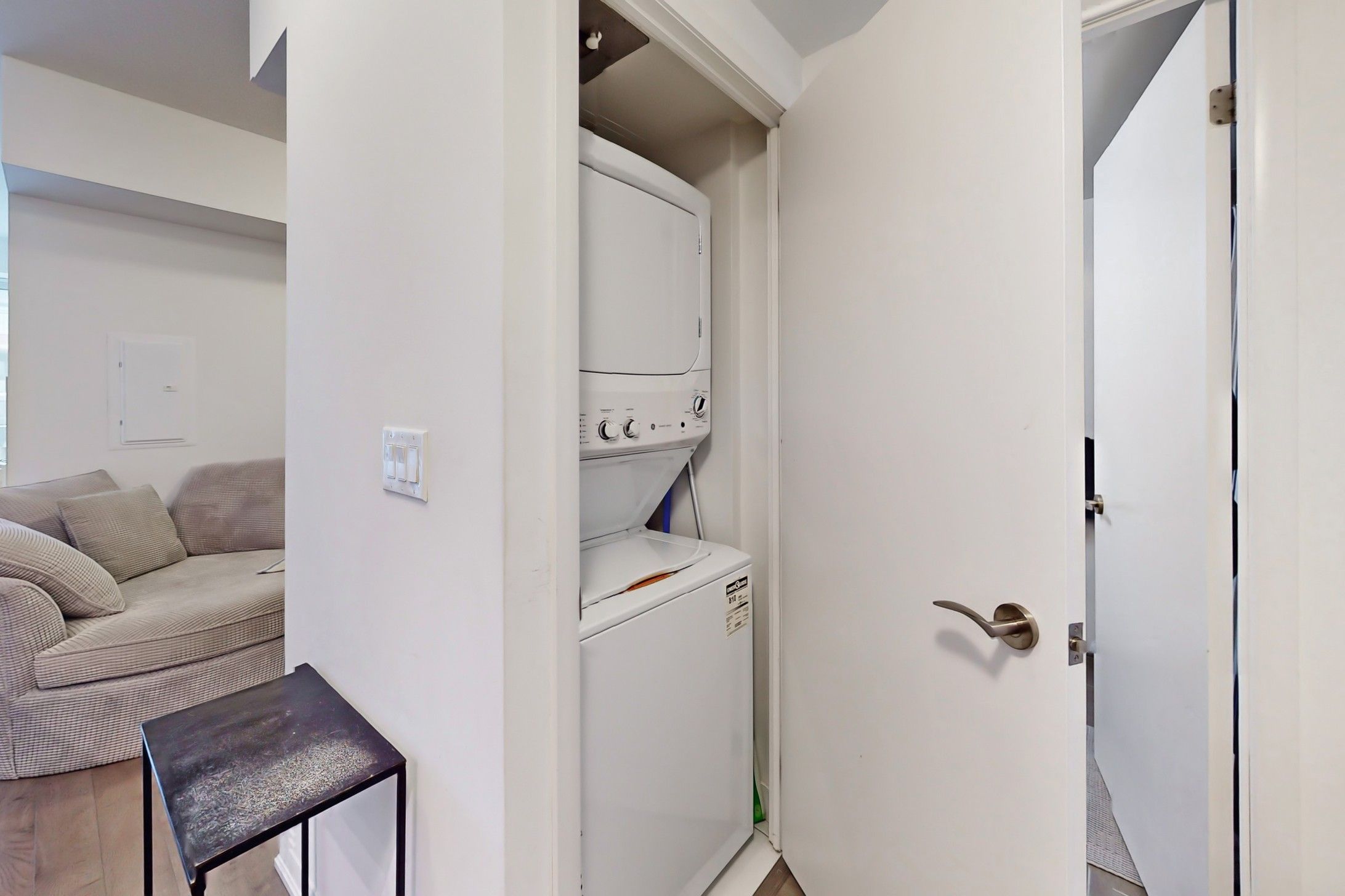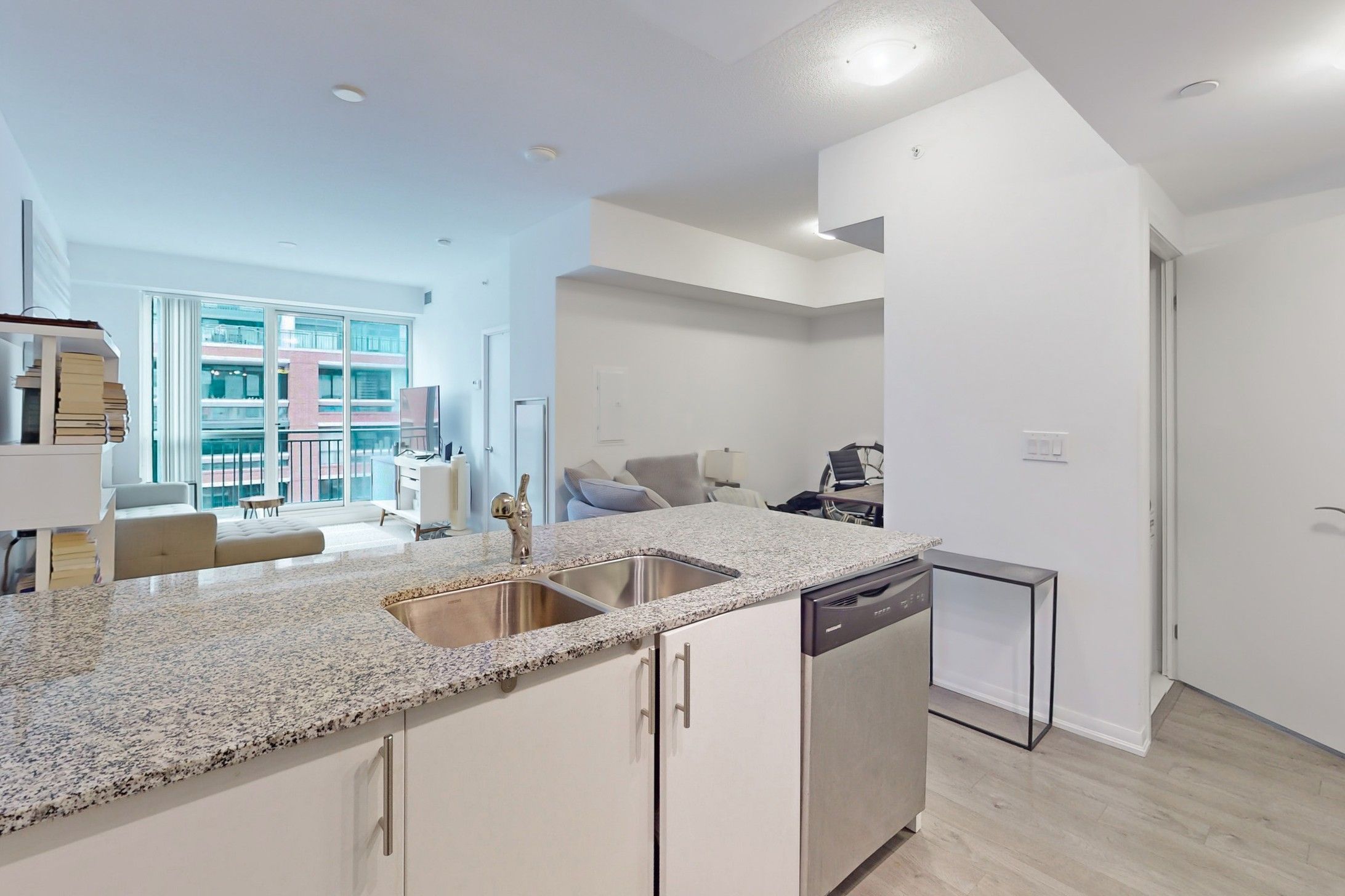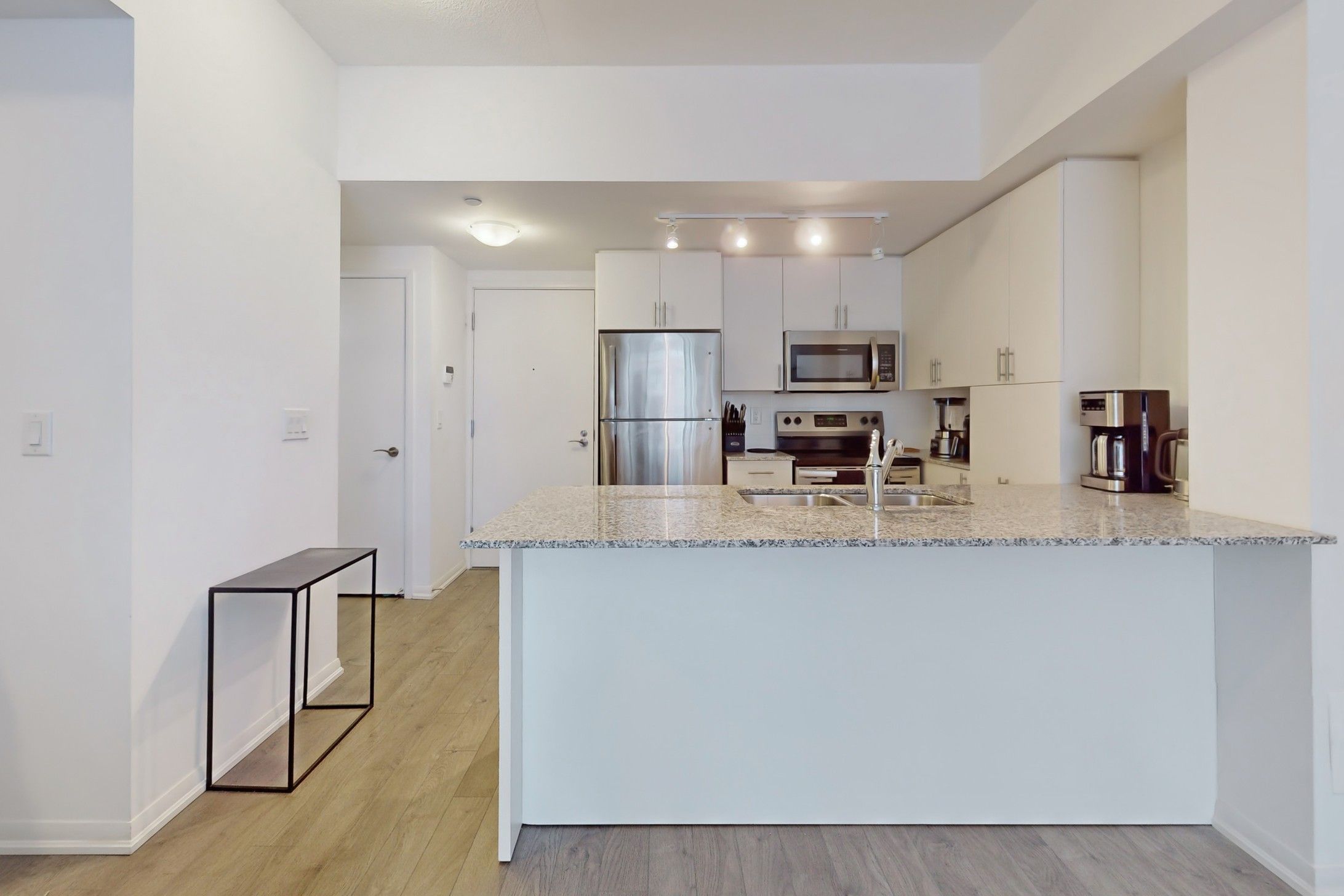 Experience vibrant midtown living! In the heart of North York, this exceptional 624 Sq Ft 1 bedroom + den unit offers a rare and well laid out floorplan. This sun-filled home features 9 feet ceilings, stylish laminate flooring, a modern kitchen with stainless steel appliances, breakfast bar and granite countertops. The open concept living and dining is truly impressive with its bright space boasting floor-to-ceiling windows, a generously sized primary bedroom, and access to a quiet & large walkout balcony. The spacious den is perfect for a home office or nursery. Hotel style amenities - gym, visitor's parking, rooftop terrace & outdoor pool, party room, guest suites & more. Unit includes a parking and a locker. Must see video tour!With an excellent transit and a walker's score, it is just steps away from 401, TTC, Yorkdale Mall, Allen Rd, Costco, shops, parks, and more!