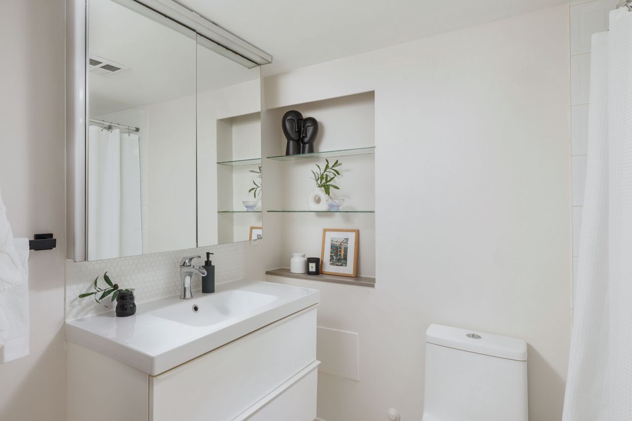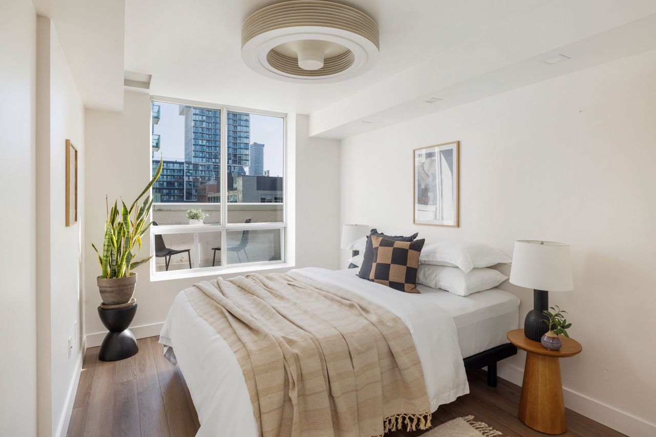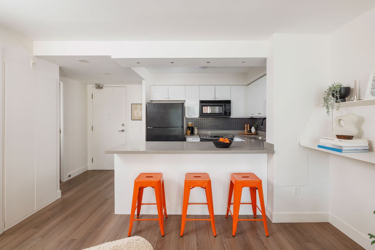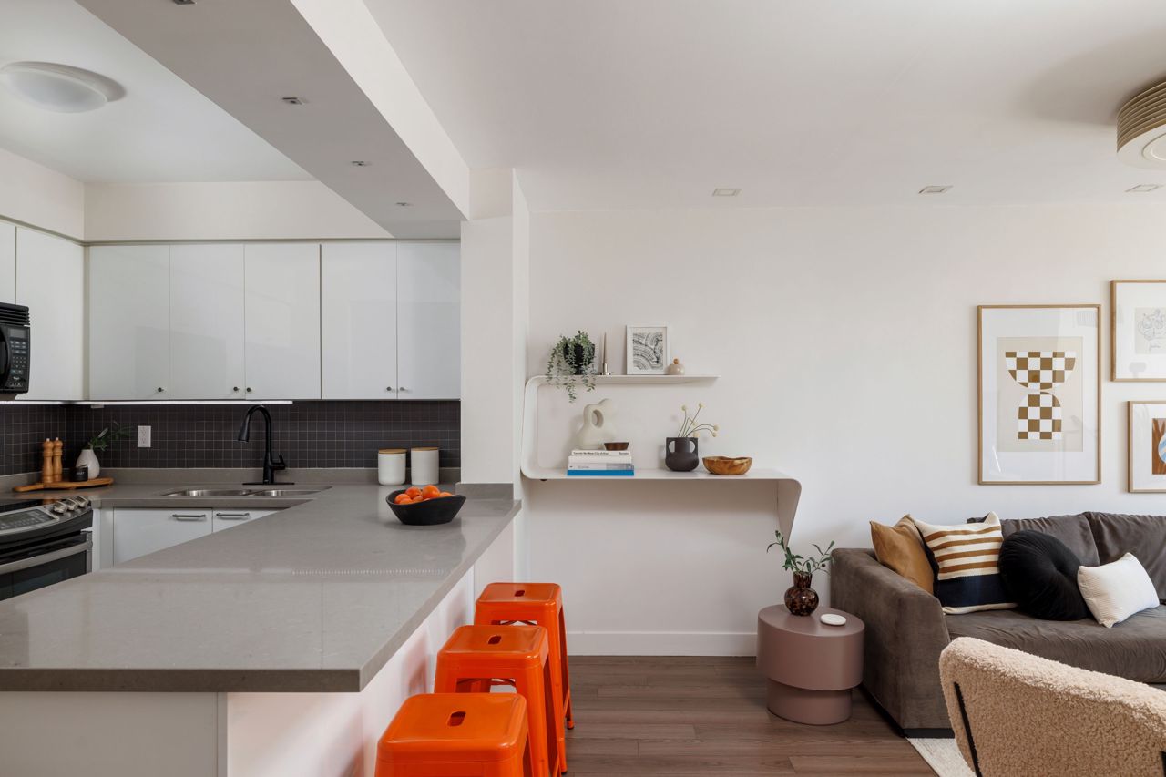 你被透过窗户洒落的柔和阳光唤醒,新鲜咖啡的香气诱惑着你从床上起身。步出朝南的露台,温暖环绕着你。城市在下方展开,熙熙攘攘,远处传来喇叭声、鸟儿的翅膀扑腾声以及清晨忙碌的低语声。你啜饮一口,浓郁的苦涩温暖在你的舌尖蔓延,微风拂过你的肌肤,带着混凝土、花朵和酝酿中的雄心勃勃的气息。这就是它,你能听到它在呼唤你吗?803号套房。拥有接近600平方英尺的经过精心设计的居住空间,你永远不会感到城市生活拥挤。这座经过精心翻新的公寓的设计考虑了功能、空间和光线。主卧室轻松容纳一张大床、床头柜和一个书桌,如果你需要的话。带整理器和抽屉的步入式衣柜确保你永远不会再为最喜欢的衬衫而苦苦寻找。扩大的浴室拥有充足的储物空间和多种照明选择。当太阳落山时,享受许多可调光的LED照明选项,营造出温暖、柔和的光芒。带延伸式早餐吧台的大厨房,非常适合烹饪、娱乐或在家工作。浴室旁边的储物柜也可以用作亚麻布储藏室!节能生活是首要考虑。803号套房配备了两个Exhale无叶风扇,用于持续的空气循环和温度效率,以及Ecobee智能监控系统,用于在家或在外时控制气候。129平方英尺的露台既注重隐私又注重放松——同时让你欣赏城市景观、用餐,甚至可以进行城市农业。无论下雨还是晴天,露台的一部分都被覆盖着!简单生活,无杂乱。进入时,你会发现一个步入式储物区和一个堆叠式洗衣房(2020年)。更重要的是,拥有1个地下停车位和一个储物柜,用于存放多余的物品。带我到可以呼吸的地方,我还有很多东西要看。我想要在这里。在一个我可以称之为我自己的地方……
