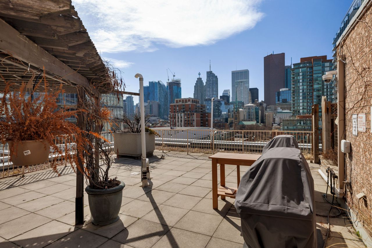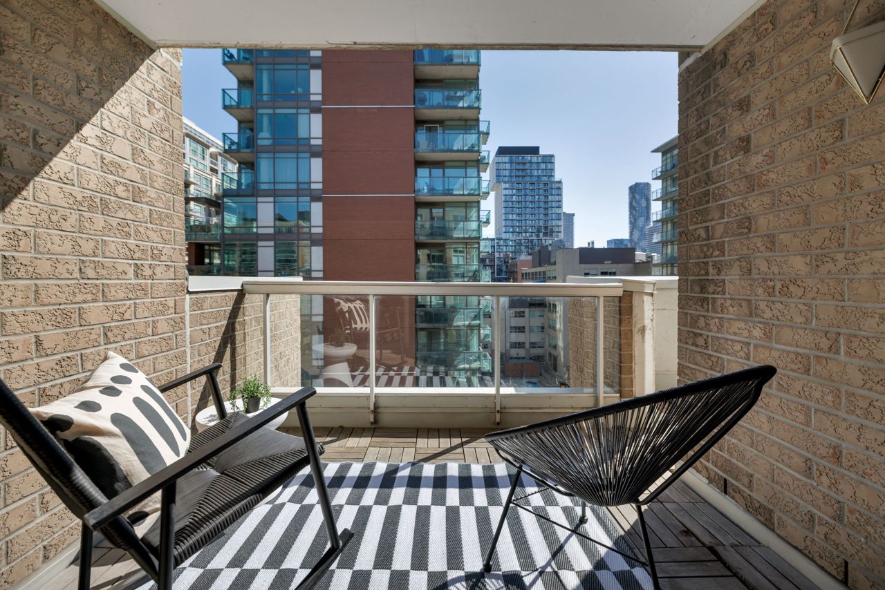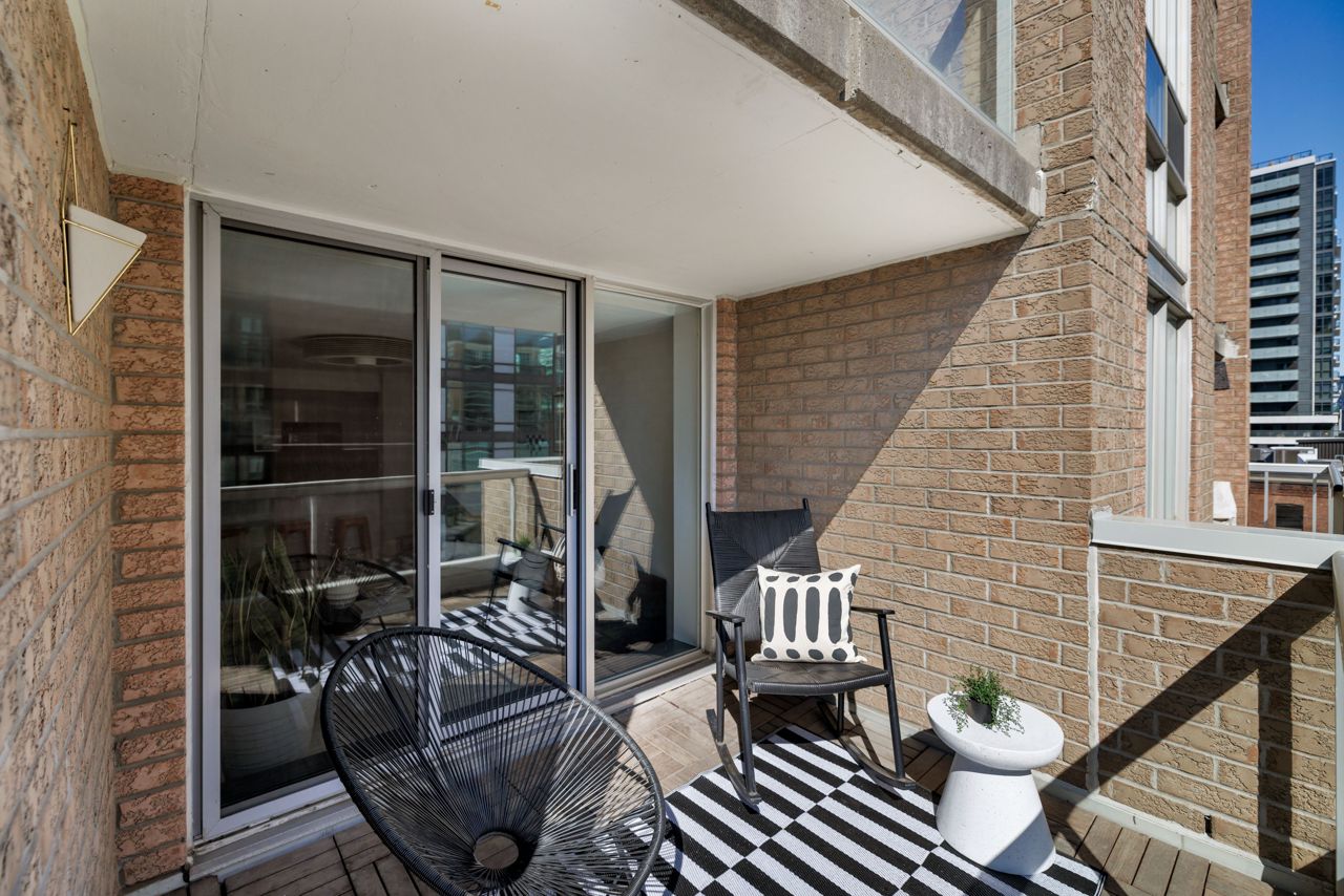 You wake to the soft glow of sunlight spilling through the window, the scent of fresh coffee luring you from bed.Stepping out onto your south-facing terrace, warmth wraps around you.The city stretches out below, alive with distant horns, fluttering birds and the low murmur of morning hustle.You take a sip, the rich, bitter warmth coating your tongue as the breeze brushes your skin and carries the mingled scents of concrete, blossoms, and brewing ambition.This is it, can you hear it calling you? Suite 803.With just short of 600sf well thought out living space, you'll never feel cramped in the city. This thoughtfully renovated condo was designed with function, space and light in mind.The primary easily fits a king-sized bed, side tables and a desk if you need.A walk-in closet with organizers and drawers ensures you'll never be searching for your favourite shirt.The expanded washroom features plenty of storage and many lighting choices.In the evening when the sun has gone down, enjoy the many LED lighting options on dimmers for a warm, ambient glow.The large kitchen with an extended breakfast bar, is perfect for cooking, entertaining, or simply working from home.A large pantry next to the bathroom can also double as a linen closet!Energy-Efficient Living is top of mind.Suite 803 is equipped with two Exhale Bladeless Fans for continuous air circulation and temperature efficiency, plus an Ecobee smart monitoring system for climate control, while at home or away.The 129 sqft Terrace was designed for both privacy and relaxation - whilst allowing you to enjoy city views, dining, and even urban farming.Sit outside rain or sunshine as part of the terrace also is covered!Live simply and clutter-free.Upon entry you will find a walk-in storage area and ensuite stacked Laundry (2020). To top it all off,1 underground parking and a storage locker for the excess items.Take me somewhere I can breathe, I've got so much to see.This is where I want to be. In a place I can call mine...
