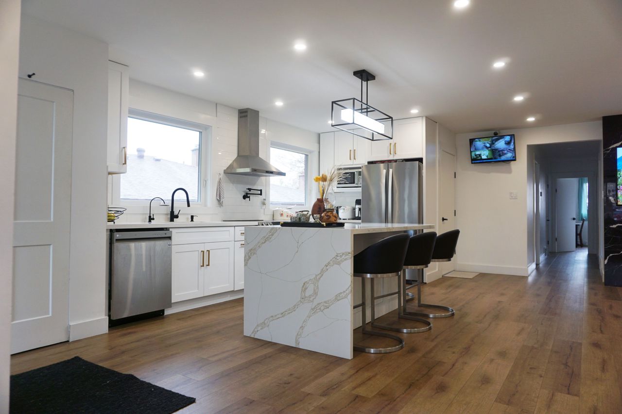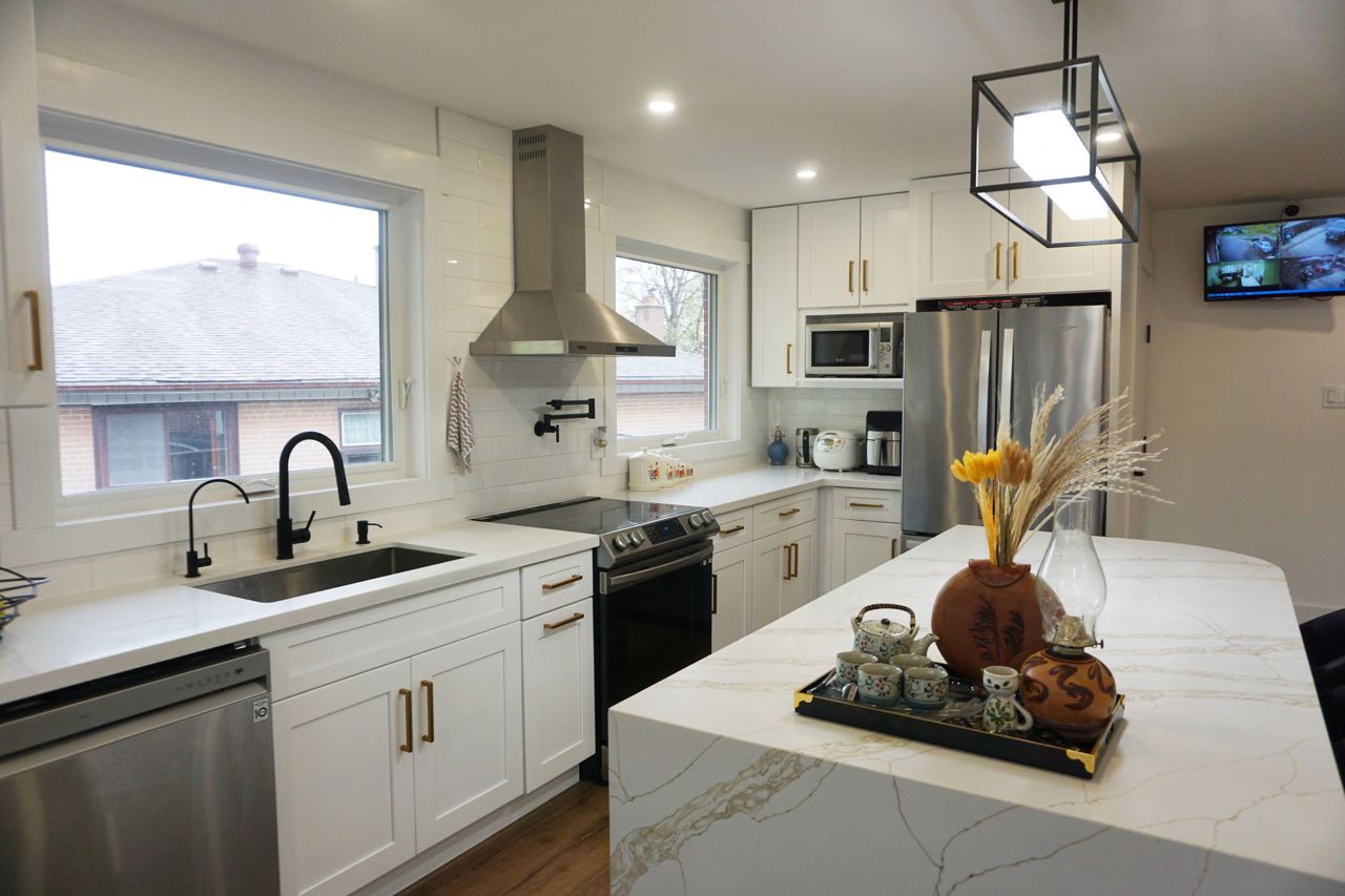 Professional renovated from top to bottom. This sun filled home features 3 bedrooms on main floor & 4 bathrooms. Finished basement apartment with separate entrance & walk-out to backyard. Brand new floors throughout, brand new windows, brand new kitchens with quartz countertops & stainless steel appliances. Furnace(2020), AC(2021), Hot water tank owned(2020). Renovated spa like inspired bathrooms & powder room, electric fireplace, smart thermostat, smart entrance door lock, security camera & more. 4 car parking on the driveway.Main Level ss-Stove, ss-Fridge, B/I Dishwasher, Range Hood; Basement 2 Stoves & 2 Fridges , Washer And Dryer, ALL Light Fixtures, All window covers, security cameras & smart doorlock.