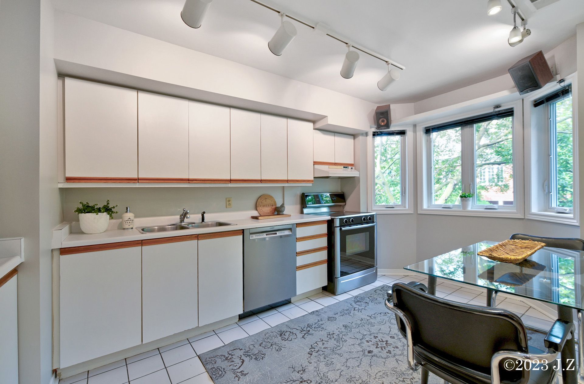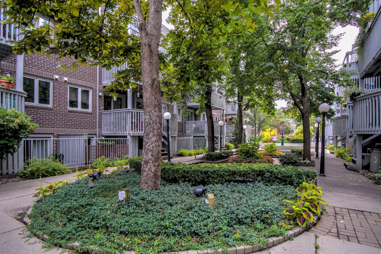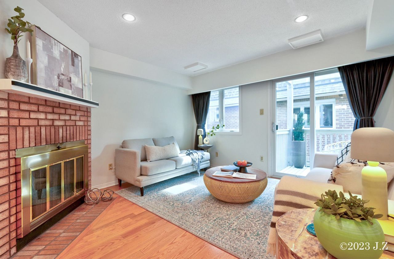 A Rare Opportunity-An Upper Unit In This King/Queen West Community On A Beautiful, Quiet, Tree-Lined Street. 1,310 sqft open-concept townhouse with hardwood floors throughout, a large eat-in kitchen, two walk-out balconies overlooking a private courtyard, living area with a wood-burning fireplace and a separate dining area. Primary bedroom with ensuite bath, built-in custom closets and two more closets for additional storage. Just minutes away from Queen/King TTC streetcars. Bonus – comes with locker and underground parking spot.HIGH EFF. HVAC (2018), BOSCH DISHWASHER, BOSCH STOVE, REFRIDGERATOR, ELECTROLUX WASHER & DRYER, ALL ELF'S & ALL WINDOW COVERINGS. Built in speakers in kitchen.