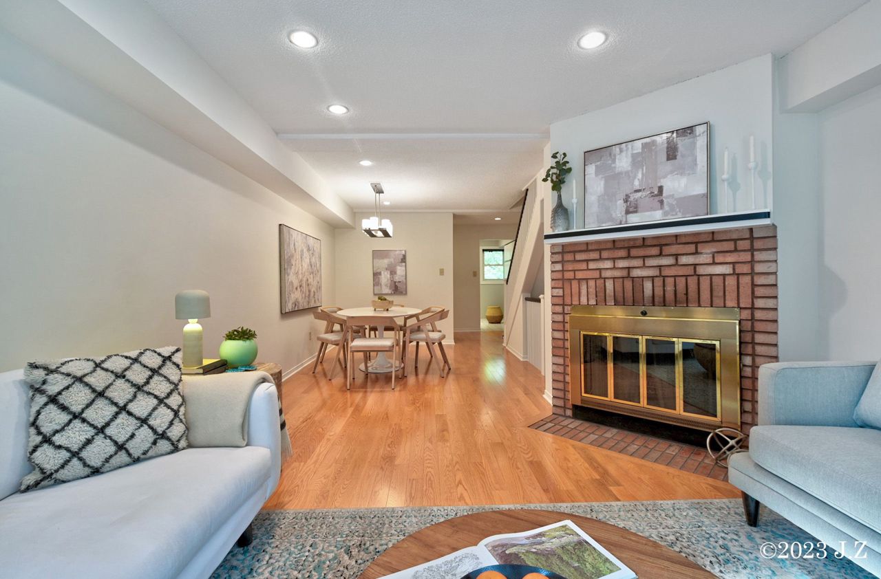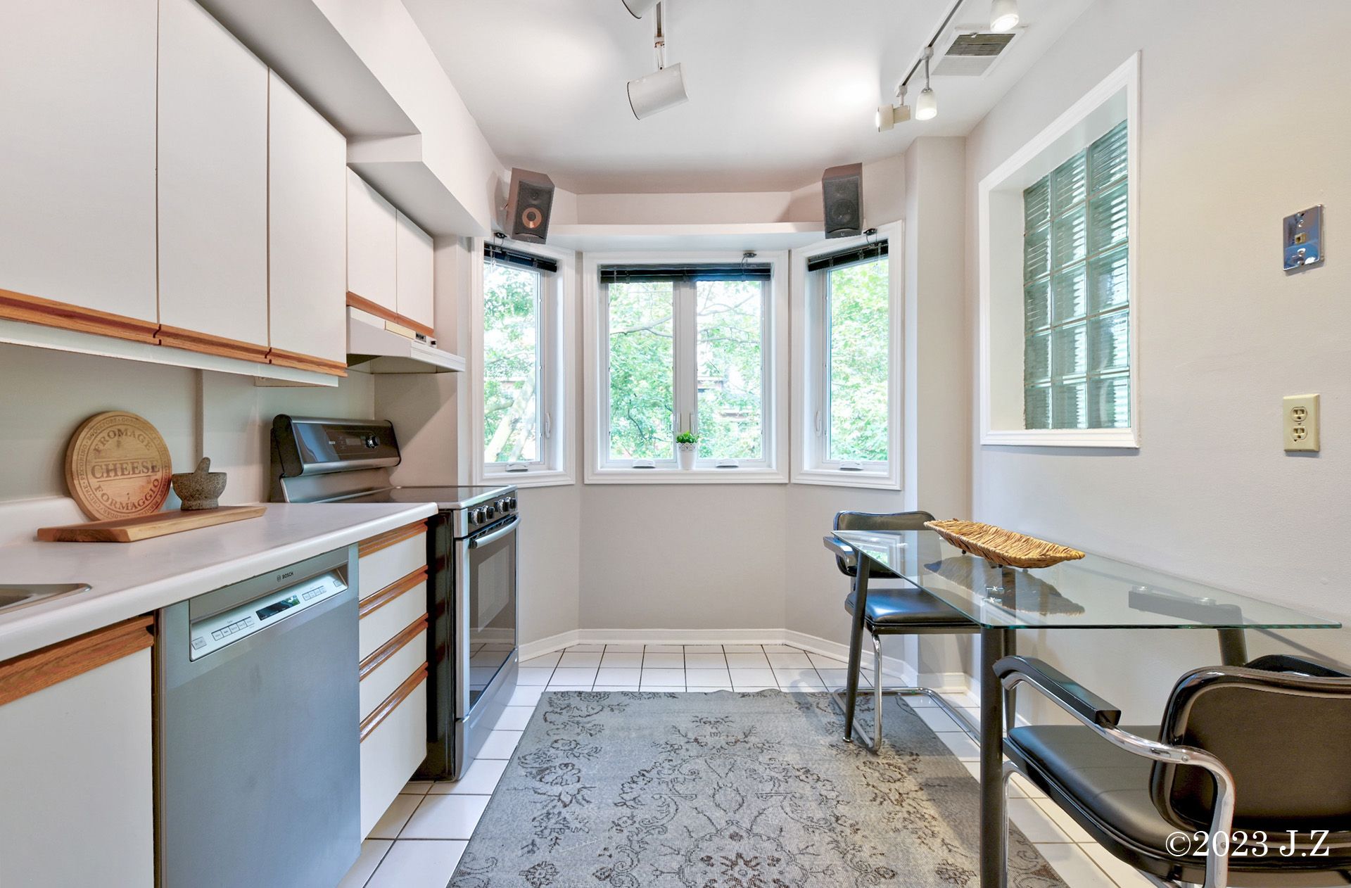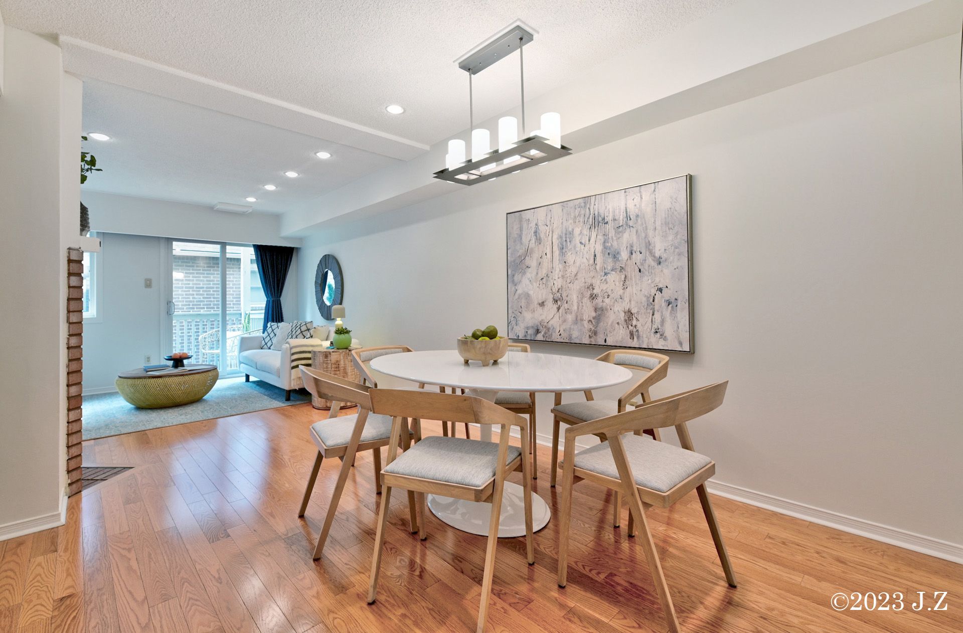 A Rare Opportunity-An Upper Unit In This King/Queen West Community On A Beautiful, Quiet, Tree-Lined Street. 1,310 sqft open-concept townhouse with hardwood floors throughout, a large eat-in kitchen, two walk-out balconies overlooking a private courtyard, living area with a wood-burning fireplace and a separate dining area. Primary bedroom with ensuite bath, built-in custom closets and two more closets for additional storage. Just minutes away from Queen/King TTC streetcars. Bonus – comes with locker and underground parking spot.HIGH EFF. HVAC (2018), BOSCH DISHWASHER, BOSCH STOVE, REFRIDGERATOR, ELECTROLUX WASHER & DRYER, ALL ELF'S & ALL WINDOW COVERINGS. Built in speakers in kitchen.