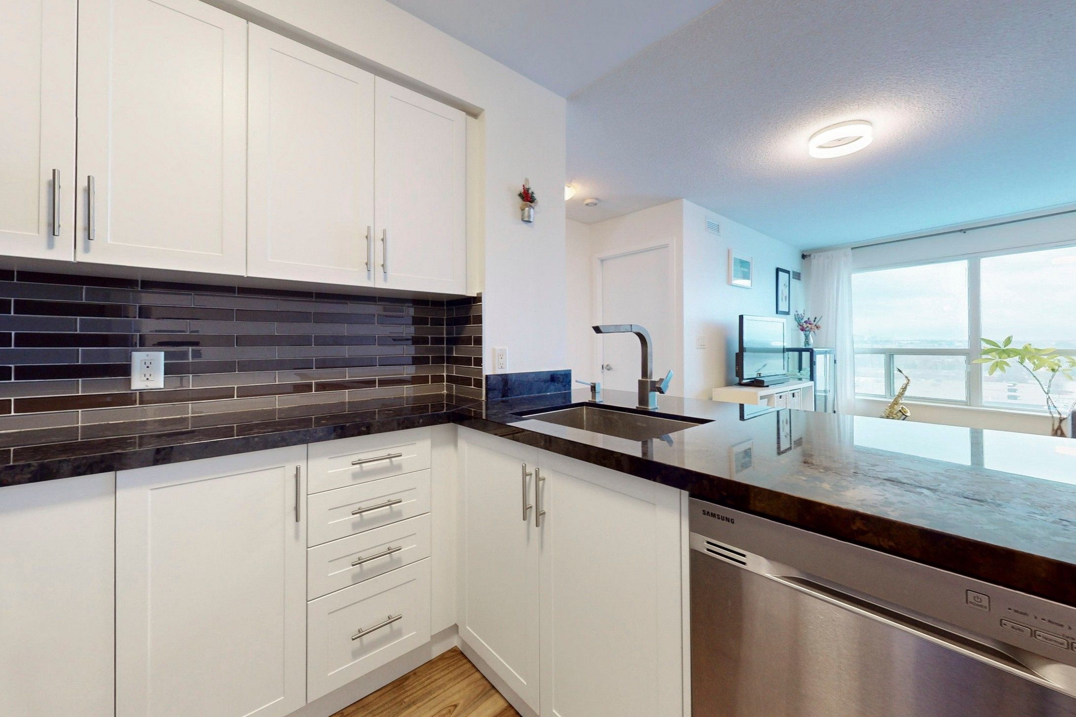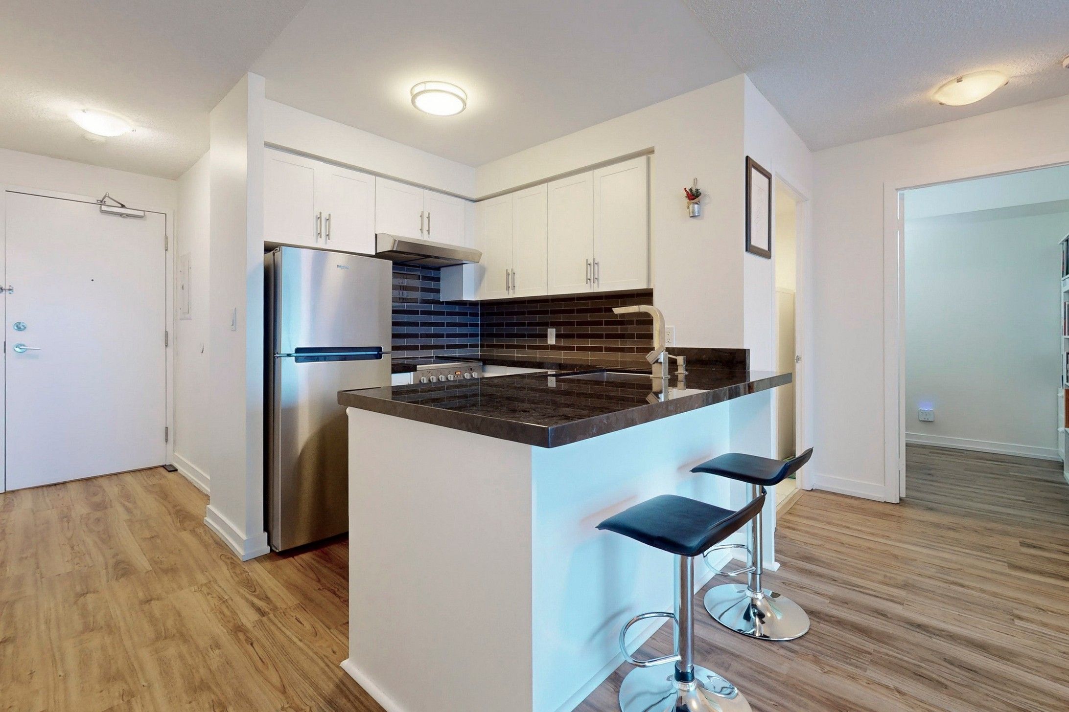 Must see this beautiful well maintained condo ! Fully renovated kitchen with high end granite counter top (Antique brown) , back splash, cabinets, stainless steel appliances , newer laminate quality floor . Absolutely move in condition . This Unit comes with 1 parking spot and 1 extra large size locker (5'x3'6") , conveniently located at the ground level. Amazing amenities like Gym , swimming pool , party room . Welcoming Lobby , concierge service 24 hrs . Perfect Location , close to bus stop , hwy 401 , scarborough town centre and schools . Beautiful park in front of the building. living room and bedroom furniture has been removed .S/S Fridge , Stove , Dishwasher , Exhaust hood , Washer & Dryer (white). All Electrical Light fixtures , all window coverings.