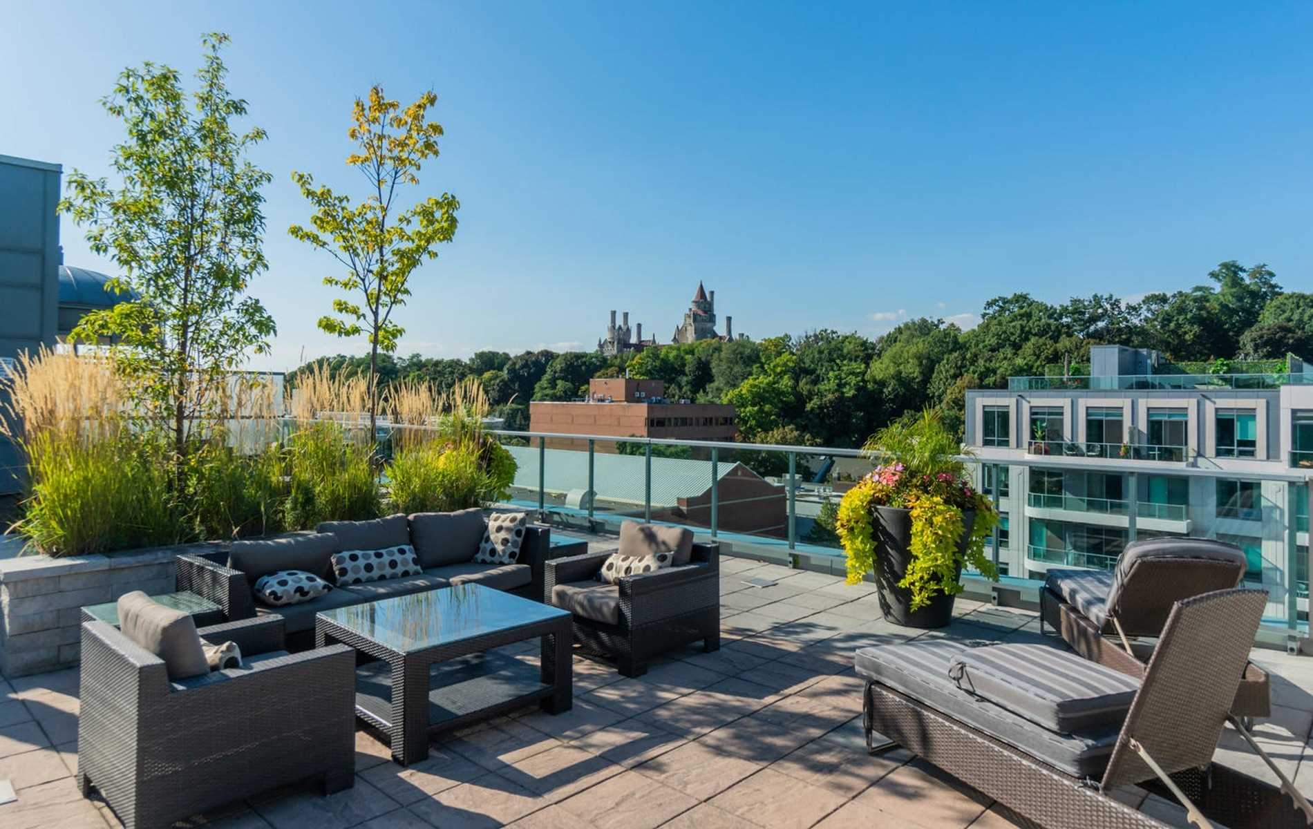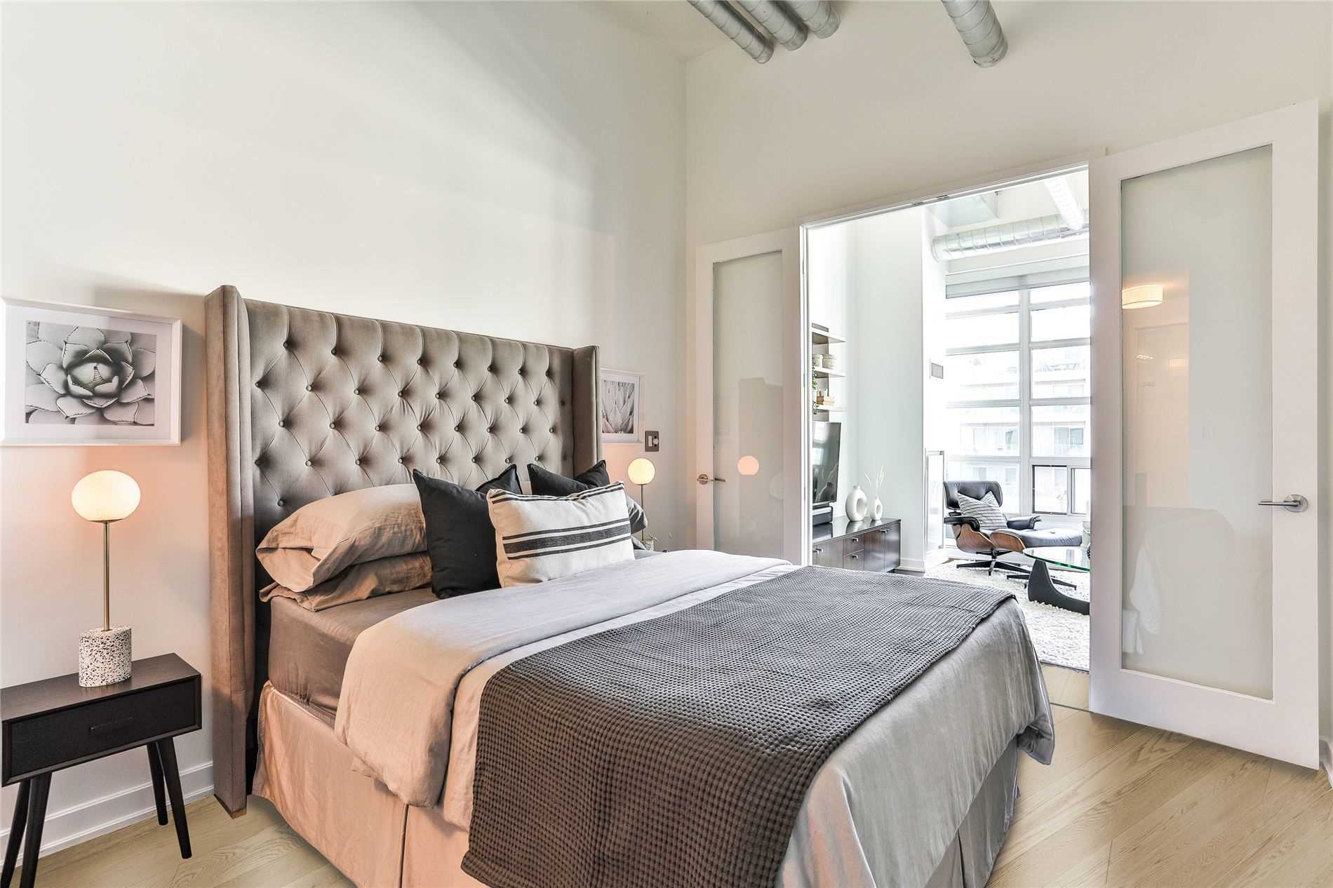Large Split 2 Bdrm 2 Bth In The Highly Coveted Art Deco Madison Lofts. Smart Flr Plan W/No Wasted Space. Highest Ceilings In Bld, Exposed Duct Work,French Doors & 2 W/I Closets. Sunsets, Castle & Tree Views Frm The Terrace & Tons Of Light Pouring Into This Huge Space Through Massive Floor To Ceiling Windows Make This Place Special. Freshly Painted W/New Kitchen, Fabulous Amenities & Short Walk To Ttc, Parks, Grocery, Retail, Cafes. This Location Has It All! All Elfs, Hunter Douglas Blinds, All Existing Appliances (New Ss Stove, New Ss Microvent, New Ss Fridge, Intergraded Dishwasher, Stacked Washer & Dryer), Media Center W/Shelving, All Closet Organizers.