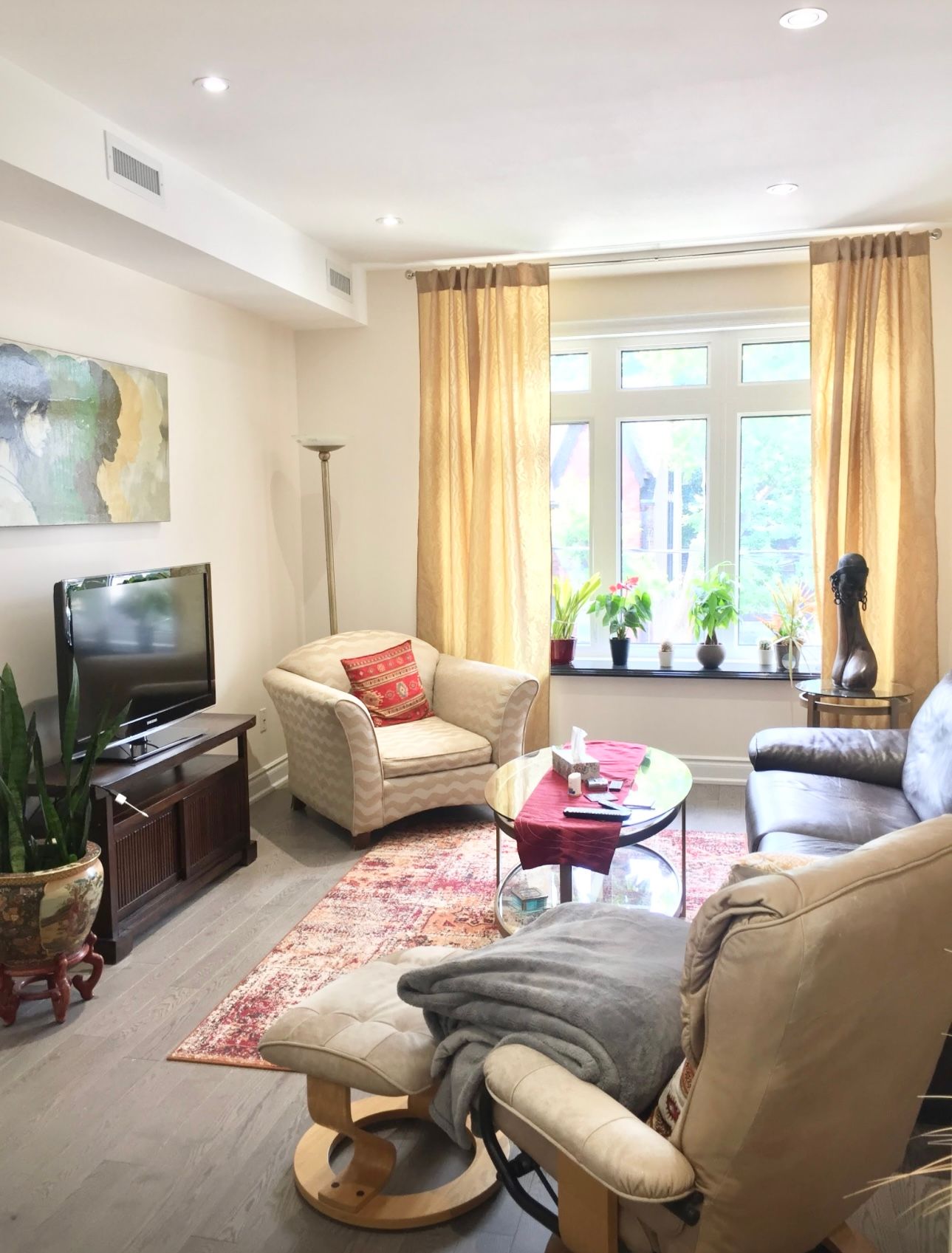 Located In DowntownToronto, "Cabbagetown Neighbourhood”, 2 Full size Bedrooms, Luxury 6-pc bath. 4-Yr New 4plex building, Luxury, Spacious & Bright, Open concept Living/Dining/Kitchen. Spacious Primary Bdrm with walk-in Closet. Hardwood floor thru-out, Balcony, Abundance of closet space. En-suite laundry room. Luxury Custom Built Kitchen Cabinets, Complimented With Large Kitchen Island, Breakfast Bar. NOTE: ABSOLUTELY NO SMOKER, NO PET.Beautiful Quartz Countertops, 2 Seperate Kitchen Sinks, 2