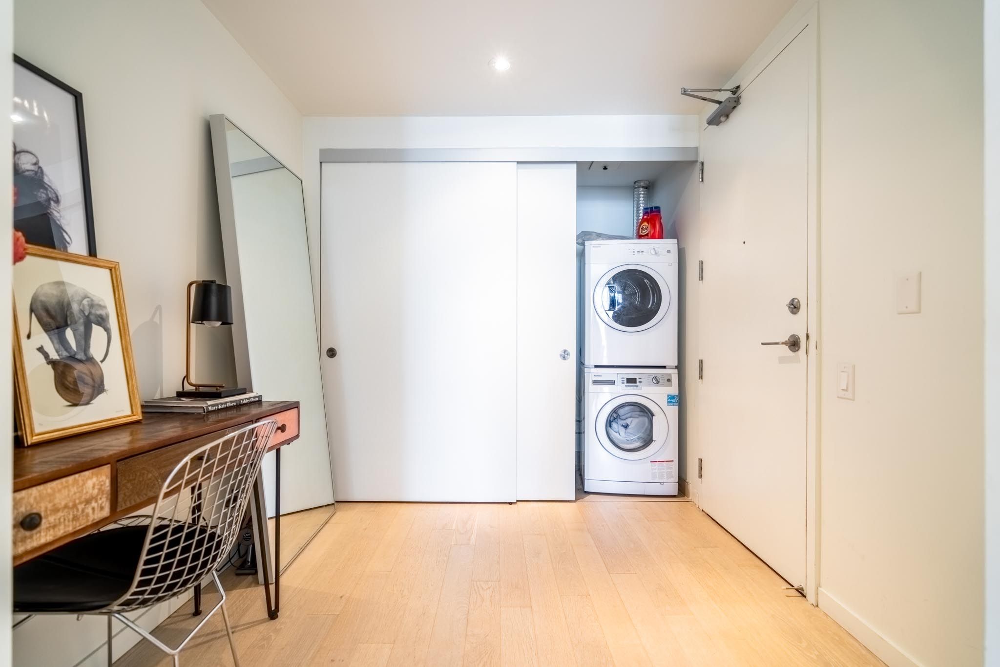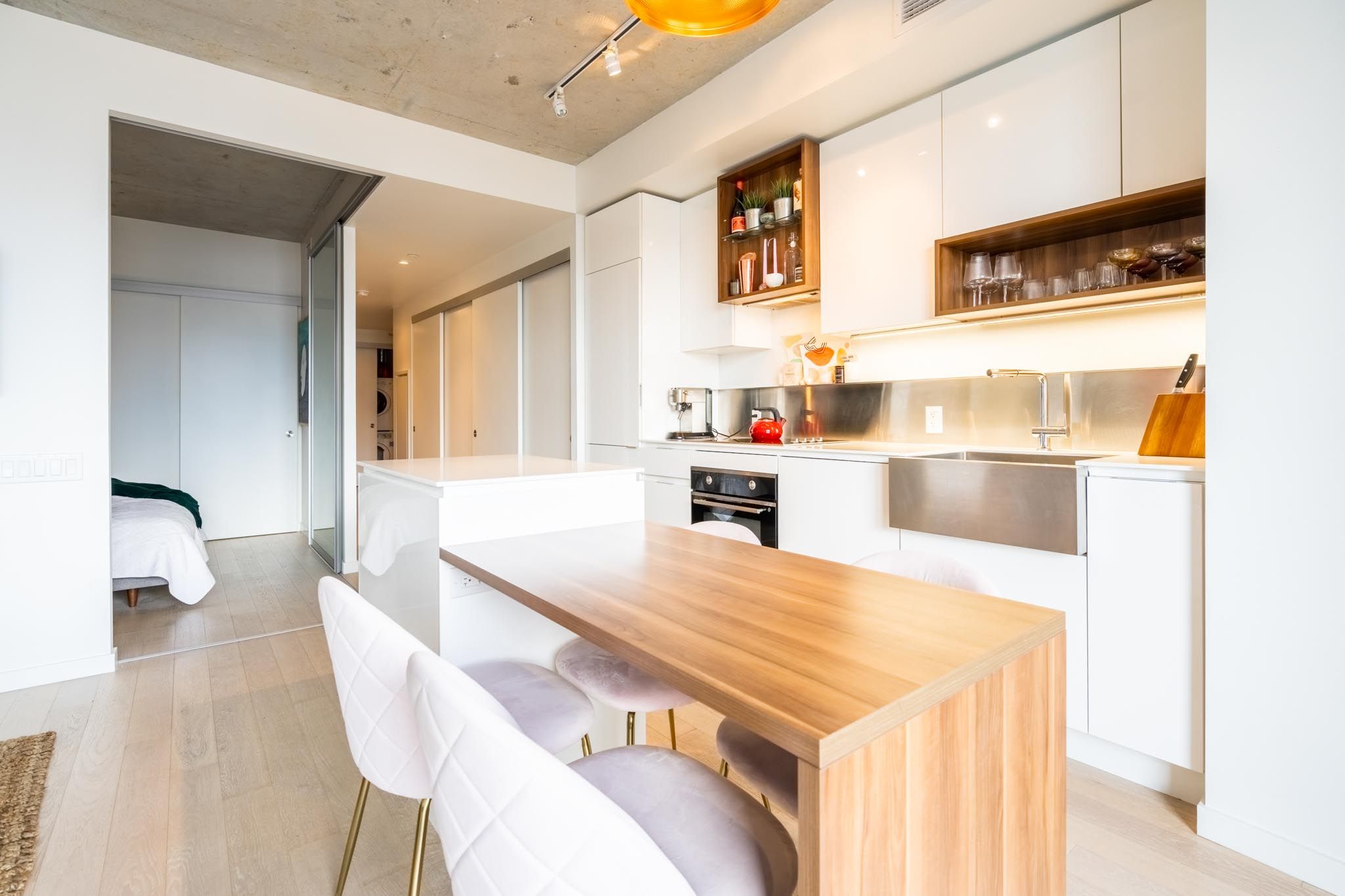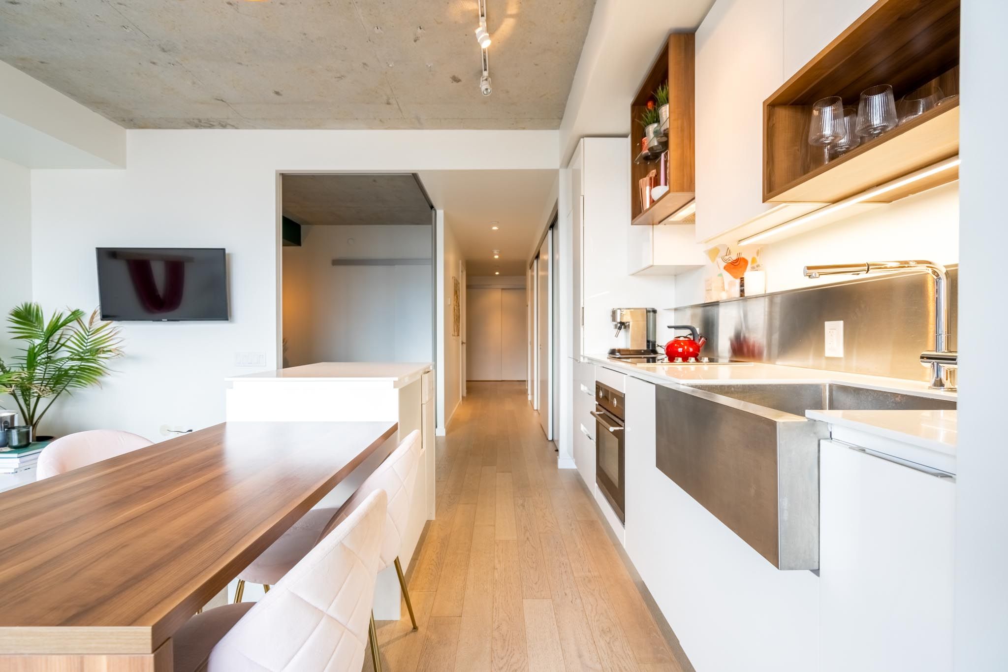 Tired of cookie cutter condos? This well-designed 1 bed + den, 1 bath condo is the home you’ve been looking for! Located in one of the most sought-after boutique buildings, this unit checks all the boxes and then some. Soaring, concrete-exposed ceilings? Check! Sleek, contemporary design? Check! High-end, integrated appliances? Check! Enjoy chic living with many thoughtful upgrades, including custom closets and new paint (2022) throughout. The functional island and dining table create a perfect space for hosting dinner parties, and the oversized and private north-facing balcony is 10/10 for savouring your own oasis. The amenities in this building have been designed to actually be used by residents, with a light-drenched gym and stunning BBQ/patio area at the ready. Enjoy being steps away from Roncesvalles, one of the most vibrant neighbourhoods in the city! Sorauren Park, MOCA, Rail Path, transit, restaurants, boutique shopping, coffee shops and more are literally outside your door.RSA
