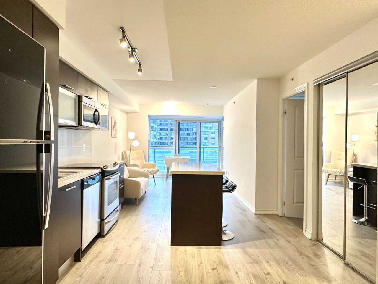 Yonge/Gerrard College Park Luxury Aura Condo * Located In The Heart Of The City * Practical One Bedroom + Den Layout with large Balcony* Brand New Laminated Wood Flooring*West Facing College Park, Waterfall & Rooftop Garden * Large Den As Second Bedroom/Office*Floor to ceiling windows,*Modern Kitchen With Quartz Countertop*Breakfast Island*S/S Appliances*Direct Access To College Subway Station, IKEA, Supermarket*Connect To Indoor Shopping Retail Mall * Steps To 24 Hrs Supermarket & College Park * Close To U Of T, Ryerson, Financial District & Major Hospitals * Fabulous Facilities * Fitness Centre *Access to Higher Ground Health Centre*Stainless Steel (Fridge, Stove, B/I Dishwasher, B/I Microwave), Washer & Dryer, Window Coverings, All Existing Electric Light