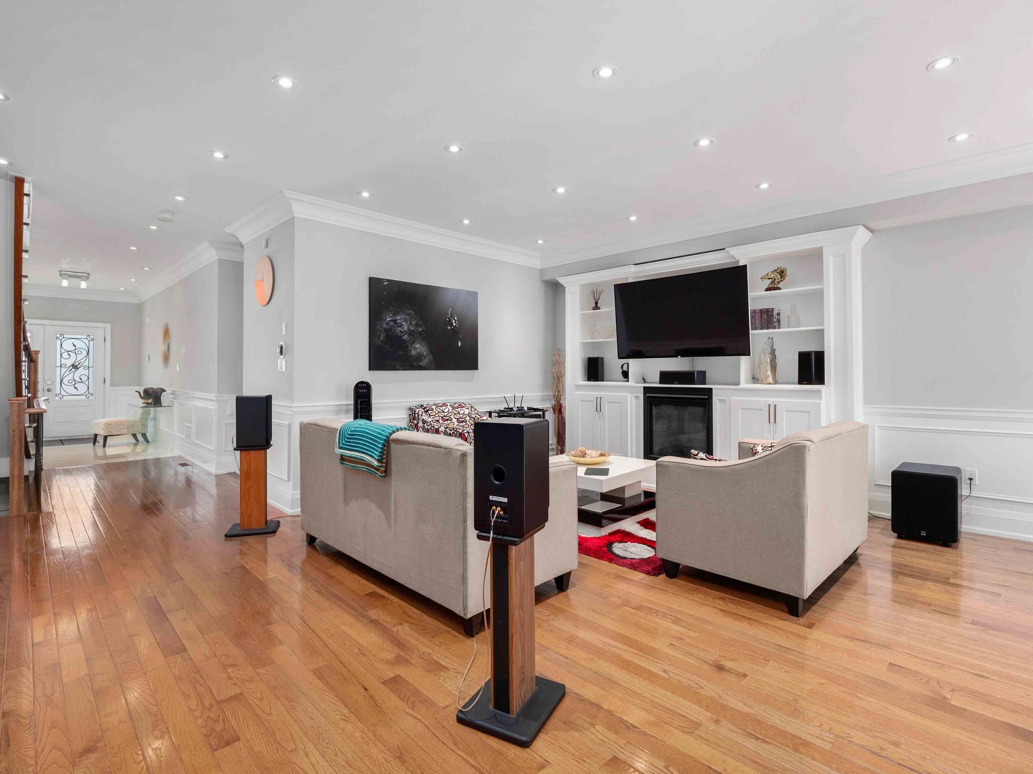 9Ft Ceiling Custom Built Magnificent Architecturally Designed Excellent Modern Bright, Simply Stunning Spacious Home! Big Birght Skylight Over Iron Pickets Staircase, Cozy Open Concept Living/Family Room W/Gas Fireplace, B/I Entertaining Wall Unit Over Looking To Modern Kitchen Cabinet With Granite Counter Top And Breakfast Island S/S Kitchen Aids B/I Appliances, Under Cabinet Lighting . Master Bedroom With B/I Closet With High End Finish Vanity/ Wainscoting, Plaster Molding, Skylight Spa Jacuzzi Plus Frameless Shower Bath. Professional Finish 2 Bedrms Bsmt/Wide Separate Walk-Up R/I Kitchen To Potential Income Basement. Nice Deck With Interlocking Patio Backyard So Convenient Working On Toronto Financial District Easy Access To Subways, Ttc, Close To School, 24Hr Ttc, Library, Shopping Plaza (Buyers And Agent To Be Verified All Inf. Measurements And ...)Jacuzzi, Cvac System, 200Amp Electrical Panel, Lots Of Pot Lights,Central Ac, Kitchen Aid S/S Appliances. Samsung Washer & Dryer. Cook Top Oven, Hot Water Tank Own, Gas Fireplace. Big Wide Walk Up Basement, Shed. Garage Door Opener