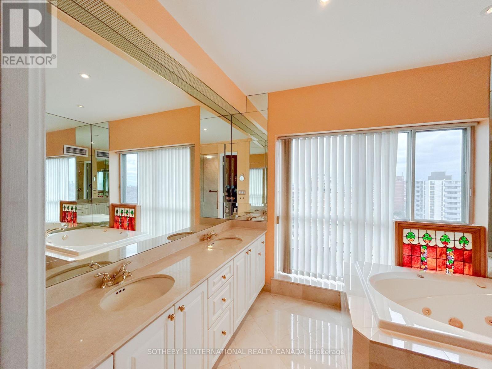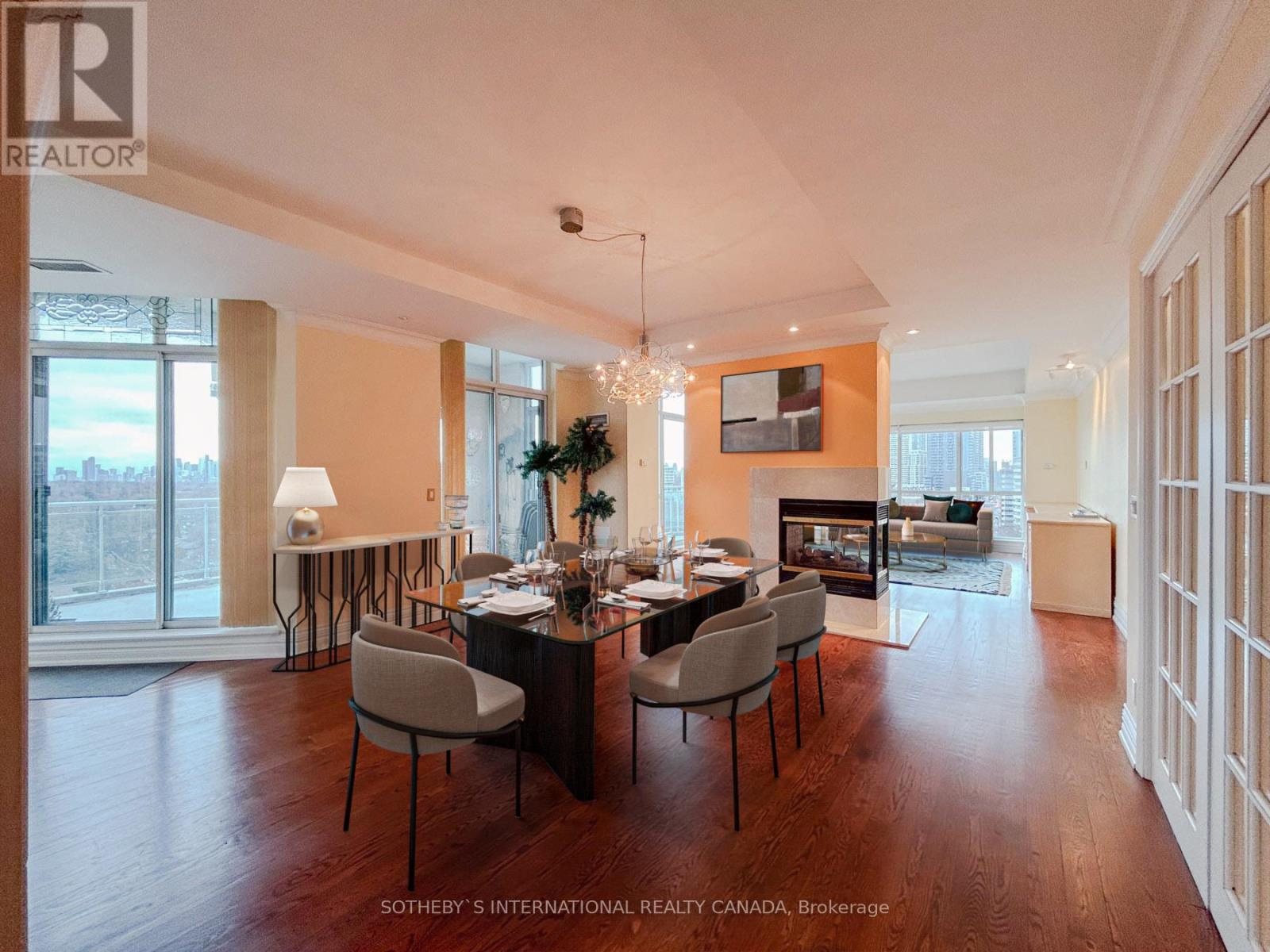 Welcome to your luxurious urban retreat just east of Mount Pleasant and Eglinton! This 2+1 bed condo apartment in a boutique building boasts an expansive 2,342 sq.ft. Unit is total front of building! Step Inside for an abundance of natural light that floods the open-concept living areas w/ 3 sided fireplace and w/soaring coffered 10.6 ft ceilings showcasing the breathtaking south-facing unobstructed views of the city skyline. This unique unit is the result of combining two separate units, resulting in grand space. The highlight of this unit is undoubtedly the massive balcony w/6 walk-outs to from all principal rooms to approx 660 sqft., providing an exceptional outdoor space for entertaining guests. 2 rooms have East exposure and 2 rooms w/ west views. Primary bedrm boasts a room size closet and oversized whirlpool tub in the ensuite. Convenience is key, with proximity to Mt.Pleasant & Eglinton, surrounded by a vibrant community, with easy access to shops, restaurants, & parks.**** EXTRAS **** Includes 2 double size storage lockers and 2 parking spaces! (id:22211)