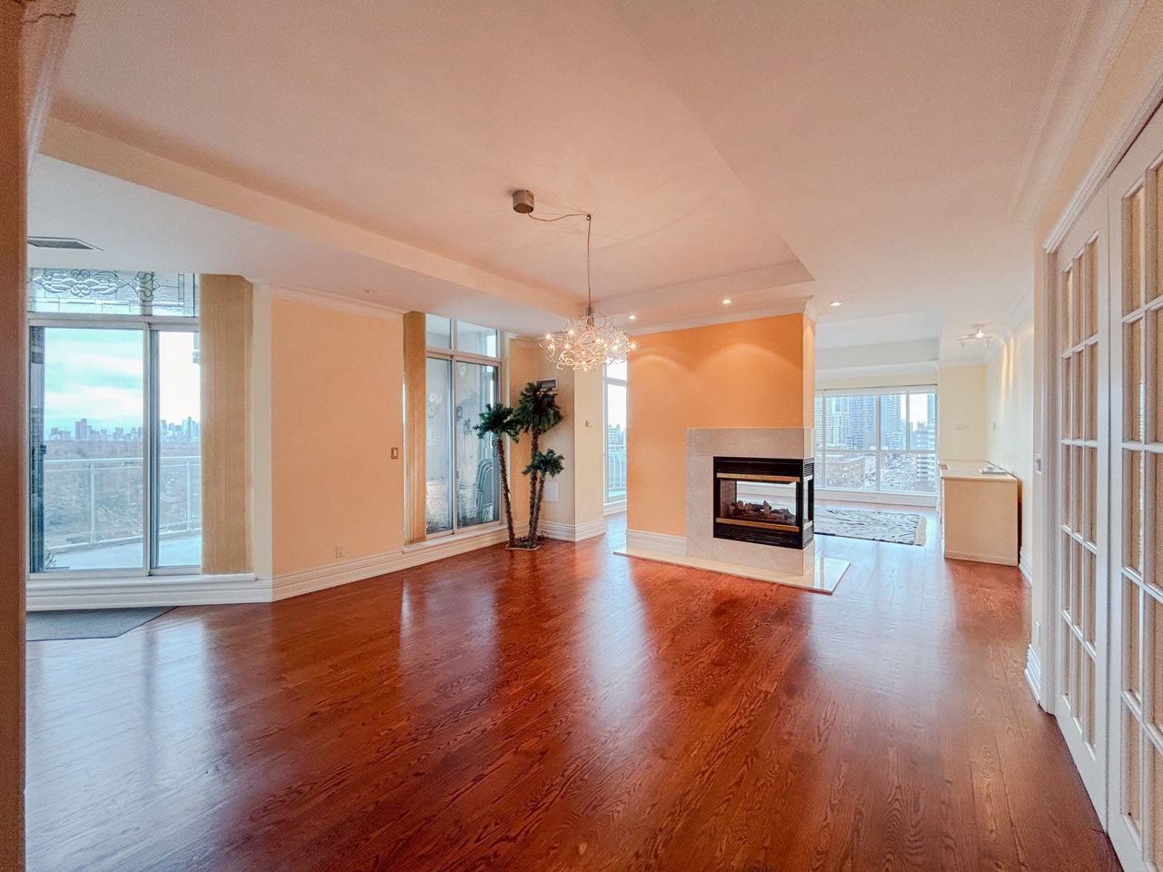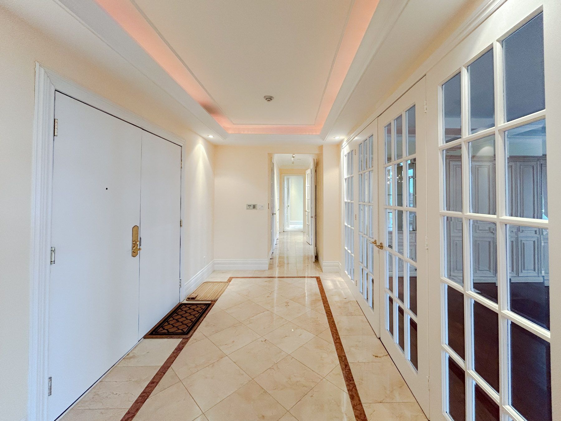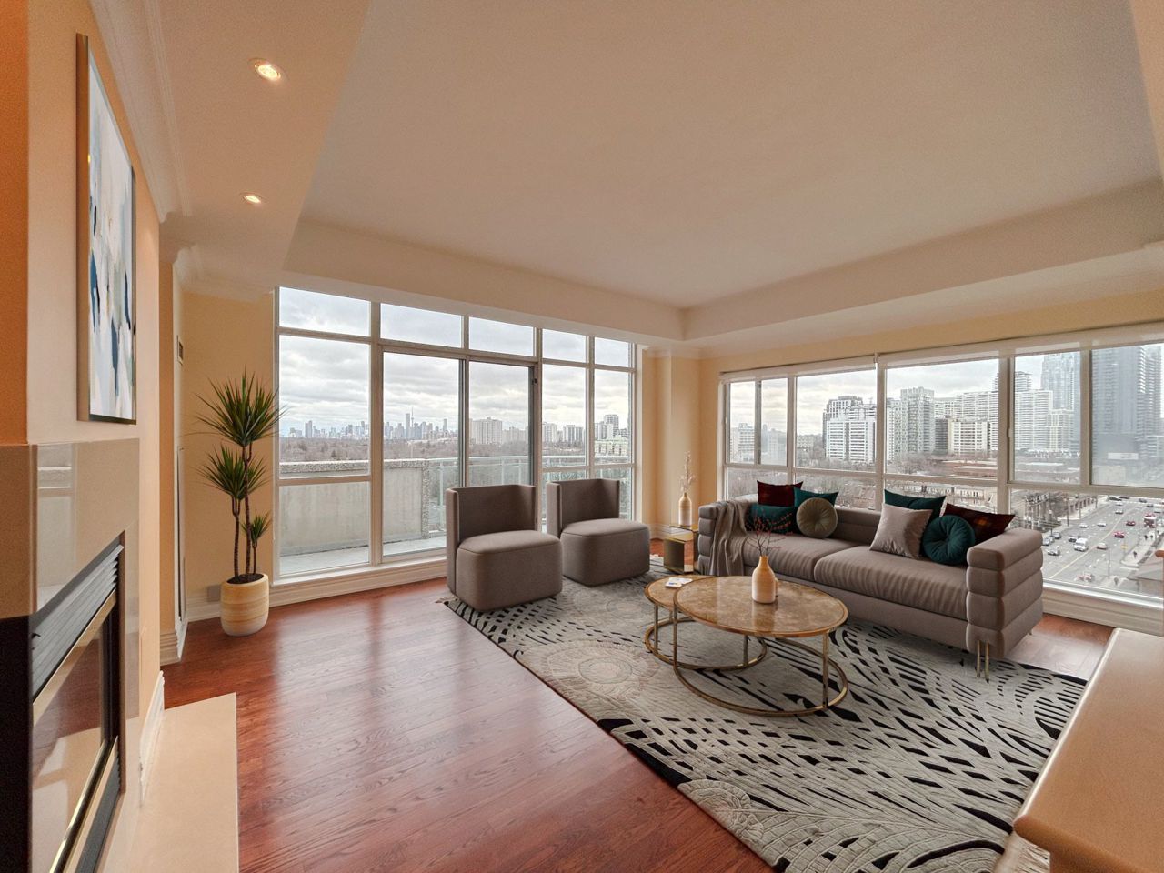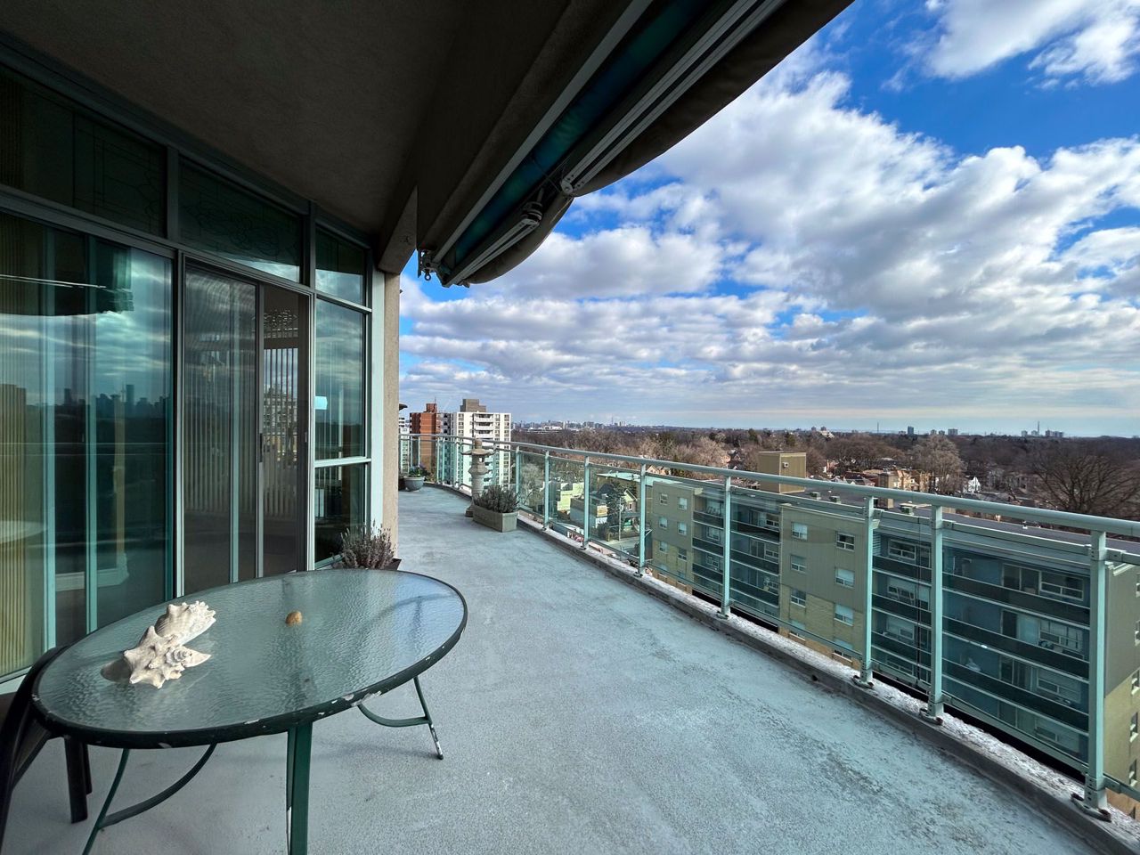 Welcome to your luxurious urban retreat just east of Mount Pleasant and Eglinton! This 2+1 bed condo apartment in a boutique building boasts an expansive 2,342 sq.ft. Unit is total front of building! Step Inside for an abundance of natural light that floods the open-concept living areas w/ 3 sided fireplace and w/soaring coffered 10.6 ft ceilings showcasing the breathtaking south-facing unobstructed views of the city skyline. This unique unit is the result of combining two separate units, resulting in grand space. The highlight of this unit is undoubtedly the massive balcony w/6 walk-outs to from all principal rooms to approx 660 sqft., providing an exceptional outdoor space for entertaining guests. 2 rooms have East exposure and 2 rooms w/ west views. Primary bedrm boasts a room size closet and oversized whirlpool tub in the ensuite. Convenience is key, with proximity to Mt.Pleasant & Eglinton, surrounded by a vibrant community, with easy access to shops, restaurants, & parks.Includes 2 double size storage lockers and 2 parking spaces!
