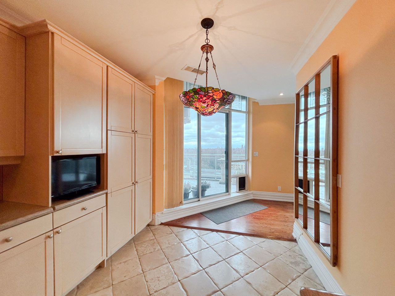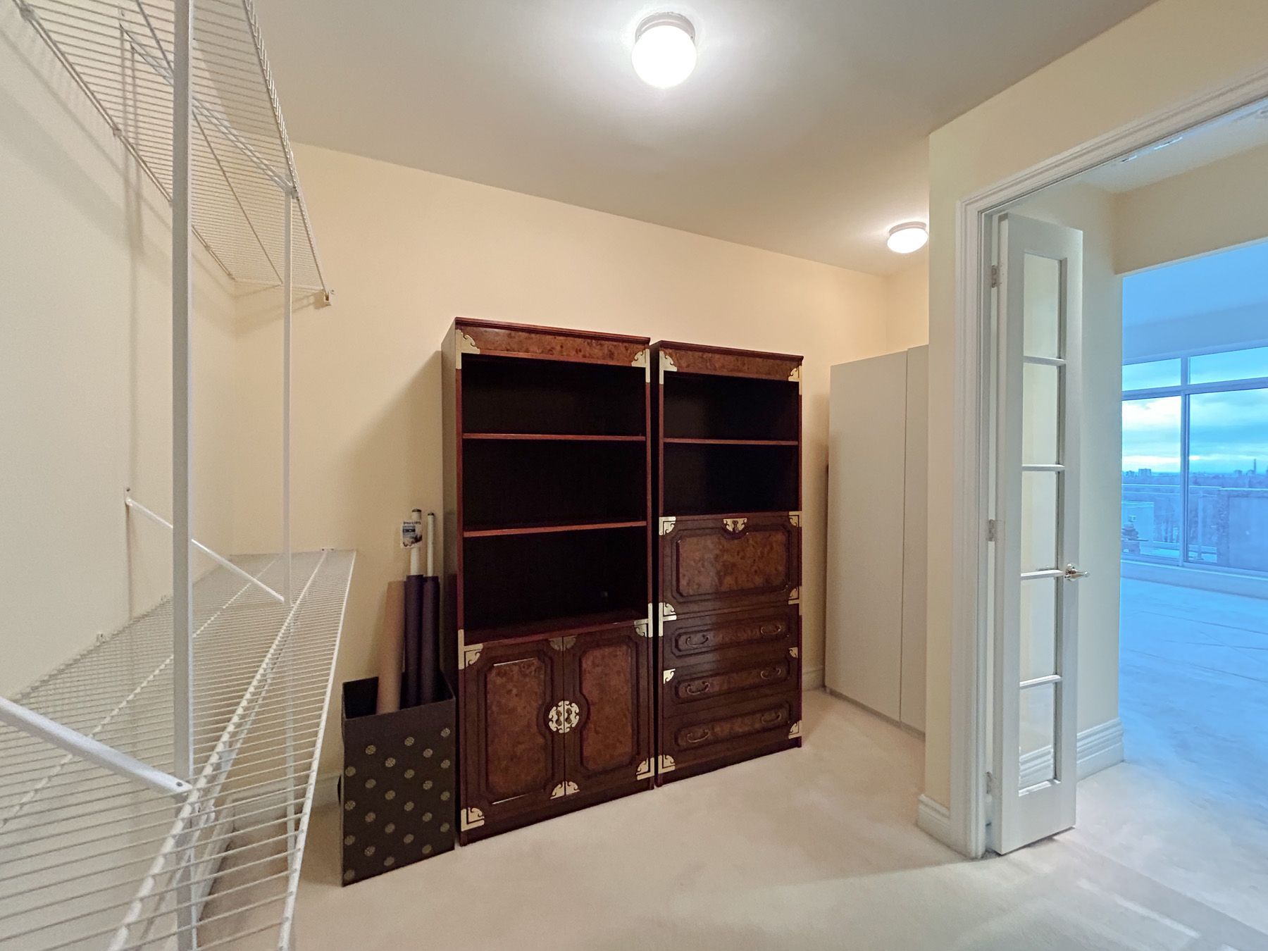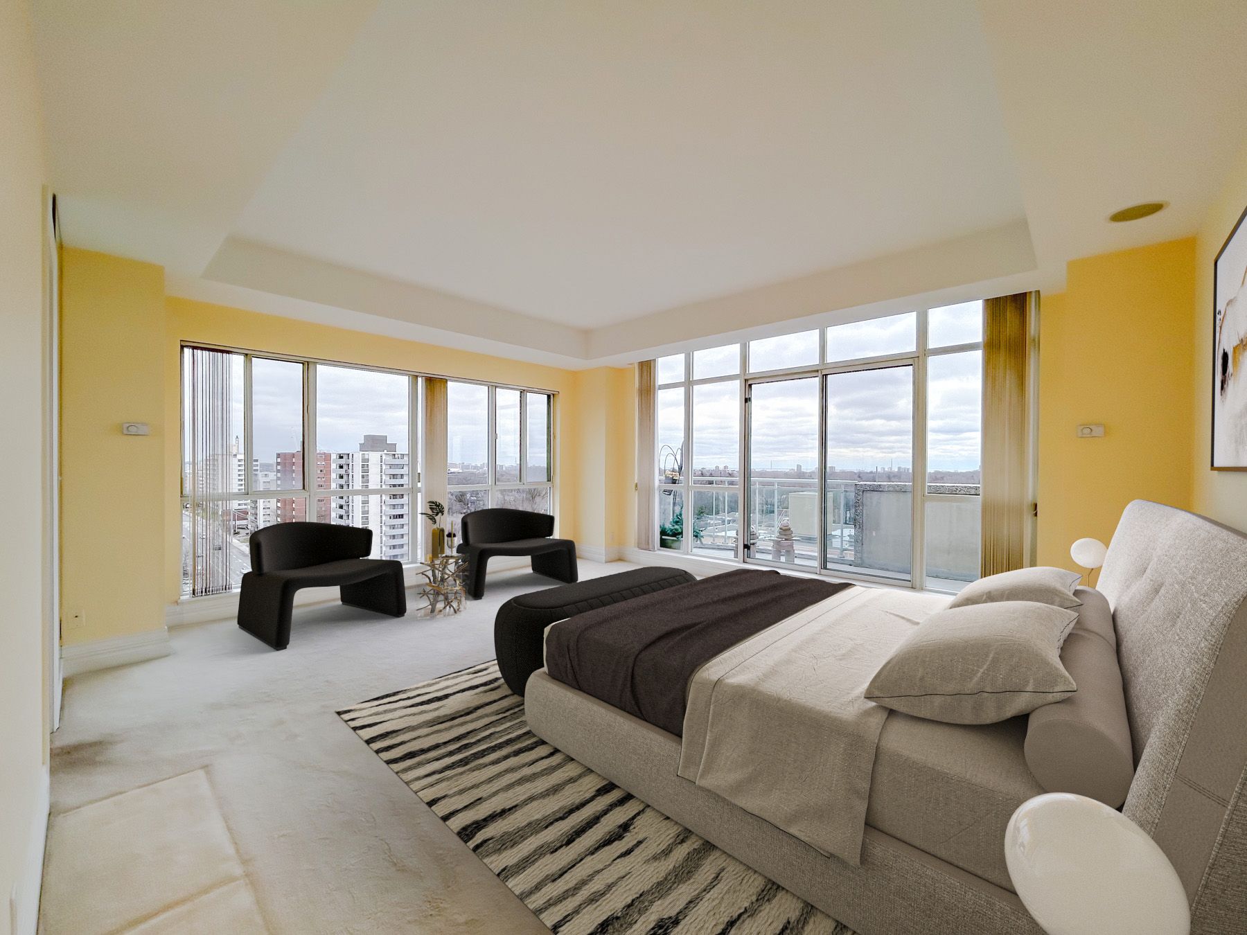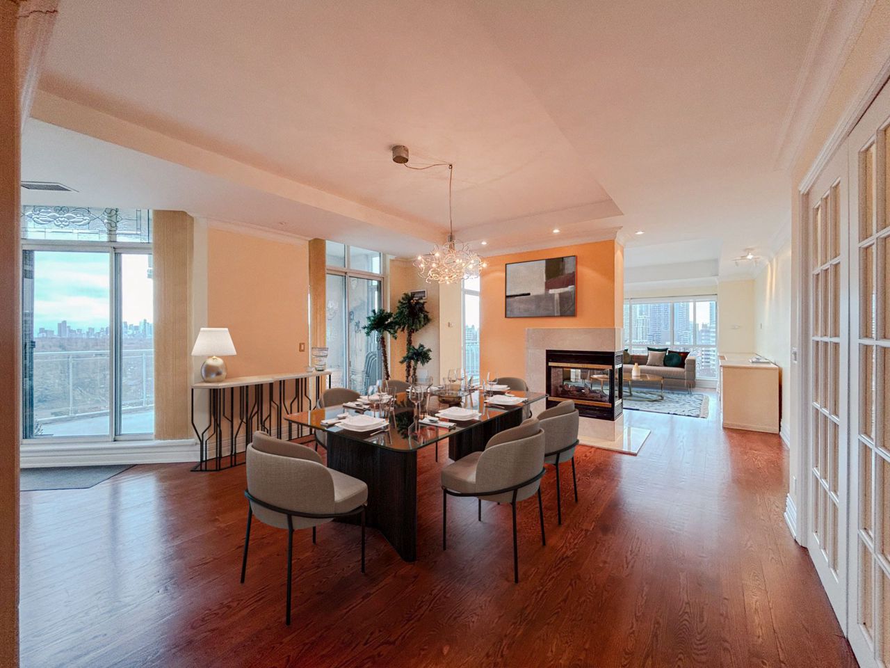 Welcome to your luxurious urban retreat just east of Mount Pleasant and Eglinton! This 2+1 bed condo apartment in a boutique building boasts an expansive 2,342 sq.ft. Unit is total front of building! Step Inside for an abundance of natural light that floods the open-concept living areas w/ 3 sided fireplace and w/soaring coffered 10.6 ft ceilings showcasing the breathtaking south-facing unobstructed views of the city skyline. This unique unit is the result of combining two separate units, resulting in grand space. The highlight of this unit is undoubtedly the massive balcony w/6 walk-outs to from all principal rooms to approx 660 sqft., providing an exceptional outdoor space for entertaining guests. 2 rooms have East exposure and 2 rooms w/ west views. Primary bedrm boasts a room size closet and oversized whirlpool tub in the ensuite. Convenience is key, with proximity to Mt.Pleasant & Eglinton, surrounded by a vibrant community, with easy access to shops, restaurants, & parks.Includes 2 double size storage lockers and 2 parking spaces!