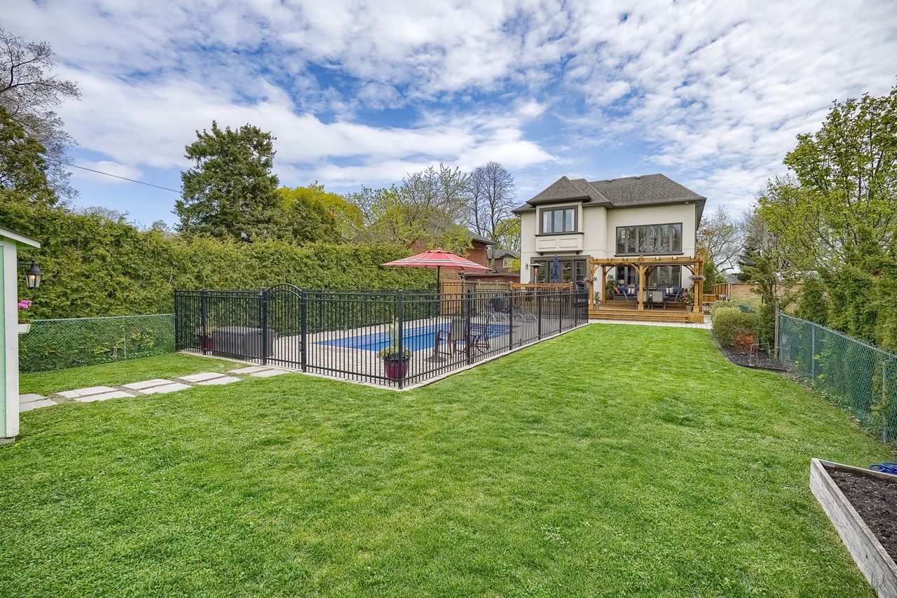 Welcome to your dream family home that is nestled on an oversized property in Sunnylea, one of Toronto's most sought after communities,surrounded by top-rated schools,parks,skating rinks,tennis courts,shops & fine dining.This bright & spacious 2 Storey custom built home personifies luxurious living w/impressive 20’ high ceiling in family rm,coffered ceiling in office,cathedral ceiling in Primary rm,4 skylights & 2 gas fireplaces.This home is filled w/custom high-end finishes such as Indiana limestone façade, exquisite moulding,high Baseboards,finest in granite,ceramic,hardwoods flrs & workmanship detail.The open concept custom gourmet kitchen w/7 Premium B/I appliances,ample of cabinets & large Island is a perfect place for your family & friends to gather.The lush green Entertainer’s dream backyard has a fenced salt water heated pool,4 zone programmable irrigation system,Multi-Tiered Decking,Pergola & shed. Don't miss the opportunity to make this wonderful family home your own!S/S: (6 burner gas cooktop, Double Door Fridge, Oven/Microwave-oven combo, Dishwasher, wine cellar), Front Load Steam Washer & Dryer, All Existing Window Coverings, All Existing Light Fixtures, All Pool Equipment & All surveillance system.
