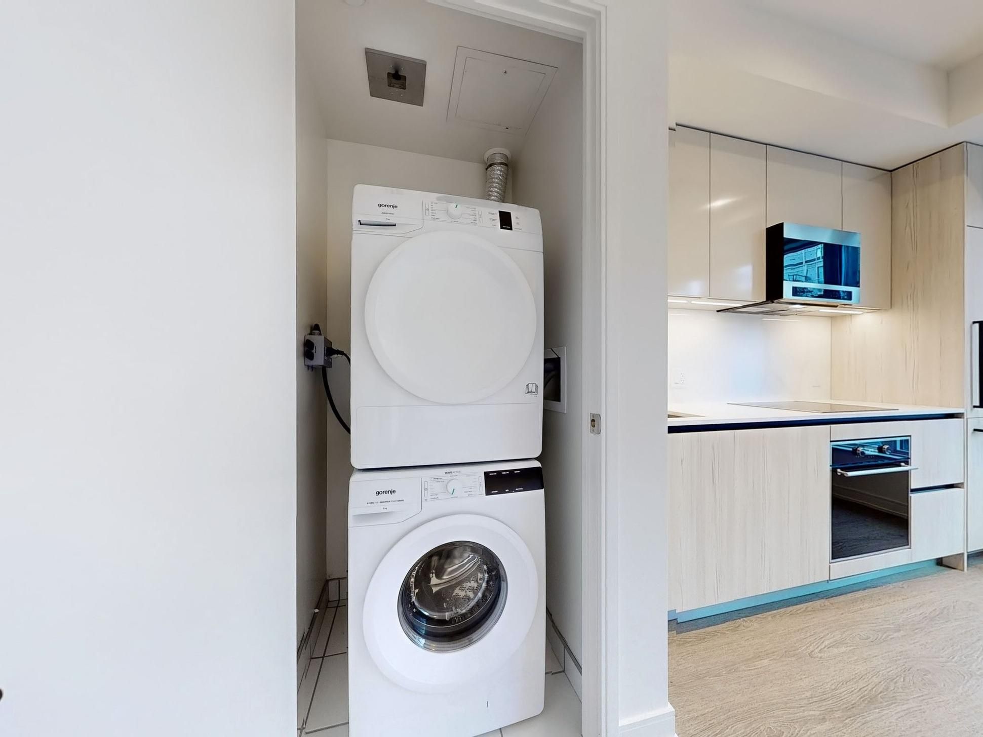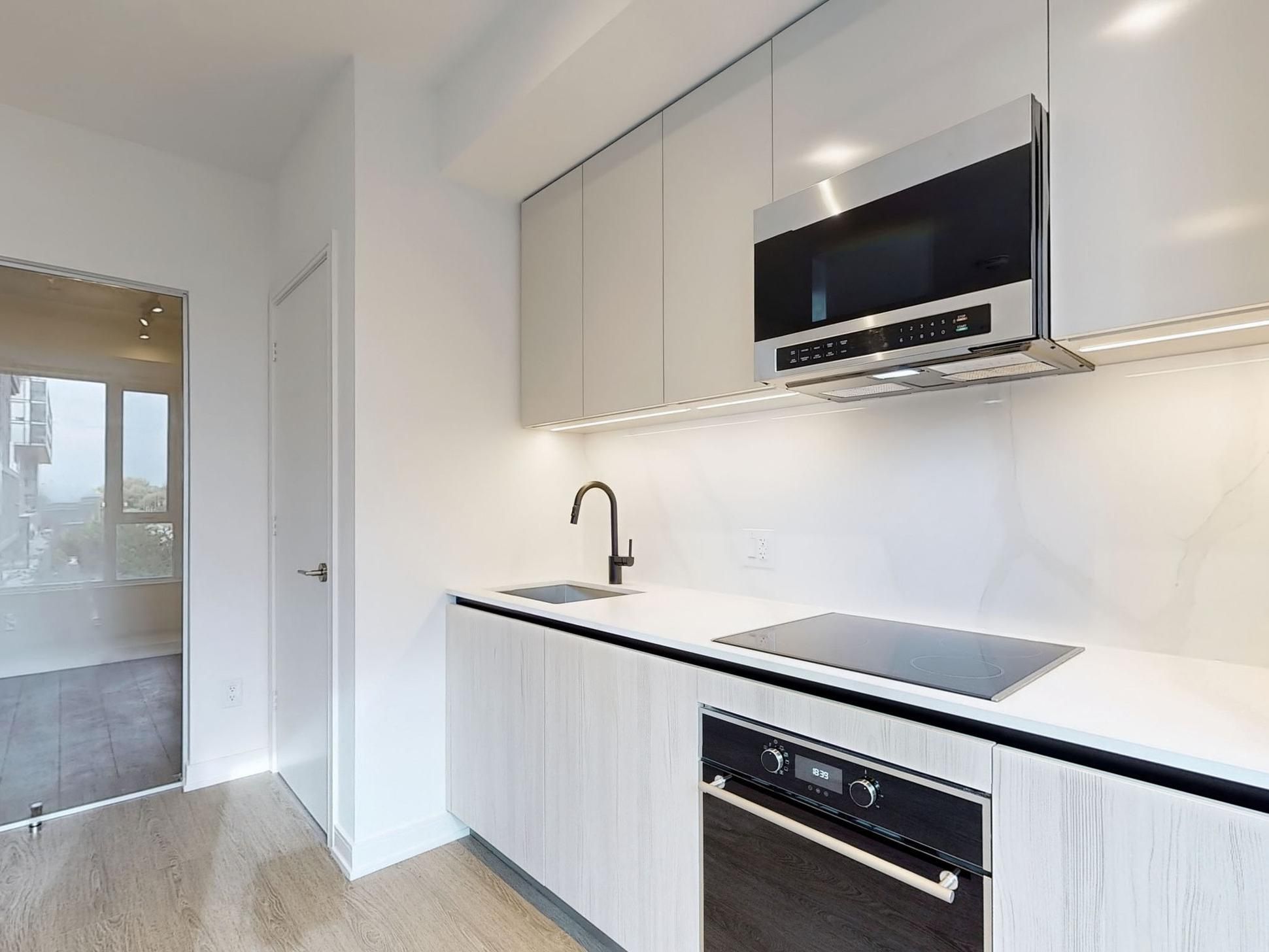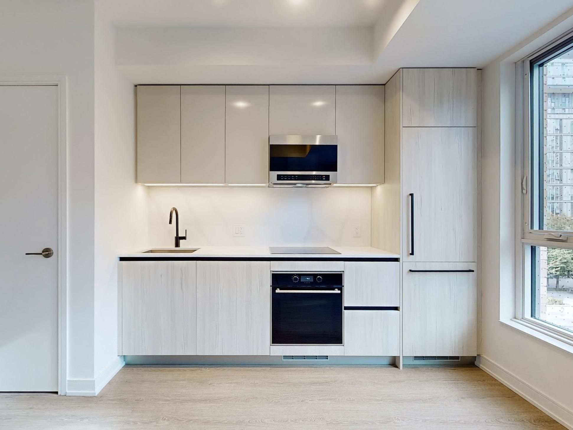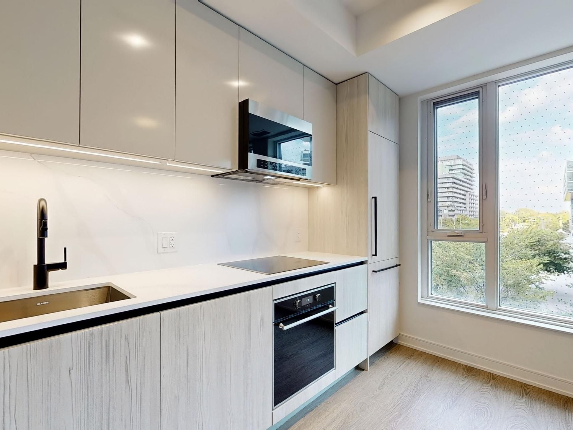 Welcome to your new home in the heart of the vibrant Canary District! This brand new, meticulously designed 1-bedroom, 1-bath condo boasts sleek, modern finishes perfect for the discerning urban dweller. Enjoy the convenience of ensuite laundry with a front-load washer and dryer, and take full advantage of your built-in cooktop, stove, microwave/range combo, and fridge all seamlessly integrated into the kitchen's luxurious backdrop with a striking backsplash. The unit is accented with modern black handles and faucets, plus an adjustable hand-held shower head for an added touch of luxury. But its not just the unit that will impress the location is unbeatable. Just steps away from some of the city's best-kept secrets in fine dininglike Gusto 501, Sukho Thai, and Terroni Sud Forno. Need groceries or a gourmet snack? You've got Wildly Delicious Fine Foods, Aisle 24 Market, and Canary Market right around the corner. Getting around is a breeze with streetcar transit just steps from your door and Union Station a short trip away. Whether you are hitting the Distillery Historic District, enjoying the green space of Corktown Common Park, or making a quick escape via the DVP or Gardiner Expressway, this location has it all. Banking, markets, and more are just a stones throw away this is the ultimate urban lifestyle! Don't miss your chance to lease this spectacular unit.
