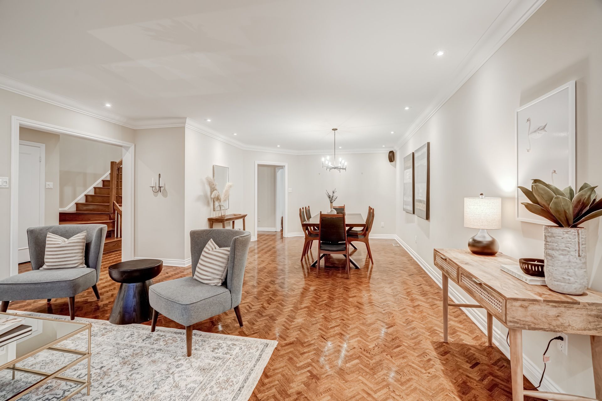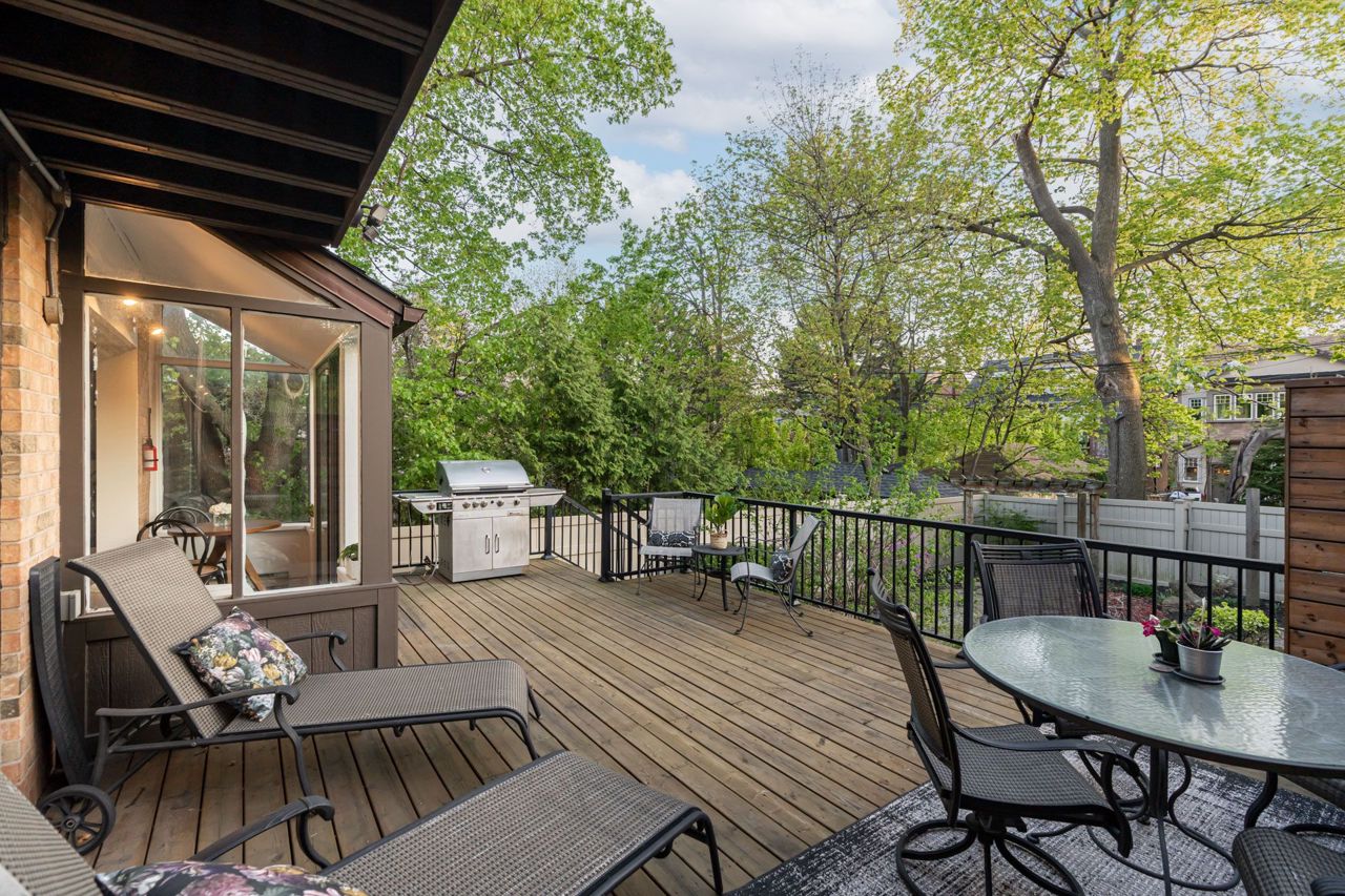 This Custom-Built Home Has Been Carefully Modernized And Extremely Well Maintained Into A Timeless Beauty. It Boasts A Gorgeous Brick Exterior, Coupled W/ Heated Driveway And Professionally Designed Yards. The Interior Layout Is So Thoughtful With Well Appointed Rooms & Elegant Finishings- Herringbone Hardwood, Crown Moulding, Potlights, Soaring Skylights, & More. The Kitchen Is Extremely Large, With Stainless Steel Appliances, An Abundance Of Storage, And A Sit-In Area With A Ton Of Natural Light. Kitchen & Family Rooms Lead To An Almost 500 Sqft Deck That Is Perfect For Entertaining. Primary Room has its own Balcony , with Double Walk-In Closet. Home Also Includes A Few More Rarities For The Neighbourhood: A Secondary Entrance From The Front To The Lower-Level Home Office Or In-Law Suite, As Well As A Wide Garage With Entrance Into The Home.
