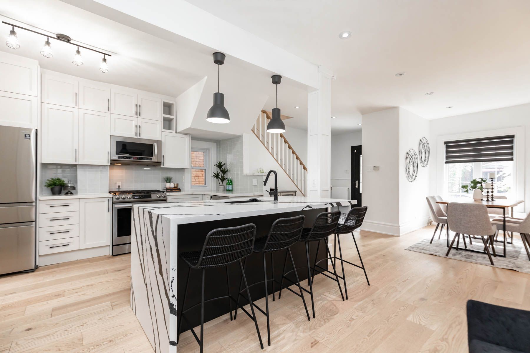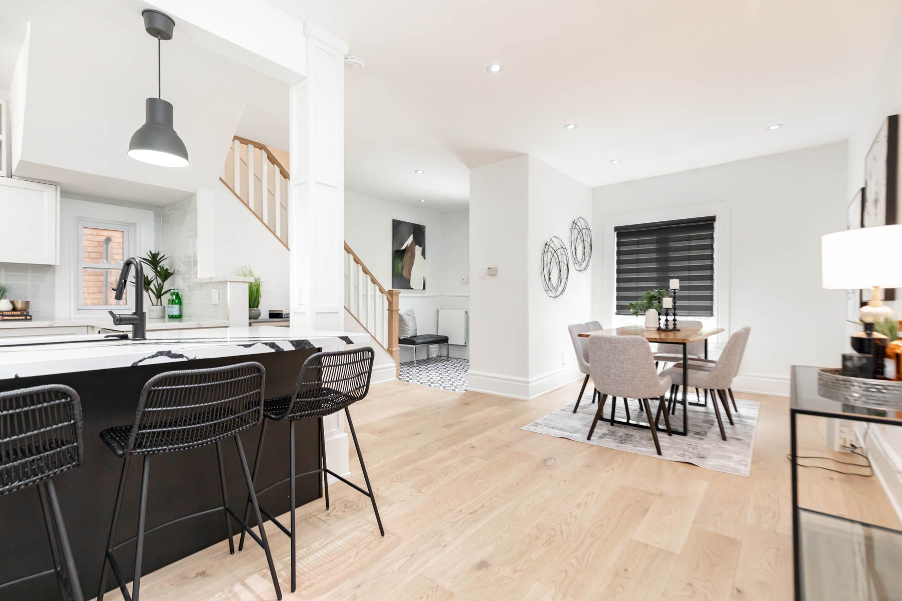 Must See! This is a rare opportunity to own a Detached Solid Brick, 2 1/2 Story Home in Trendy Junction. Local Walk To Dundas Shops, Cafes and Restaurants! Perfect for Entertaining, Growing Kids & Working From Home. Impeccably renovated With high Ceilings, kitchen With Breakfast Bar, Quartz Countertops, Stainless Steel Appliances Fridge 2021, Gas Stove 2021, Roof 2021 Excluding Extension, Newer Windows, New Engineered Hardwood Floors, Freshly Painted. Family Rm with Heated Floors Overlooking A Large Deck AND Impressive 25'X160' Lot. Separate entrance to a well laid out basement with high ceilings, enormous windows and heated flooring. Move-In Ready, Single Family Home. This House Can Generate Significant Income And Be Your Principal Residence.Existing S/S Fridge, 5 Burner Gas Stove, Bosch Dishwasher, Microwave Fan, Washer and Dryer, Also Basement Stove, Fridge, Dishwasher, Microwave, Washer and Dryer