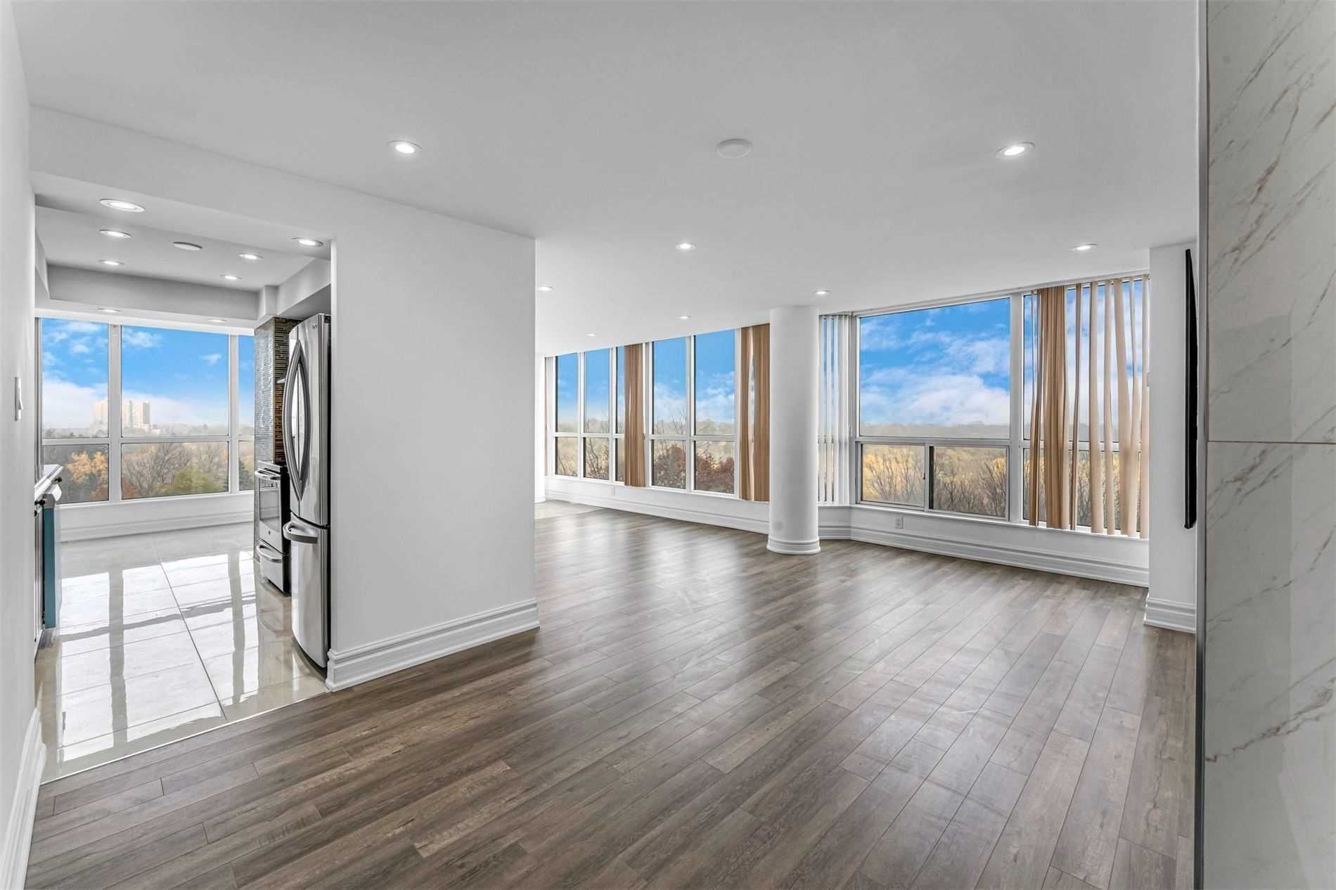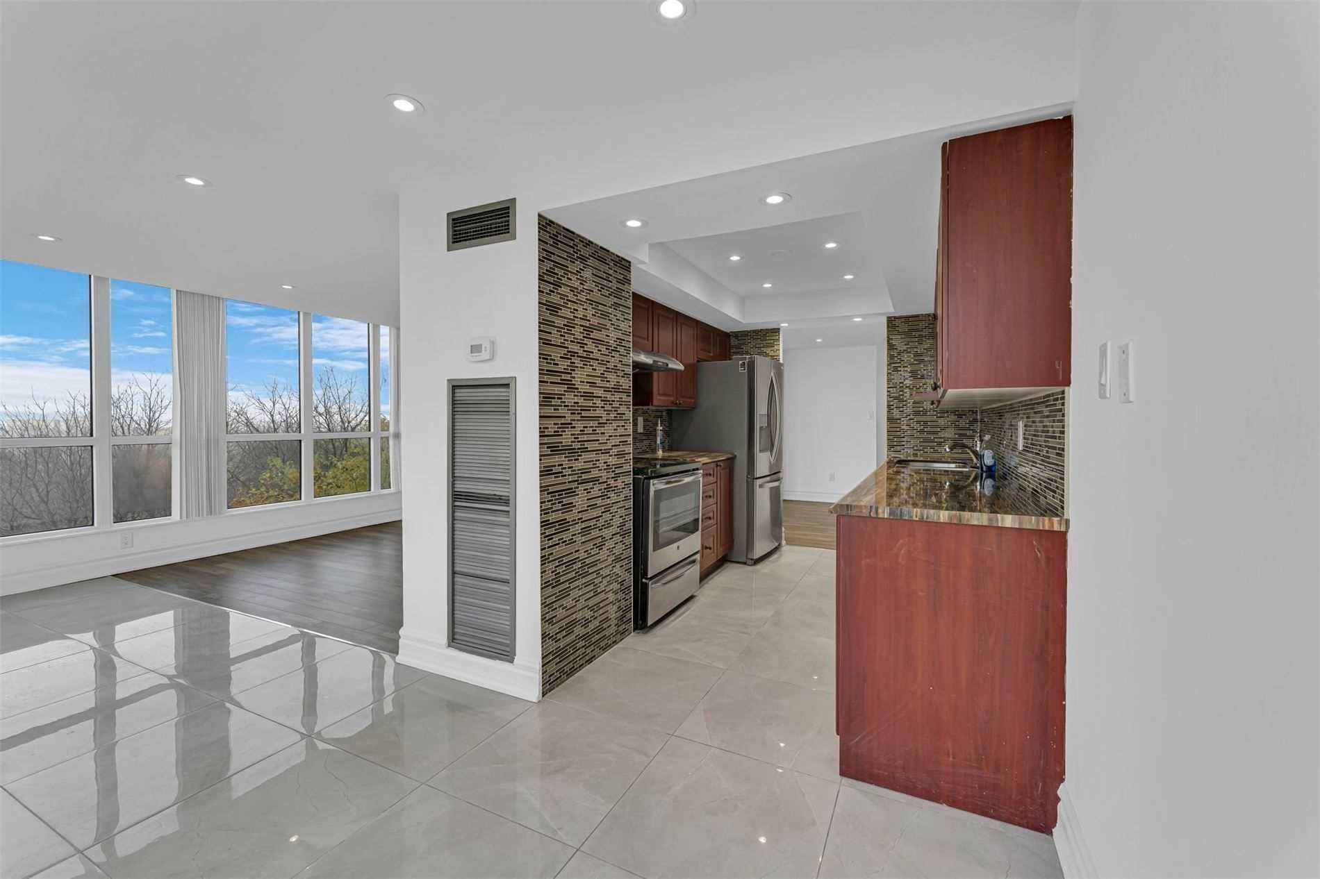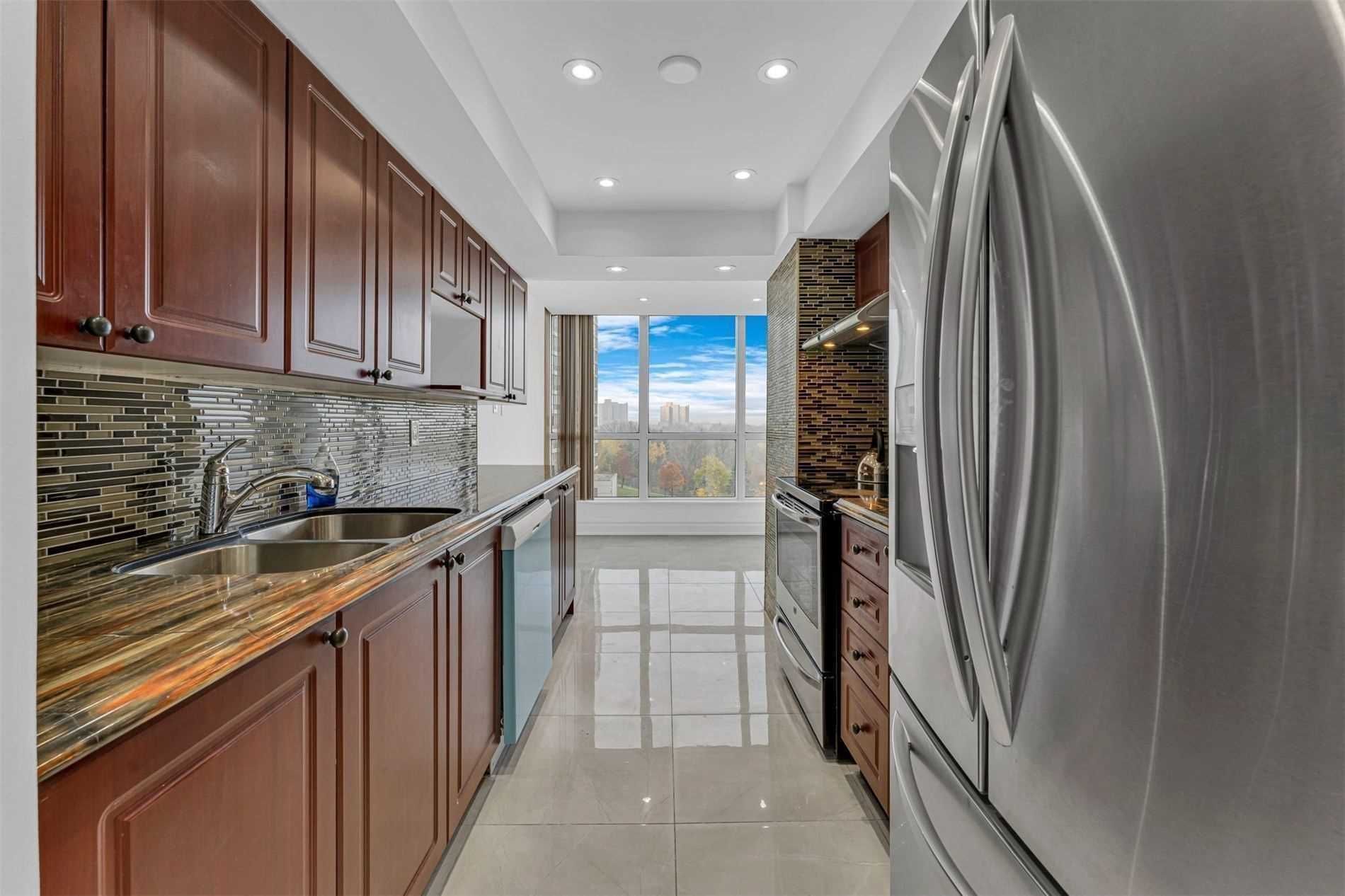 Welcome To This Beautifully Updated Apartment In The Exclusive Kipling & Steels Bordering Vaughan Neighborhood. There Are 1300 Square Feet Of Living Space In This Large Apartment. The Ravine Backend Vista Is Breathtaking. The Building Has Incredible Amenities.Stove, Fridge, Dishwasher, Washer & Dryer, Light Fixtures, And Drapes.