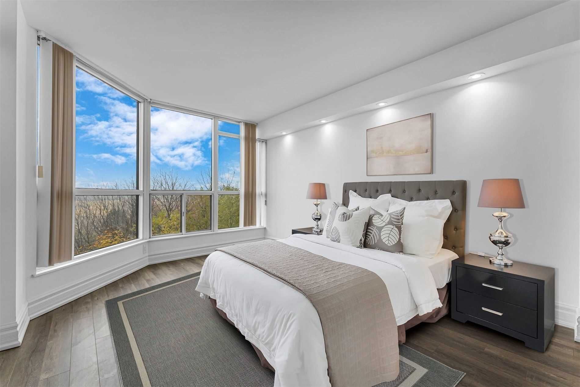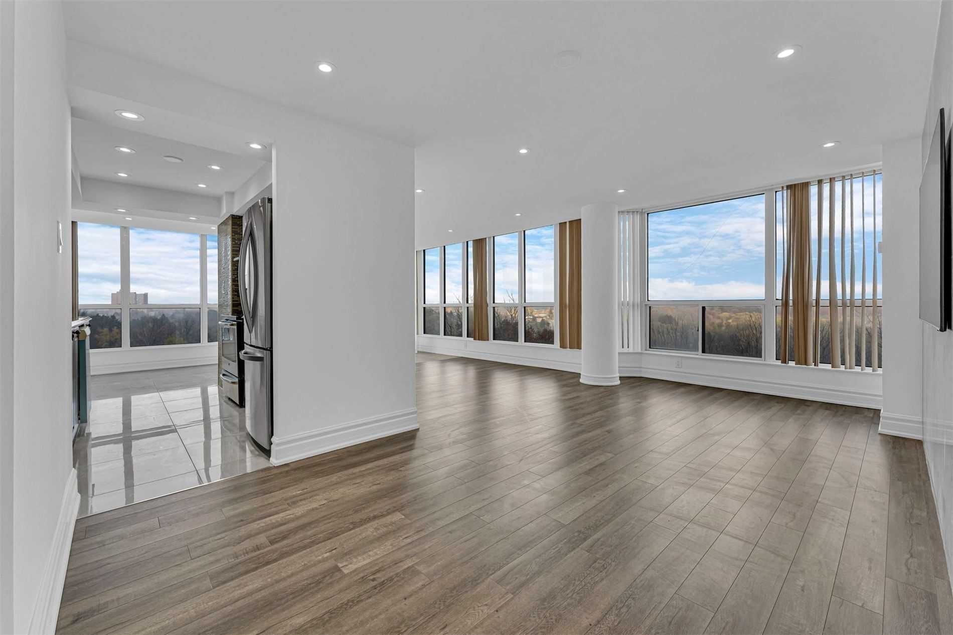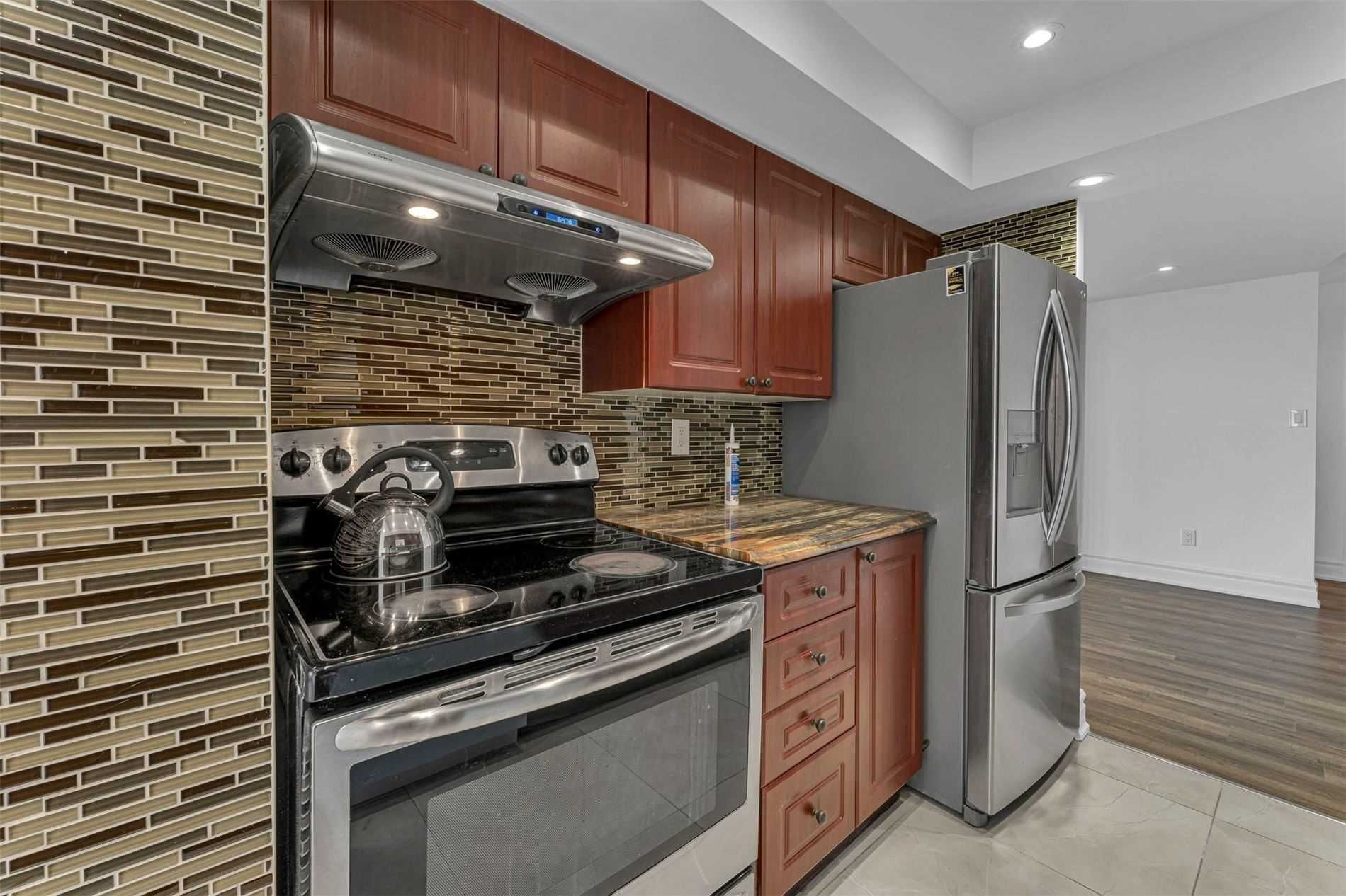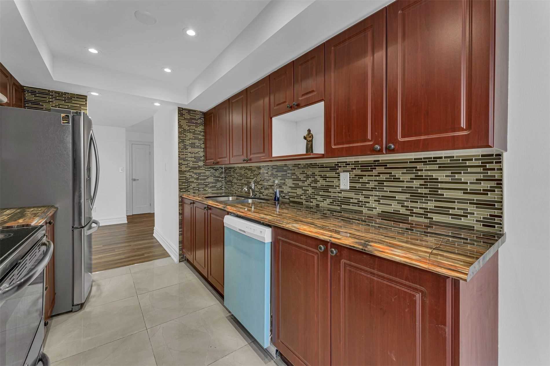 Welcome To This Beautifully Updated Apartment In The Exclusive Kipling & Steels Bordering Vaughan Neighborhood. There Are 1300 Square Feet Of Living Space In This Large Apartment. The Ravine Backend Vista Is Breathtaking. The Building Has Incredible Amenities.Stove, Fridge, Dishwasher, Washer & Dryer, Light Fixtures, And Drapes.