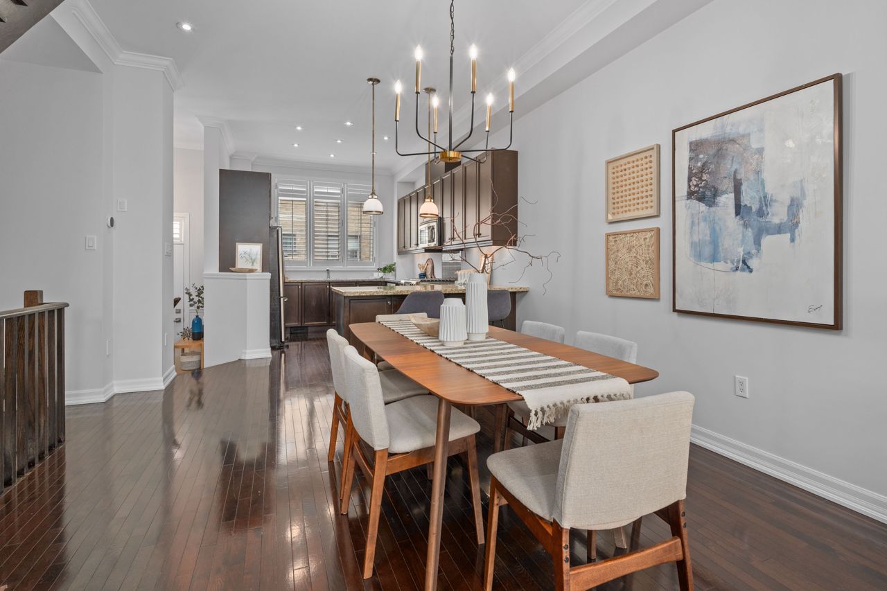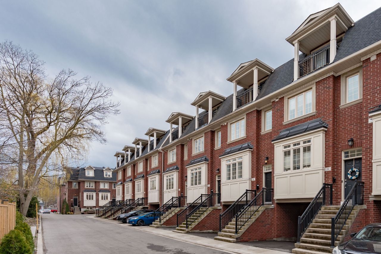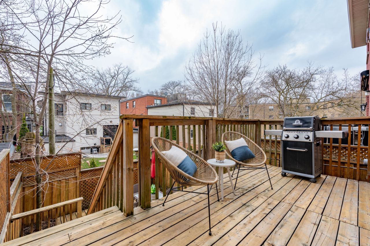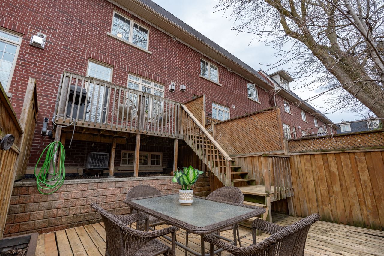 Elegant and rarely available Georgian-inspired 3-bed freehold townhome, tucked away in one of the City's most coveted hidden pockets. Nearly 2,000 sq ft of sleek, functional living space across four levels with a bright, fresh paint job. The main floor brings the wow factor with 10-ft ceilings, hardwood floors, custom built-ins and a gas fireplace all drenched in natural light. The oversized kitchen is built to perform: granite counters, stainless steel appliances, serious storage, and a no-nonsense breakfast bar. The top-level primary suite is your private escape with a walk-in closet, luxe ensuite and balcony overlooking the treetops. Two more large bedrooms, both with walk-in closets, plus a full bath and laundry on the second floor. Lower level rec room, powder room, and direct garage access = total convenience. Out back? A private decked-out yard with tiered entertaining space and low-maintenance gardens. Plus, a new hot water on-demand heating system. Steps to Queen East, transit, top schools, and the boardwalk. Zero fluff. All vibe.