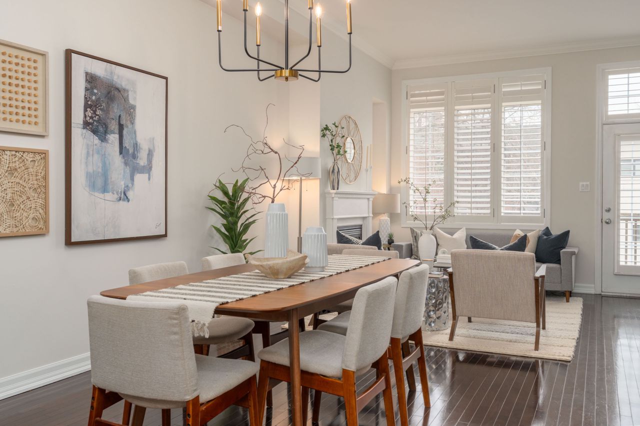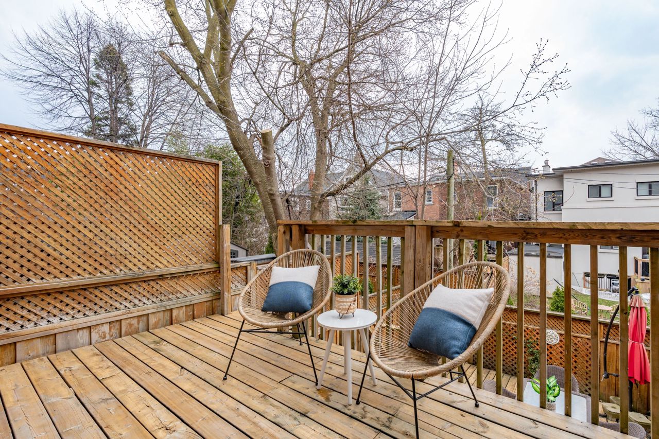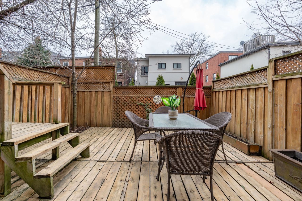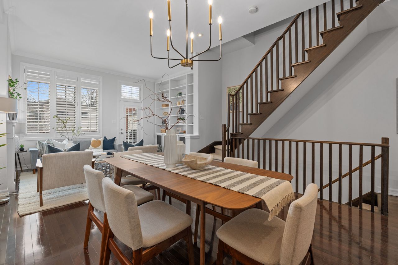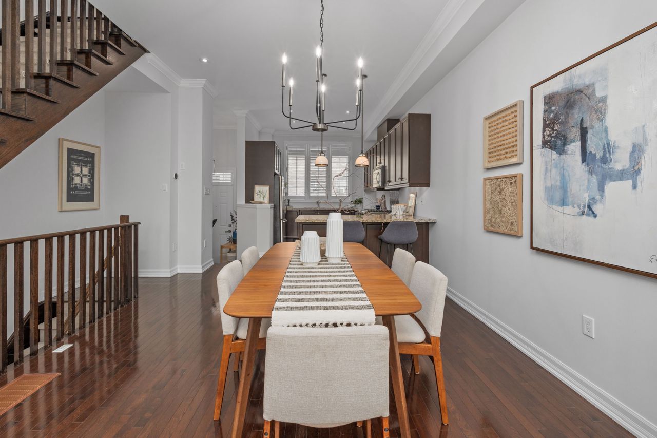 Elegant and rarely available Georgian-inspired 3-bed freehold townhome, tucked away in one of the City's most coveted hidden pockets. Nearly 2,000 sq ft of sleek, functional living space across four levels with a bright, fresh paint job. The main floor brings the wow factor with 10-ft ceilings, hardwood floors, custom built-ins and a gas fireplace all drenched in natural light. The oversized kitchen is built to perform: granite counters, stainless steel appliances, serious storage, and a no-nonsense breakfast bar. The top-level primary suite is your private escape with a walk-in closet, luxe ensuite and balcony overlooking the treetops. Two more large bedrooms, both with walk-in closets, plus a full bath and laundry on the second floor. Lower level rec room, powder room, and direct garage access = total convenience. Out back? A private decked-out yard with tiered entertaining space and low-maintenance gardens. Plus, a new hot water on-demand heating system. Steps to Queen East, transit, top schools, and the boardwalk. Zero fluff. All vibe.