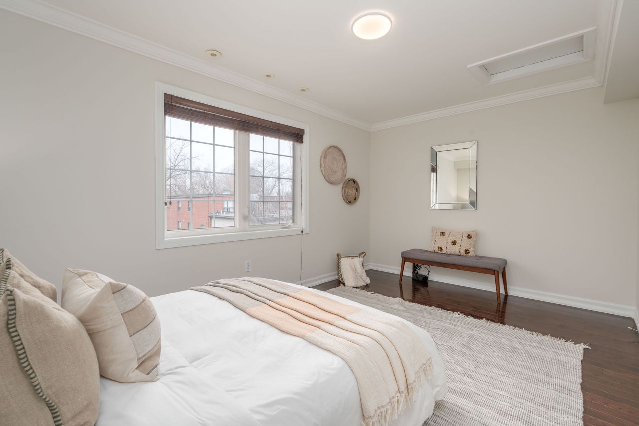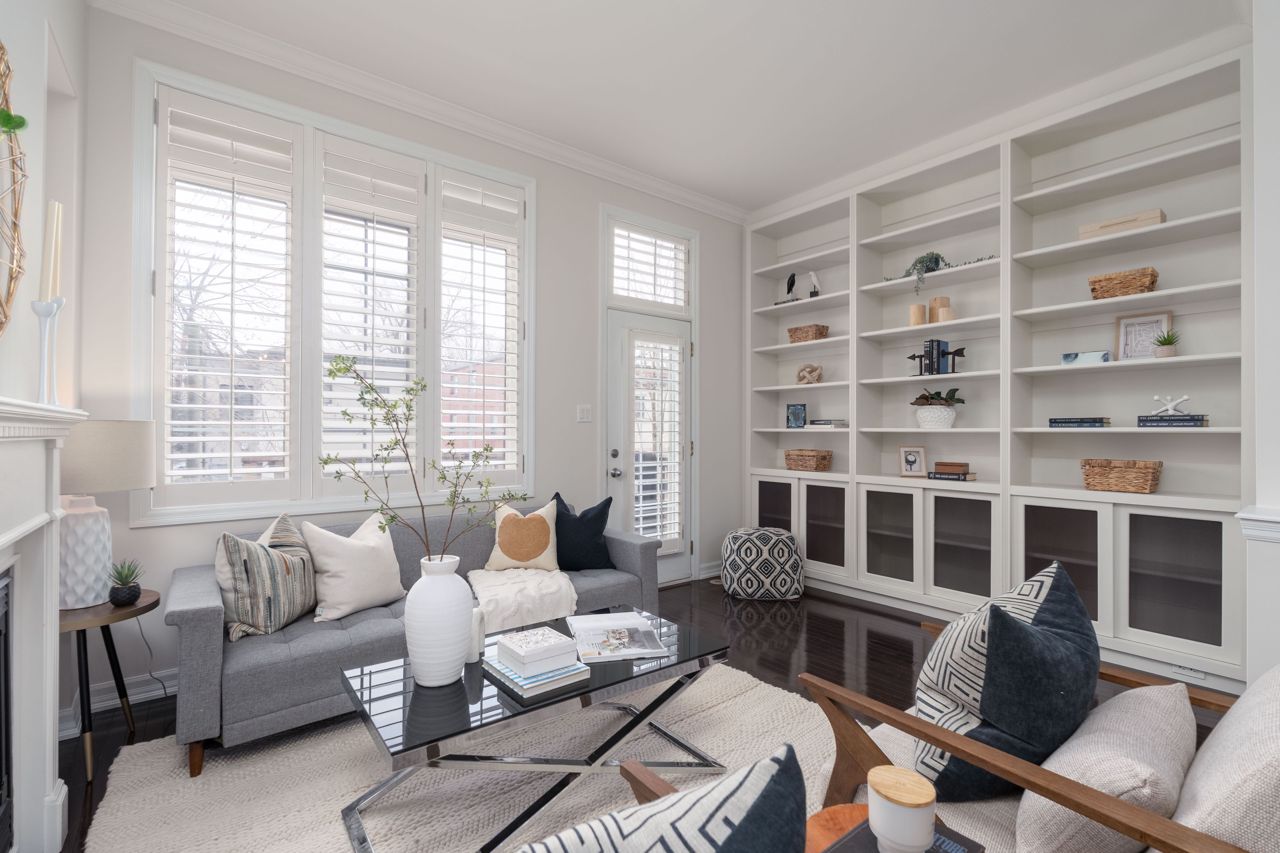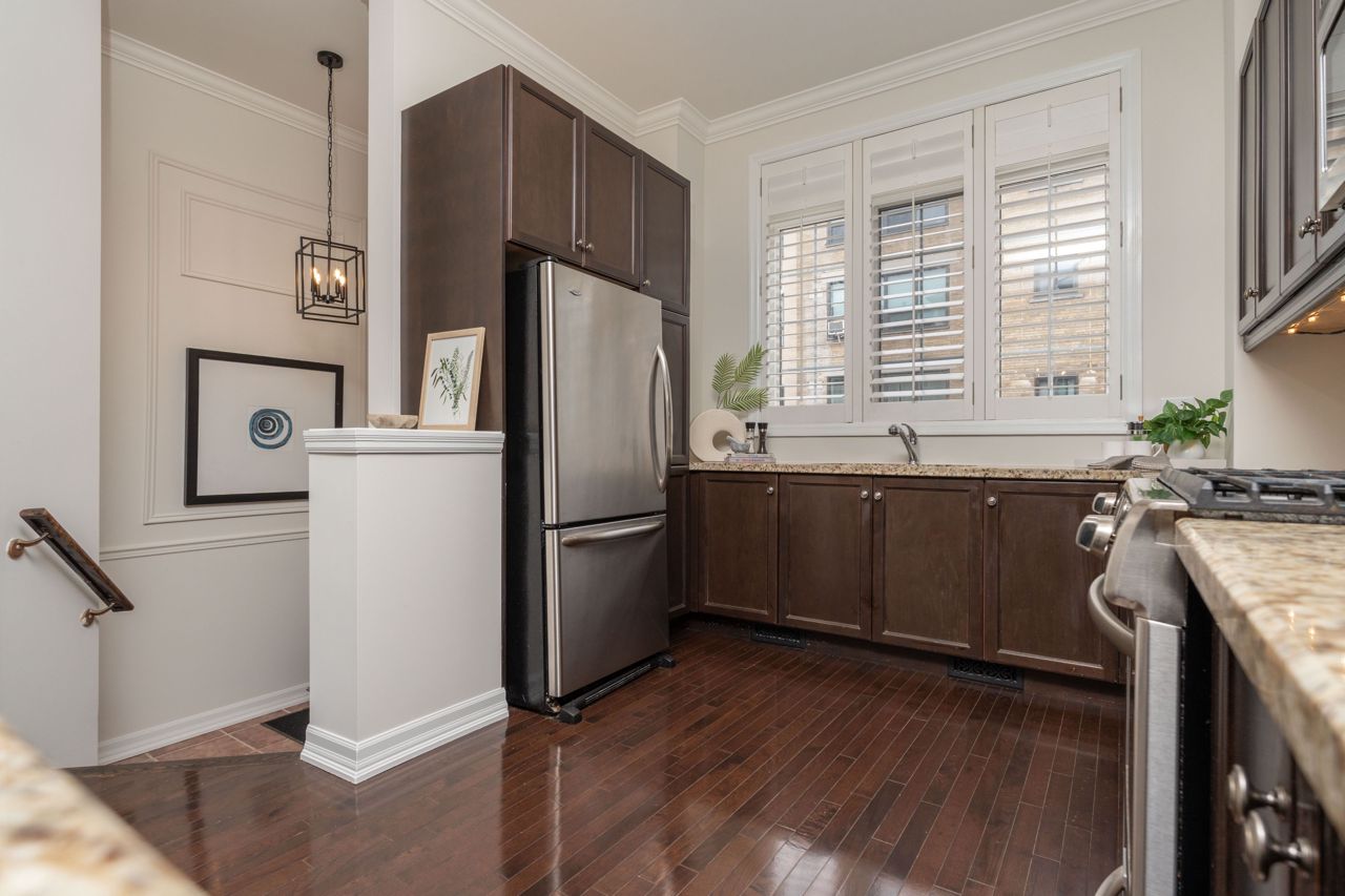 优雅且罕有的乔治亚风格三卧室永久产权联排别墅,隐匿于城市最令人向往的隐秘街区之一。近2000平方英尺的时尚实用生活空间分布于四层,明亮清新的粉刷贯穿始终。主层以10英尺挑高天花板、硬木地板、定制嵌入式家具和沐浴自然光的燃气壁炉尽显惊艳。超大厨房配置齐全:花岗岩台面、不锈钢电器、充足储物空间和实用的早餐吧台。顶层主卧套房是您的私密避世所,配有步入式衣帽间、豪华套间浴室以及可俯瞰树冠的阳台。另有两间宽敞卧室均配备步入式衣帽间,二层另设全套浴室和洗衣区。底层娱乐室、化妆间与直通车库的设计尽显便利。后院?私属露台庭院配有阶梯式娱乐空间和低维护花园。新增即热式热水系统。毗邻皇后东街、公交枢纽、顶尖学府和滨海步道。无虚饰。纯格调。